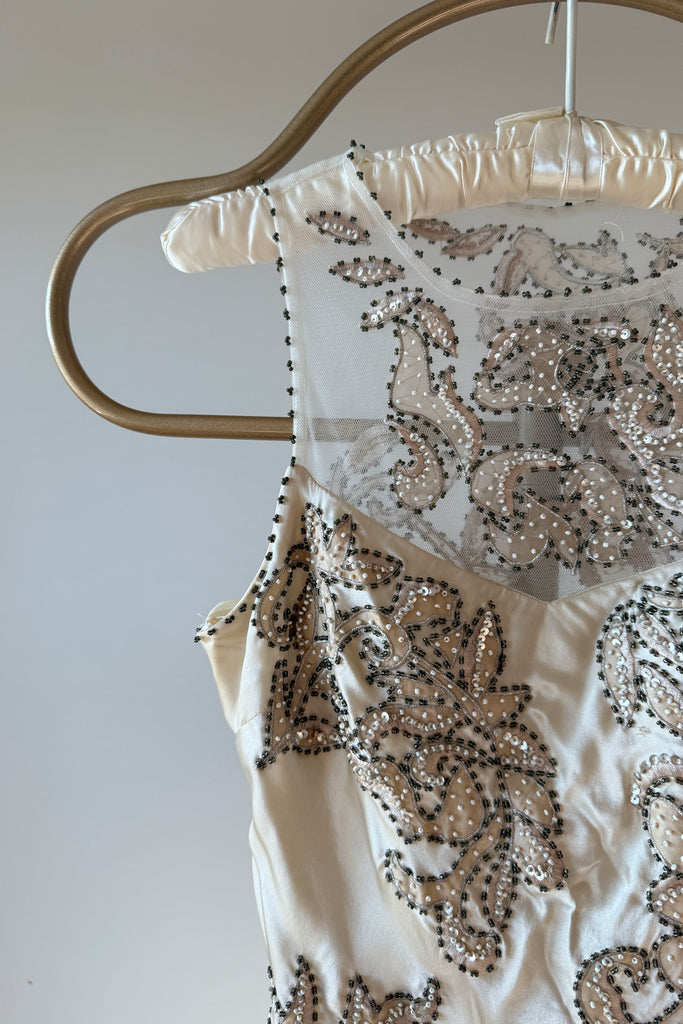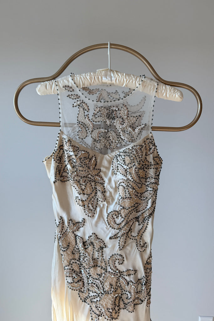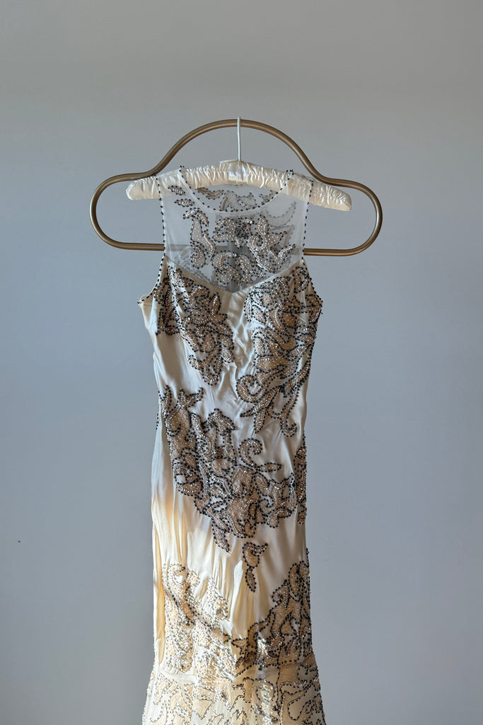 1990s Silk Beaded Illusion NWT Wedding Dress by Cache | XS/S
