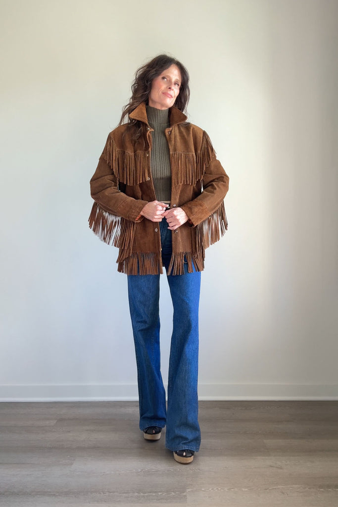 Vintage 1950s Brown Suede Fringe Jacket by K-Bar-Z | S/M