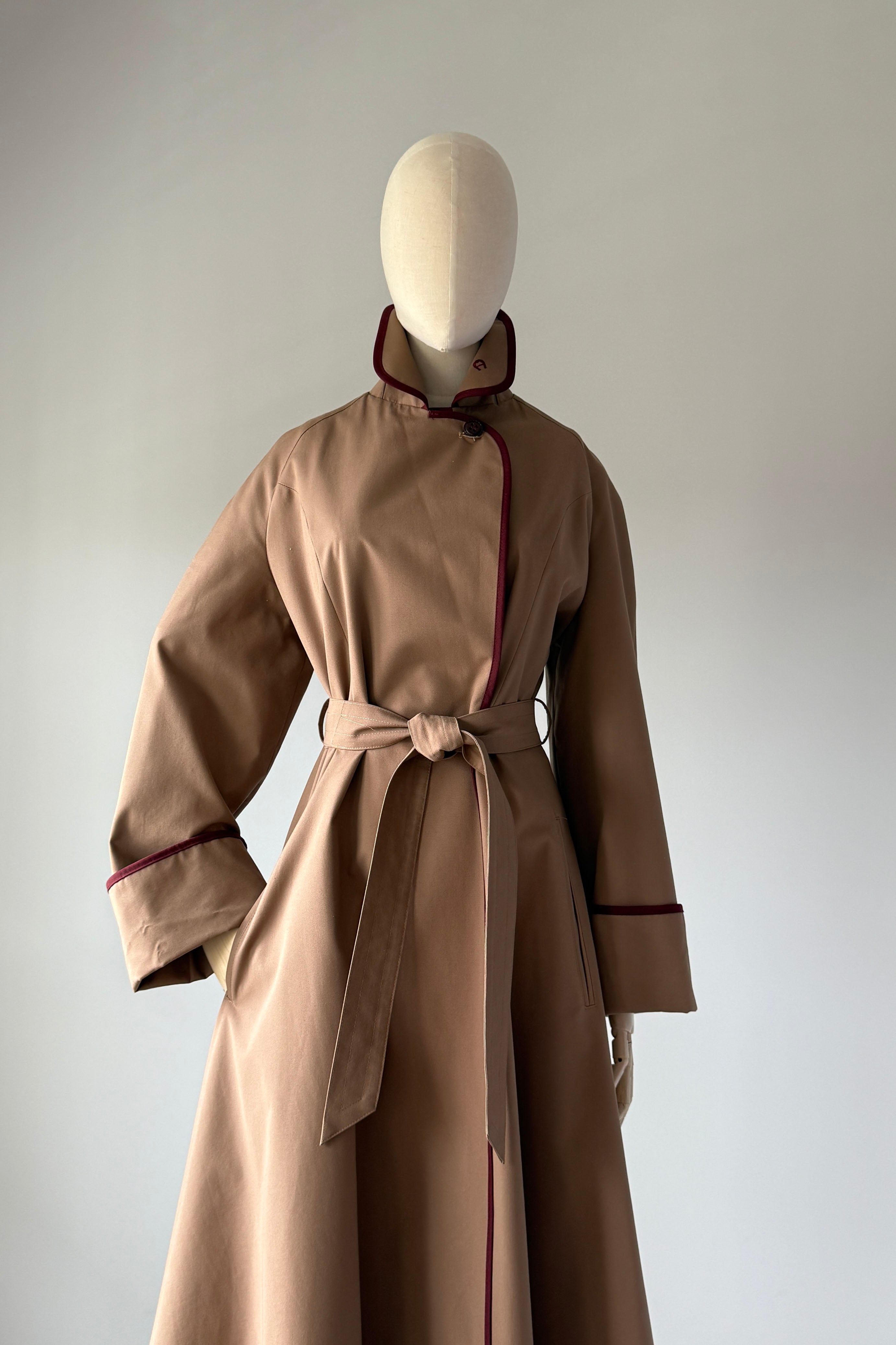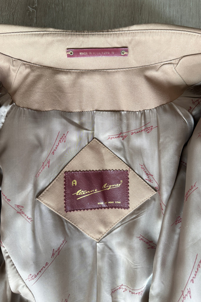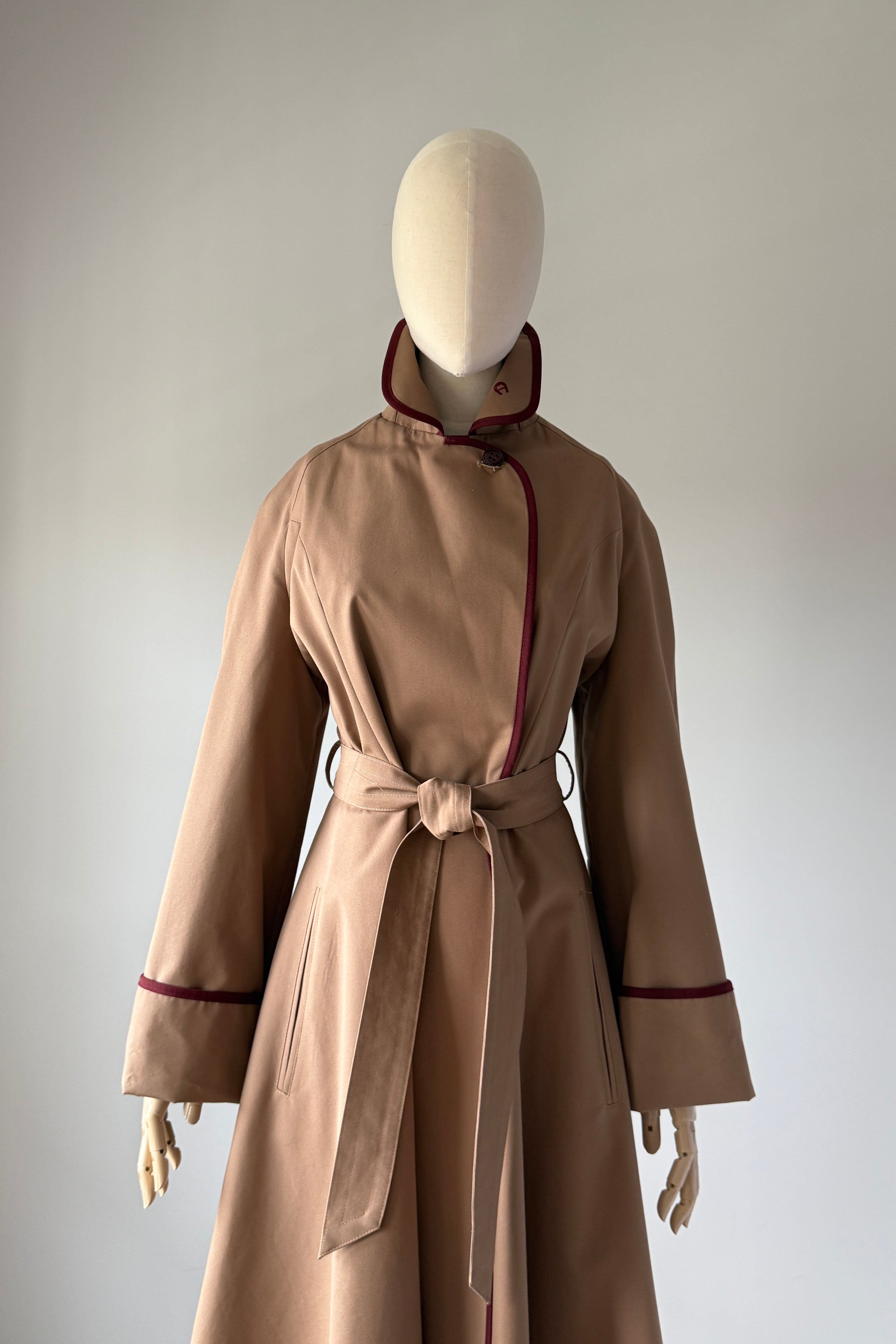 VINTAGE ETIENNE AIGNER TRENCH COAT1980s Etienne Aigner trench coat will all of the fabulous details that EA delivers. Belted, cuffed sleeves, pockets, logo charms, signature lining with leather tag. Poly/cotton, rayon lining.Excellent condition. Fits like MEDIUMLength 42Bodice 16Shoulder 16Sleeve 22 uncuffedBust 38-40Waist 28-32As with all vintage, please expect wear consistent with age. All sales are final. No order cancellations.0686 | 2545