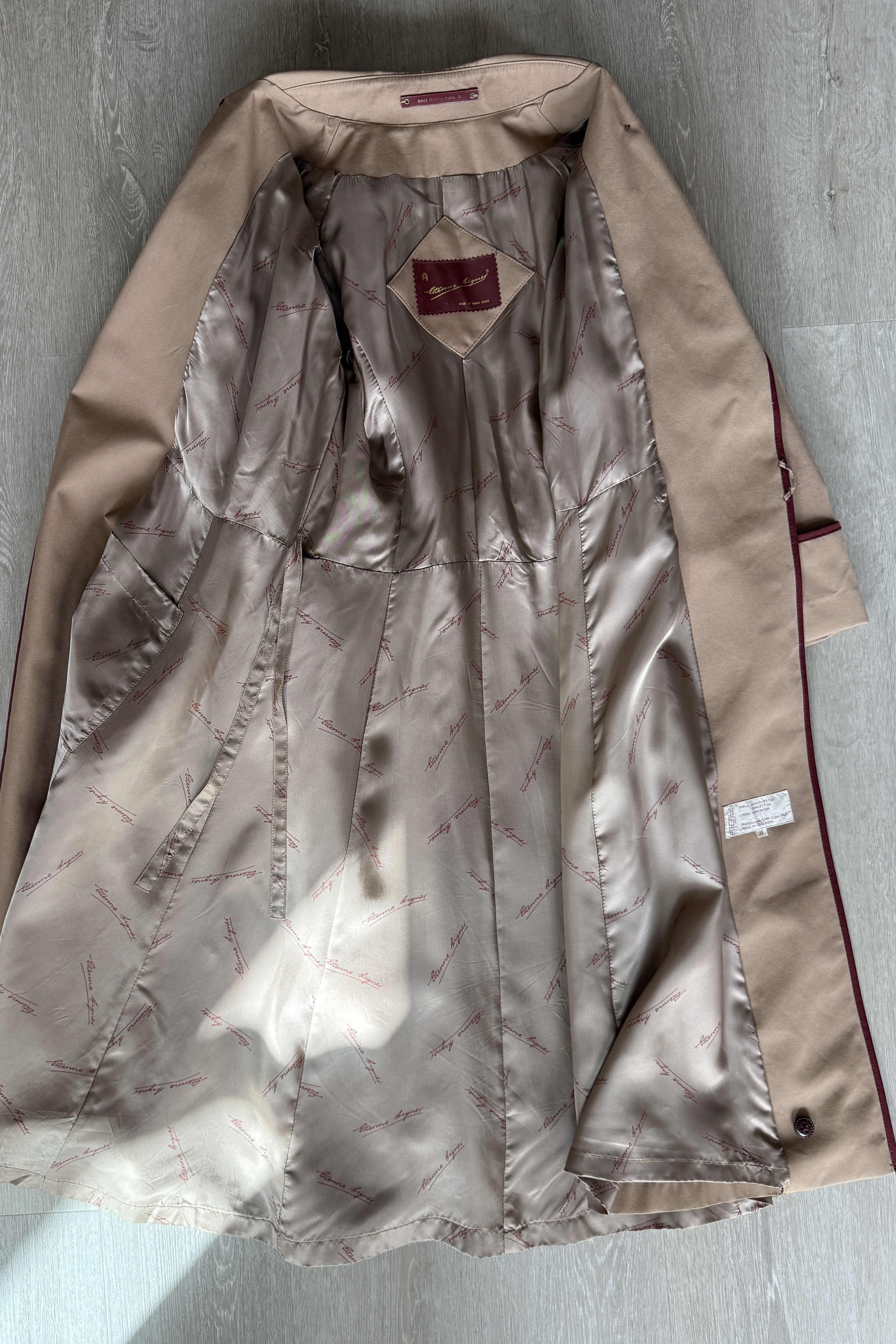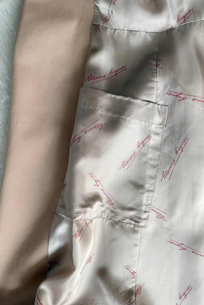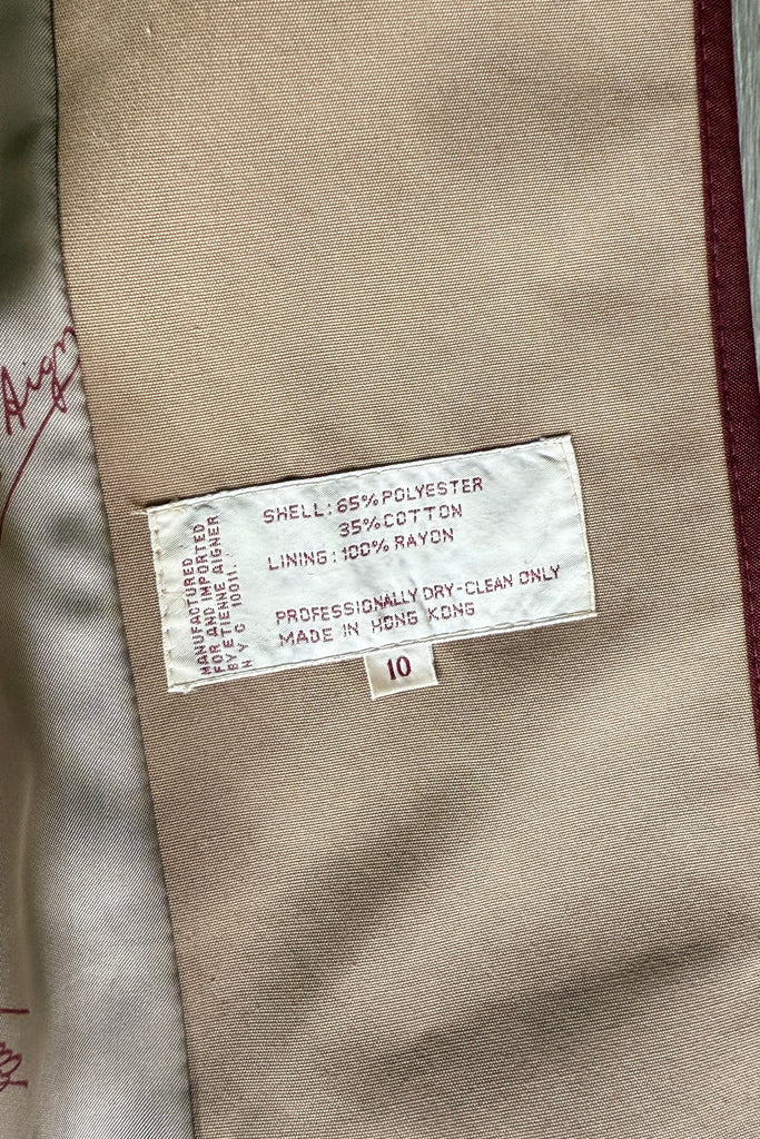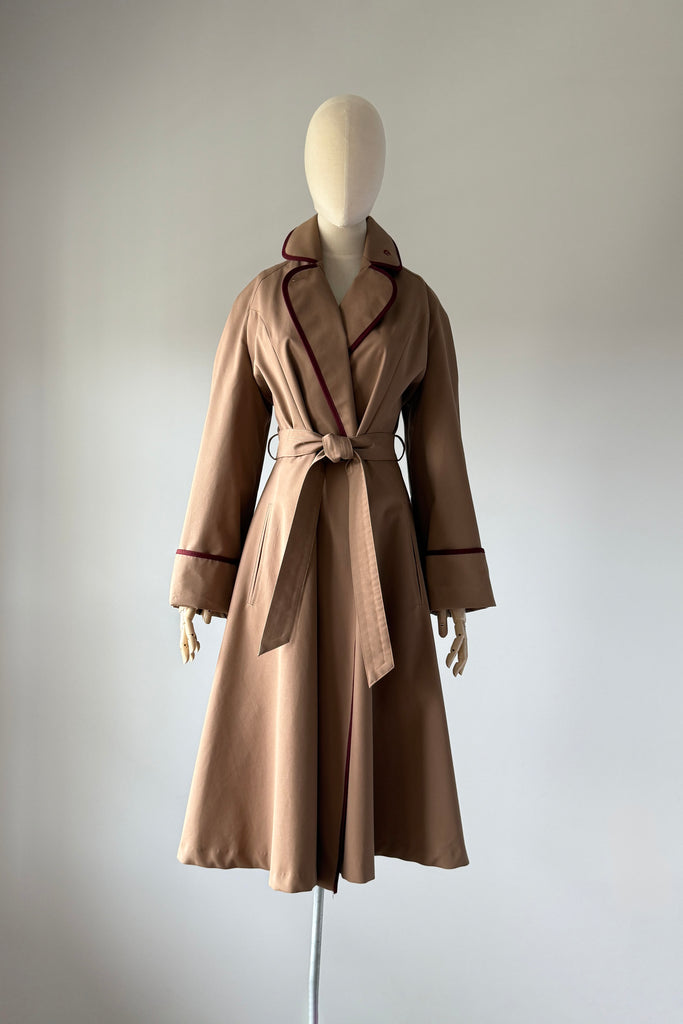 VINTAGE ETIENNE AIGNER TRENCH COAT1980s Etienne Aigner trench coat will all of the fabulous details that EA delivers. Belted, cuffed sleeves, pockets, logo charms, signature lining with leather tag. Poly/cotton, rayon lining.Excellent condition. Fits like MEDIUMLength 42Bodice 16Shoulder 16Sleeve 22 uncuffedBust 38-40Waist 28-32As with all vintage, please expect wear consistent with age. All sales are final. No order cancellations.0686 | 2545