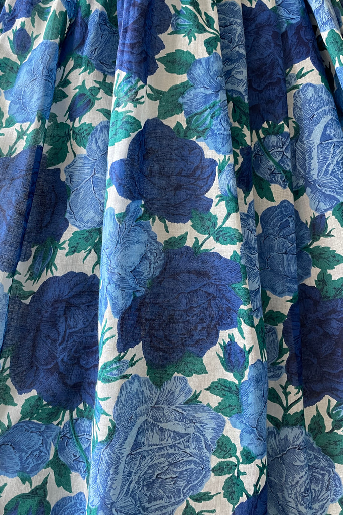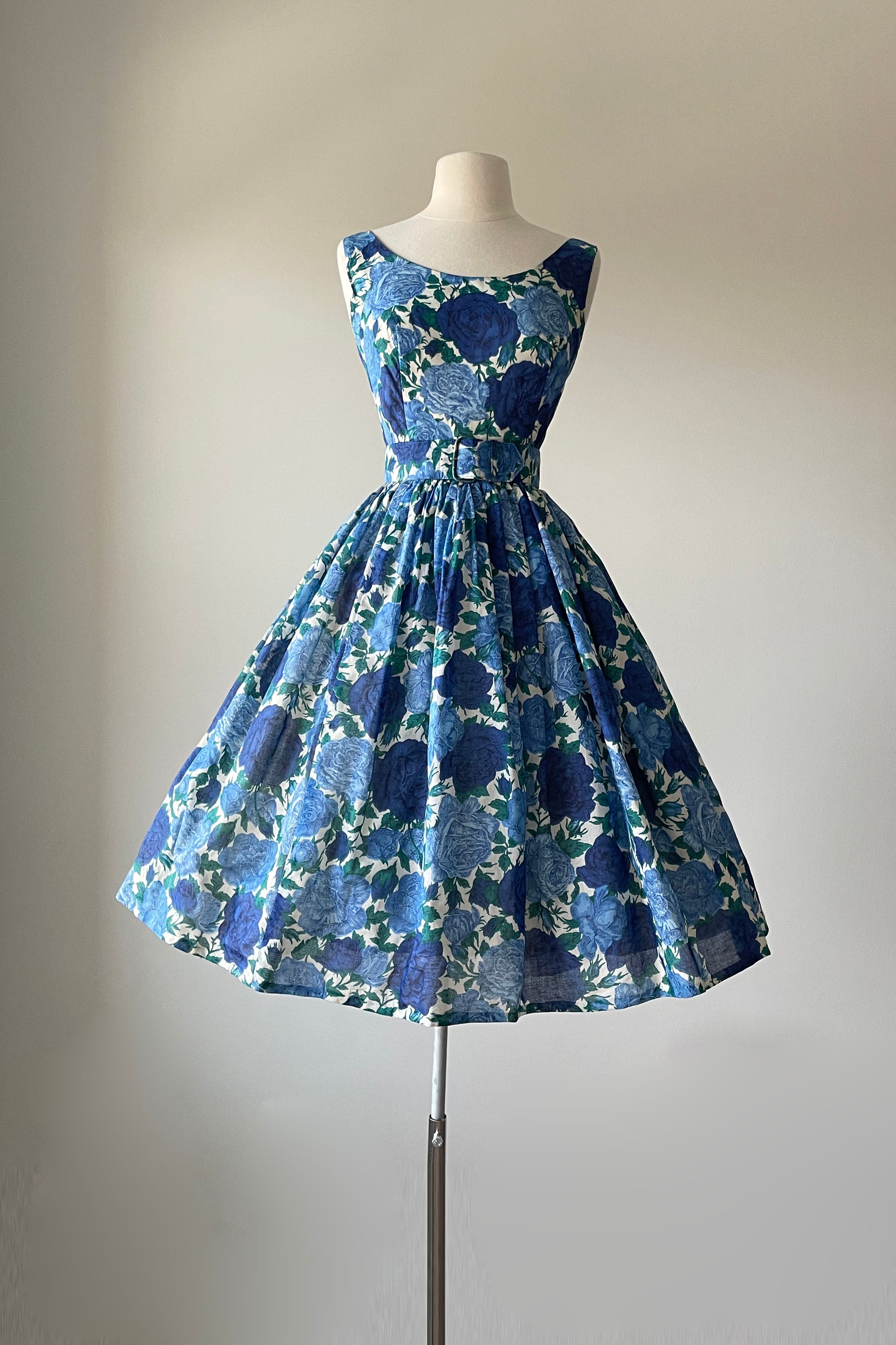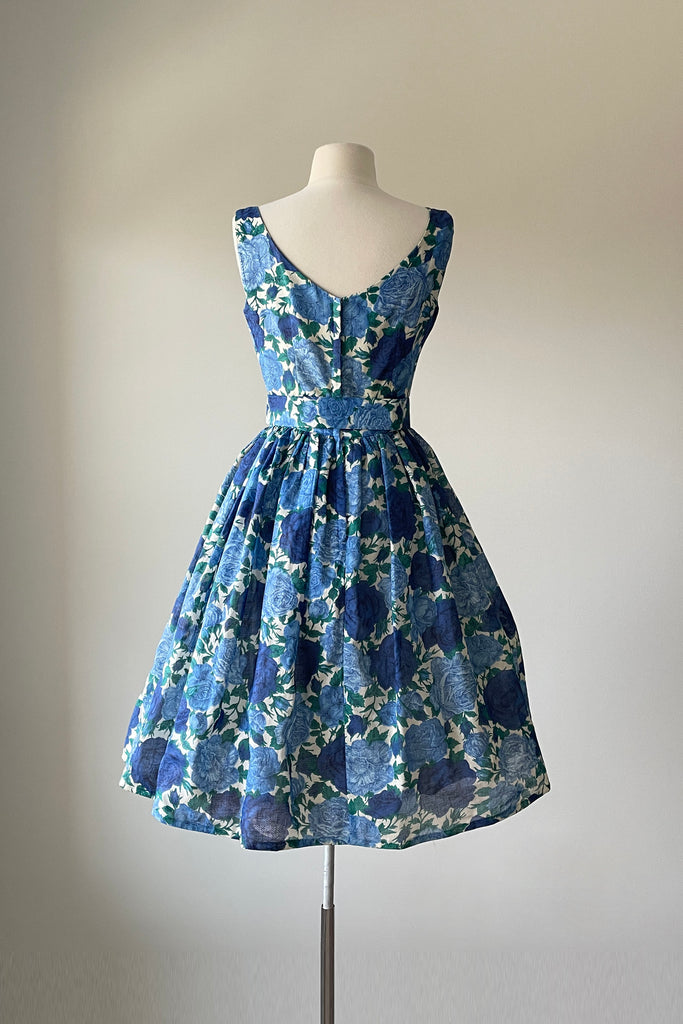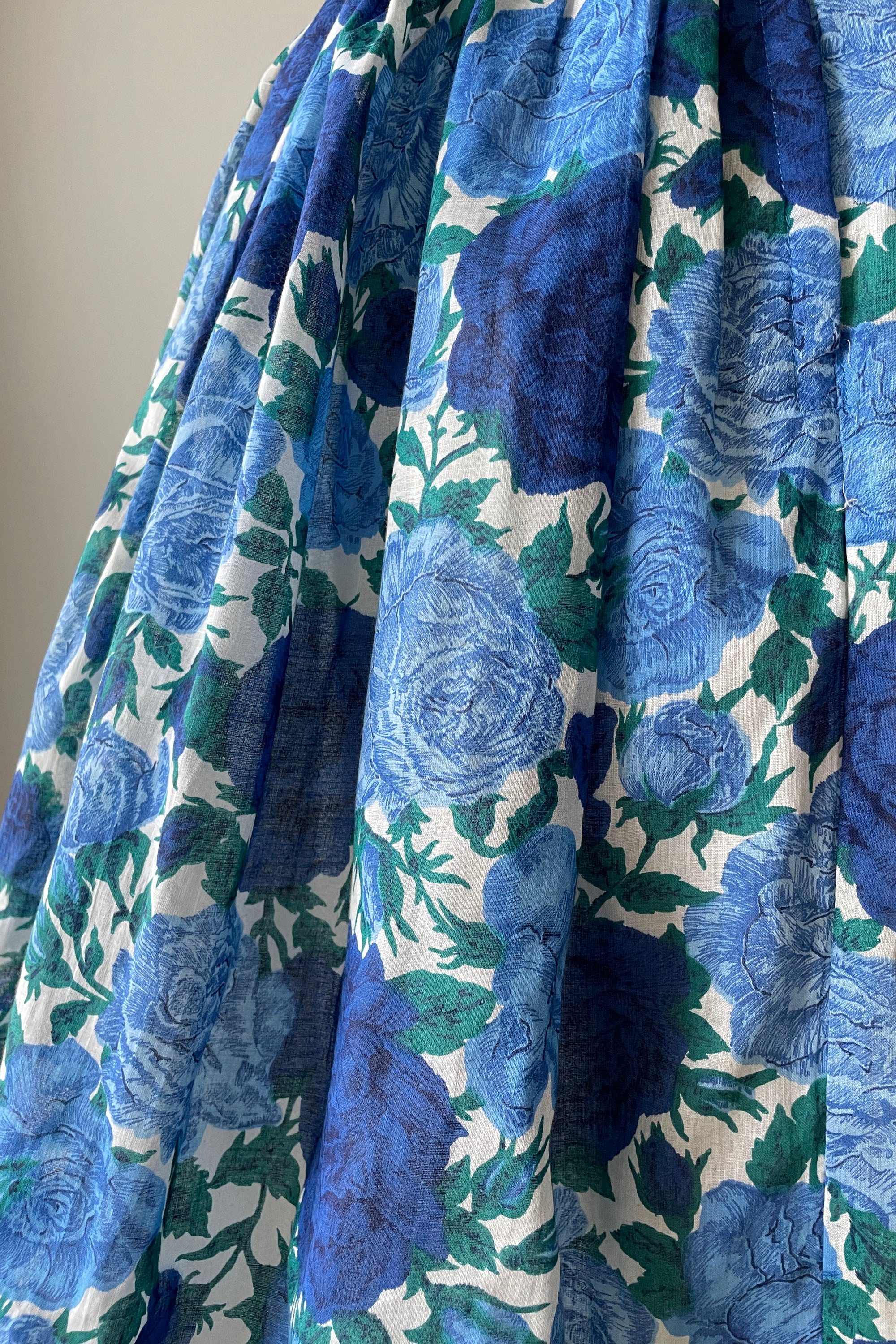 d e t a i l s : gorgeous rose print woven cotton, skirt backed in tulle, entire dress lined in muslin, original wide belt