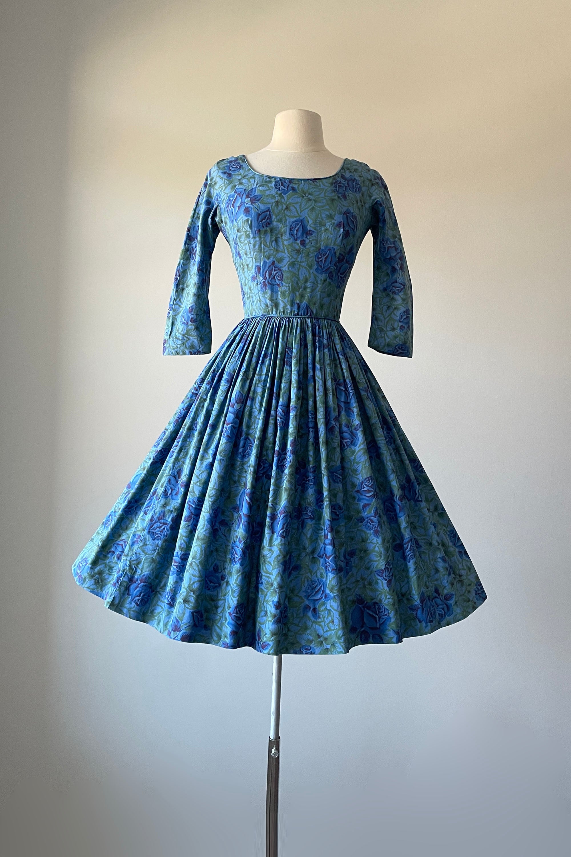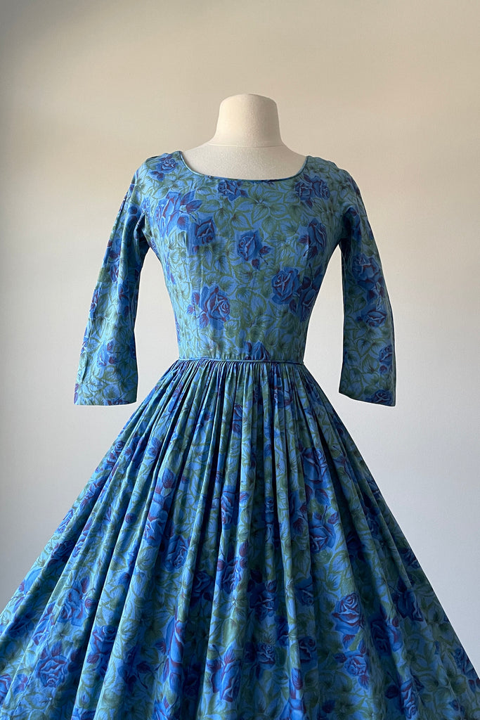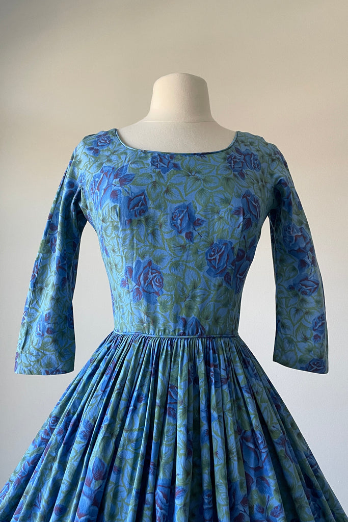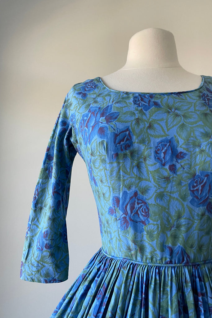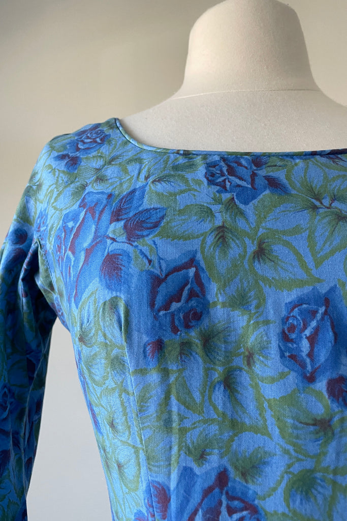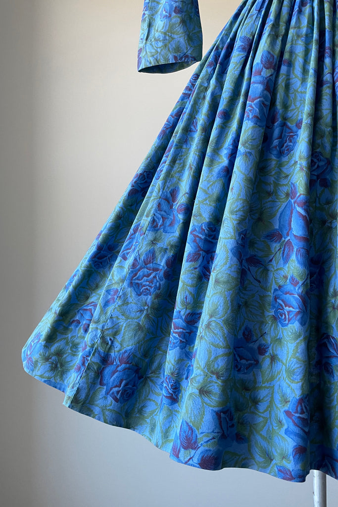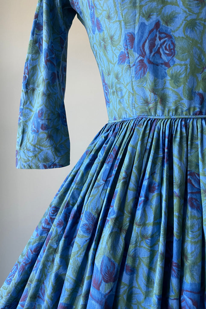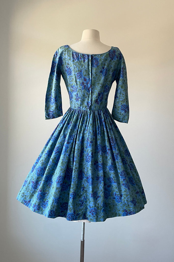 1950s Blue Rose Dress by Gini of California | XS