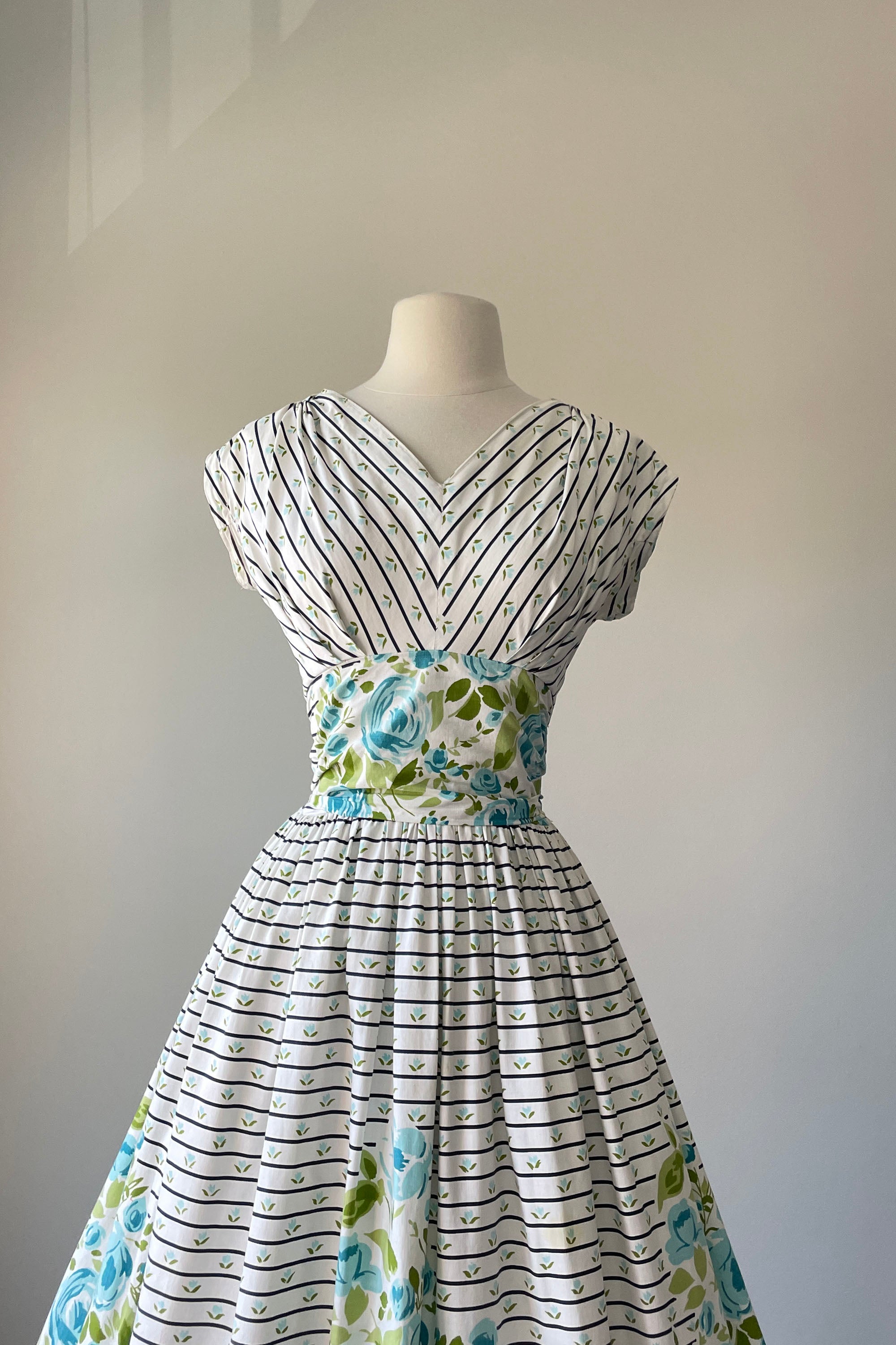 c o n d i t i o n : excellent - some ghost stitching along each side of bodice where it was let out otherwise - no flaws to mention. freshly laundered and ready to wear. as with all vintage, please expect wear consistent with age.
