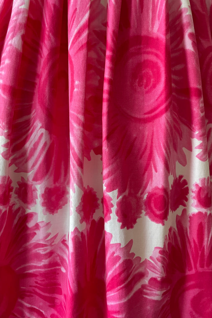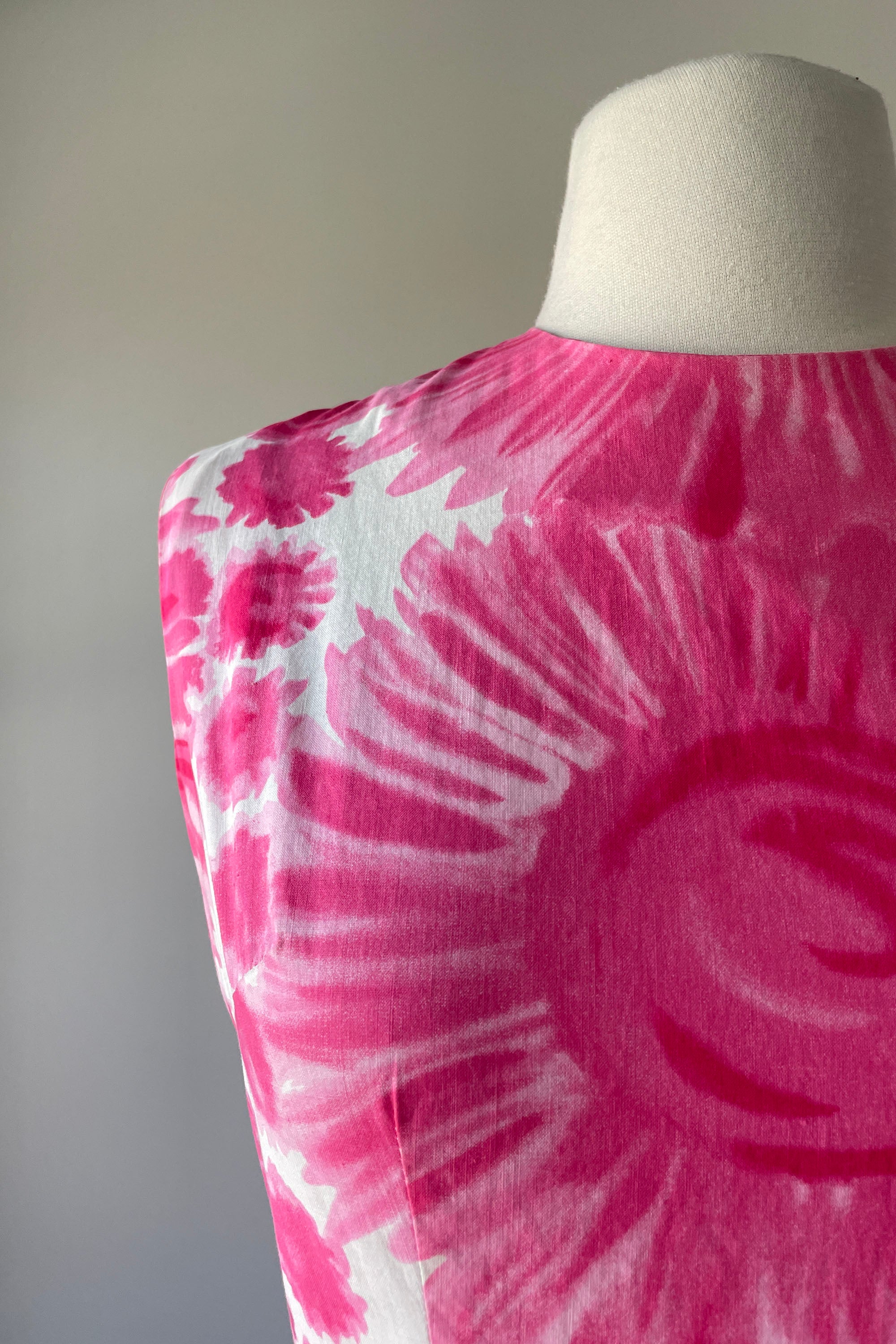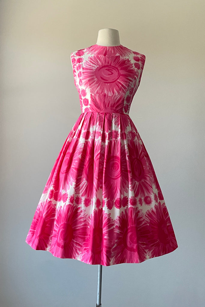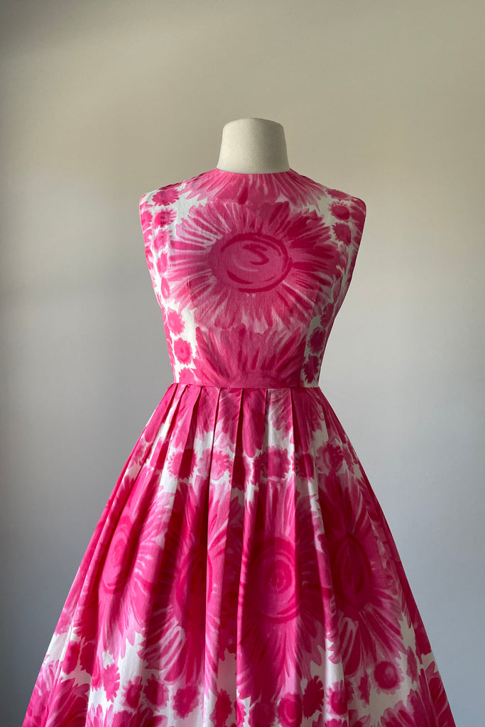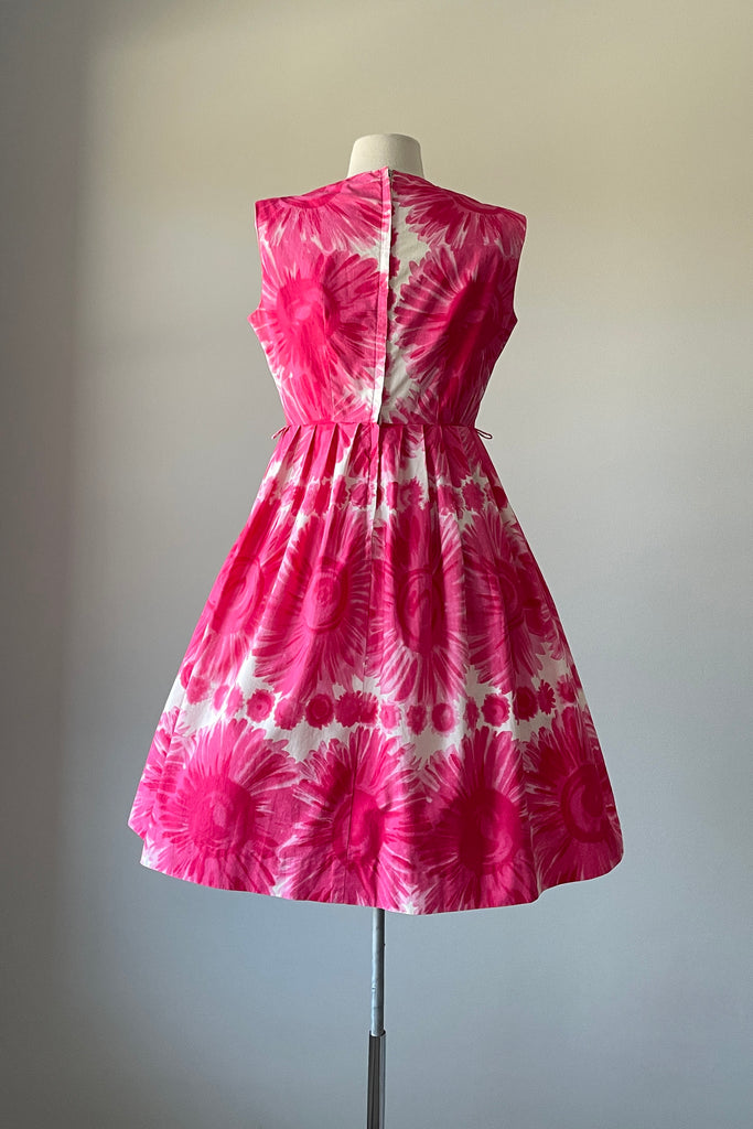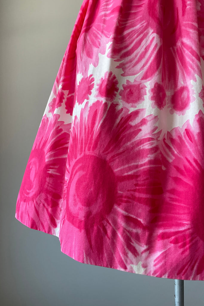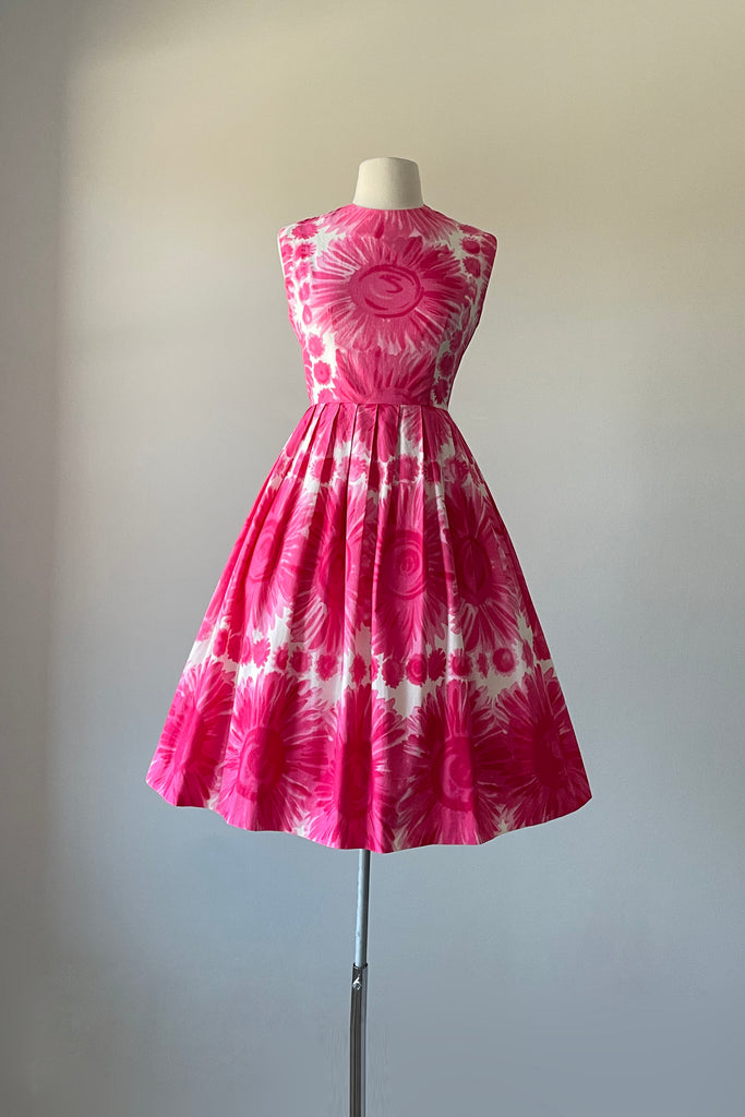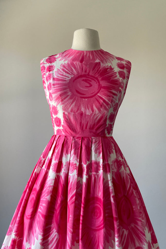 1960s Cerise Pink Floral Print Cotton Dress | S/M