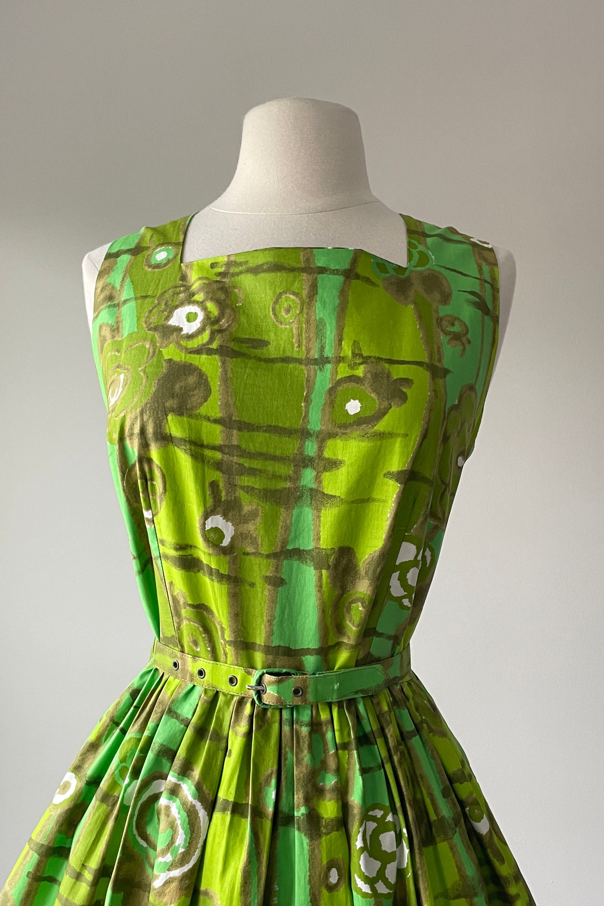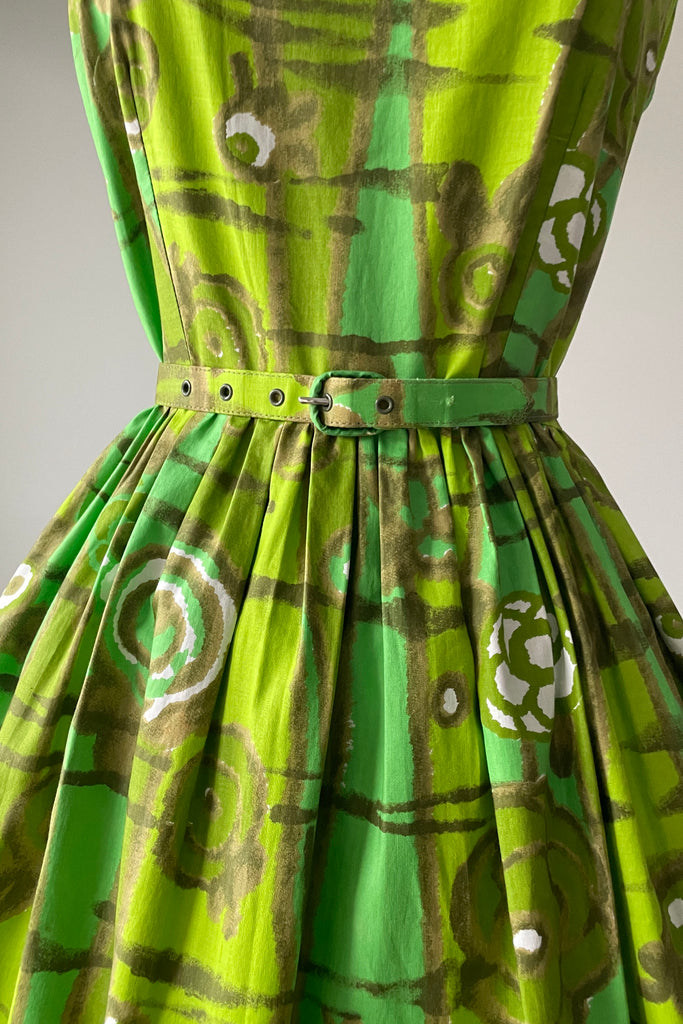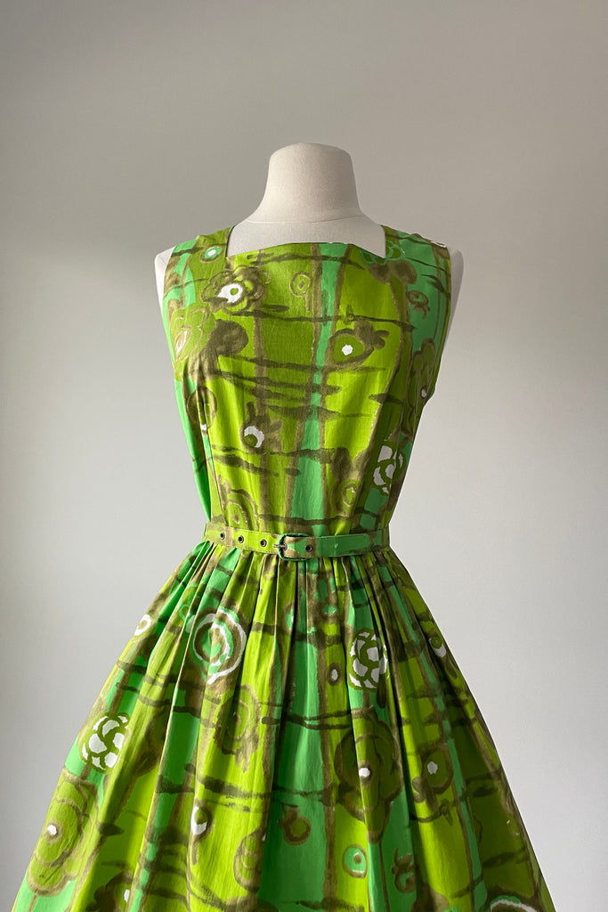 d e t a i l s : darling chartreuse green watercolor floral print, original belt