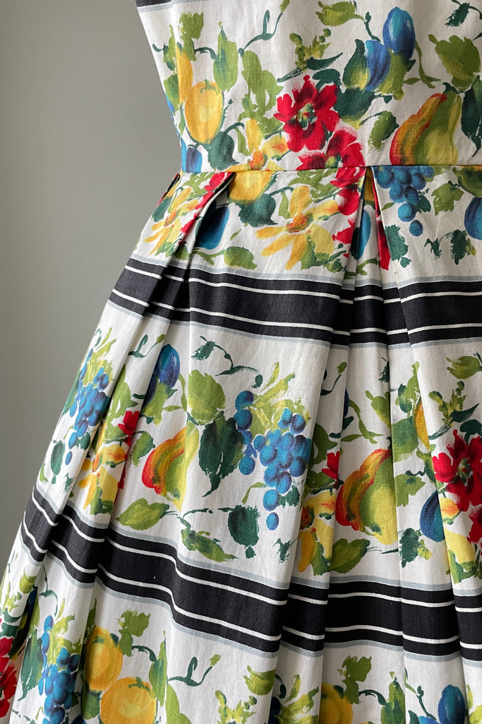 1950s Colorful Fruit Stripe Sun Dress | S/M