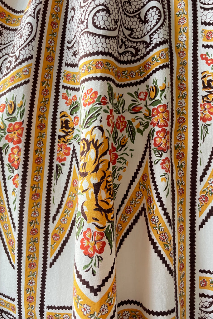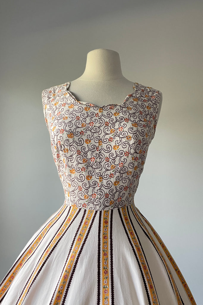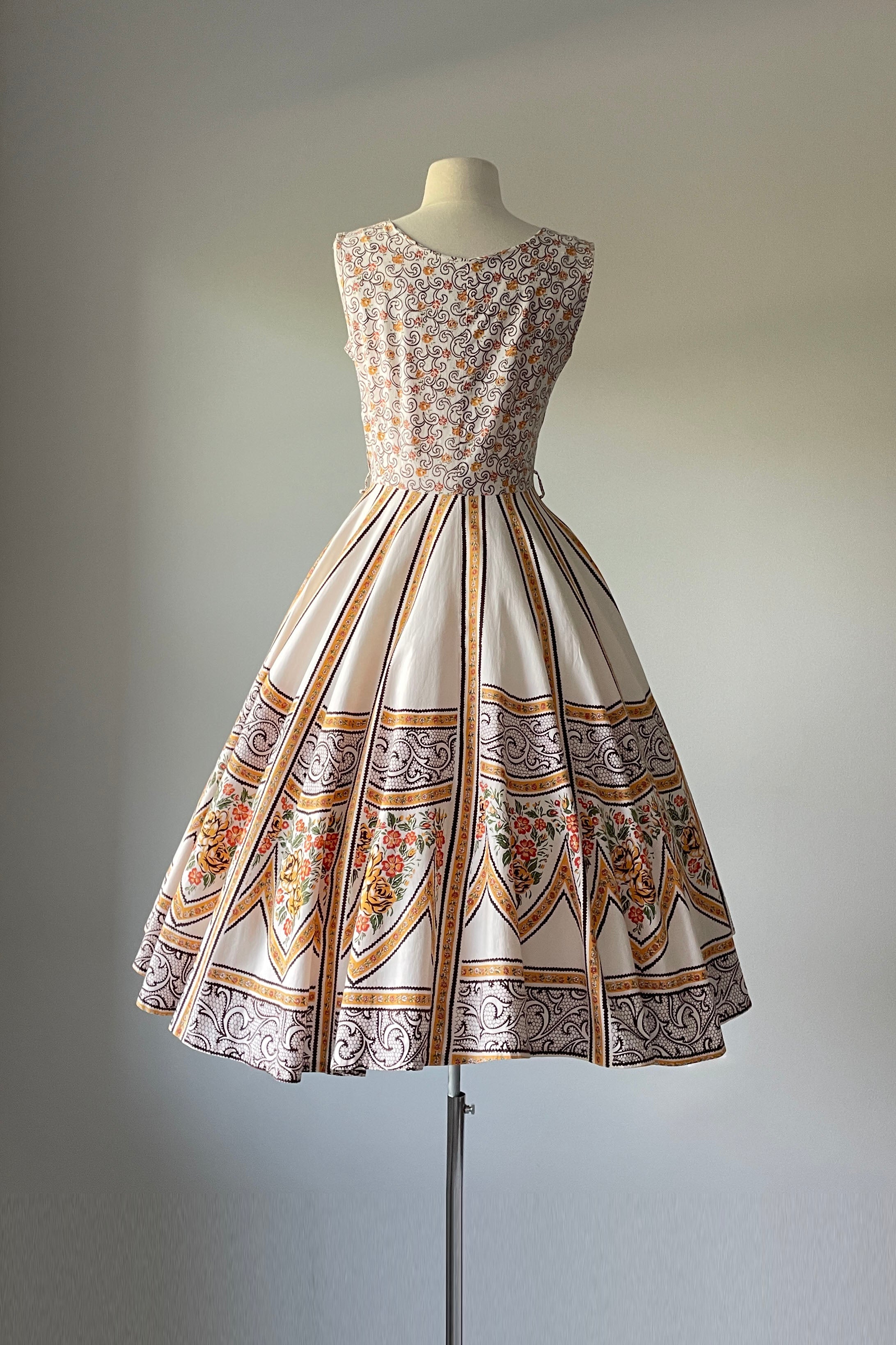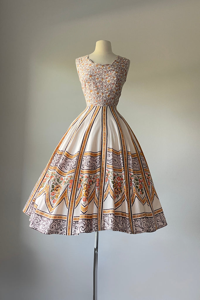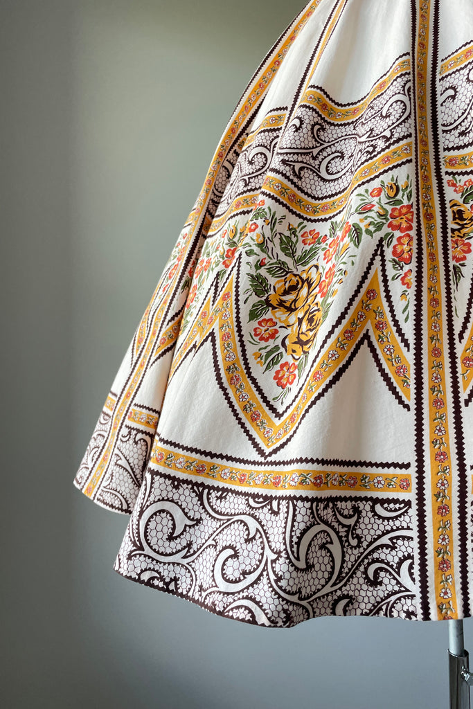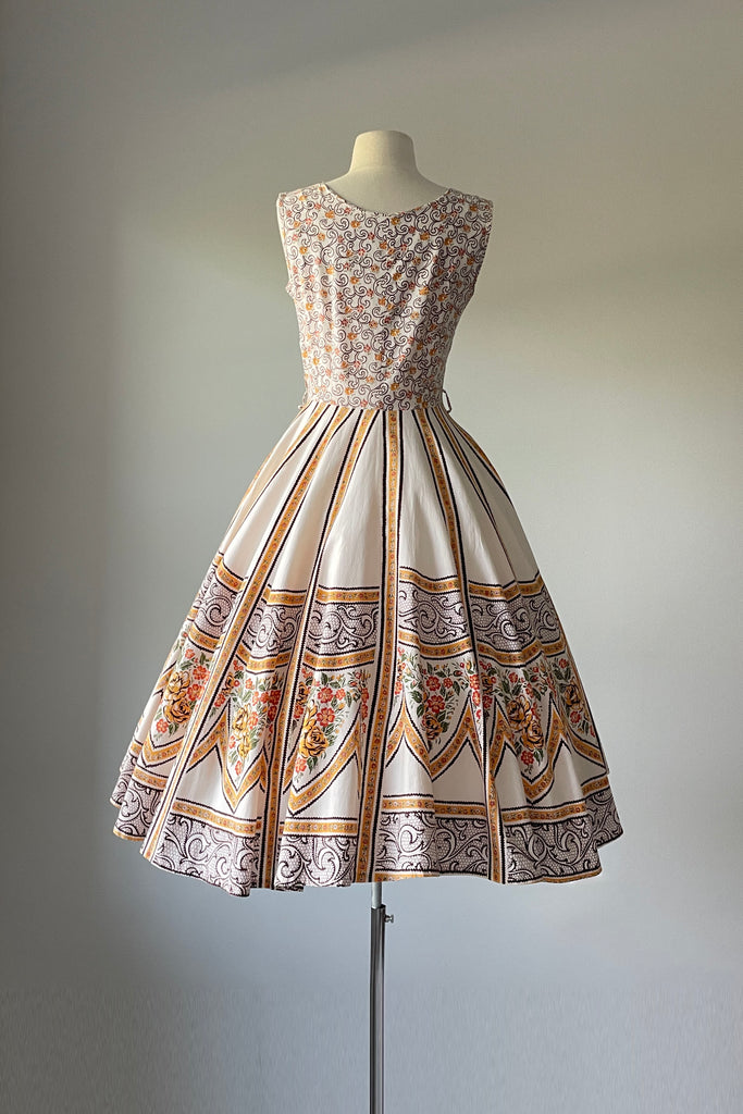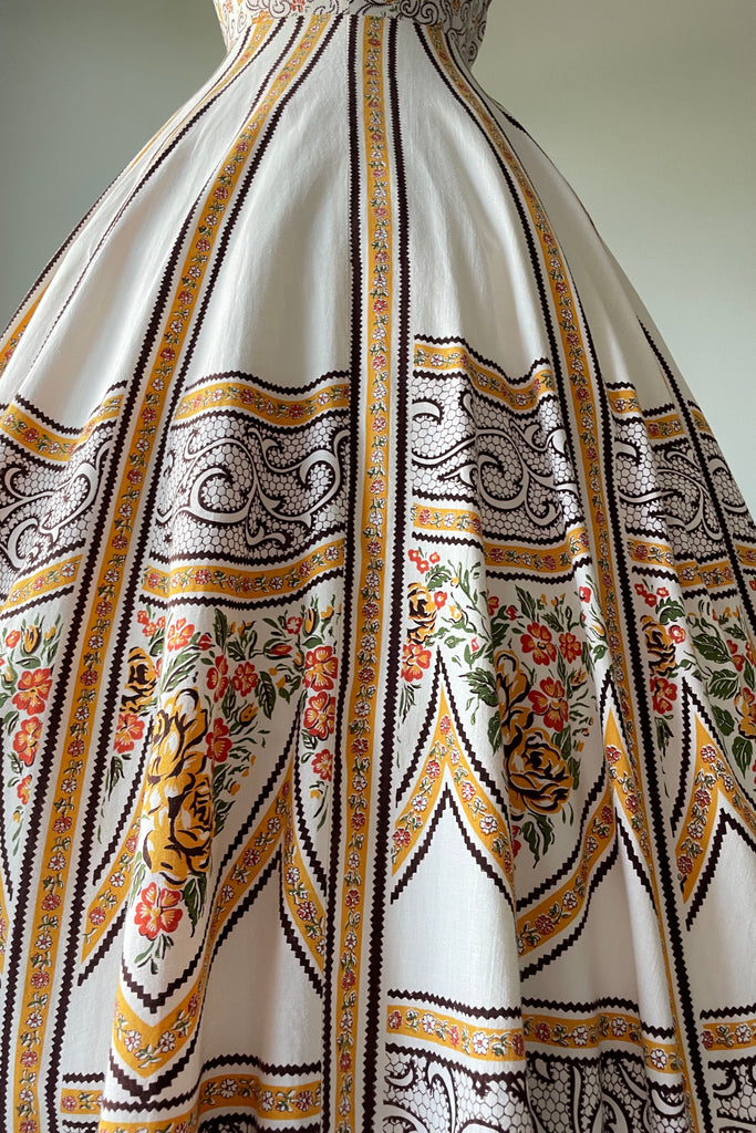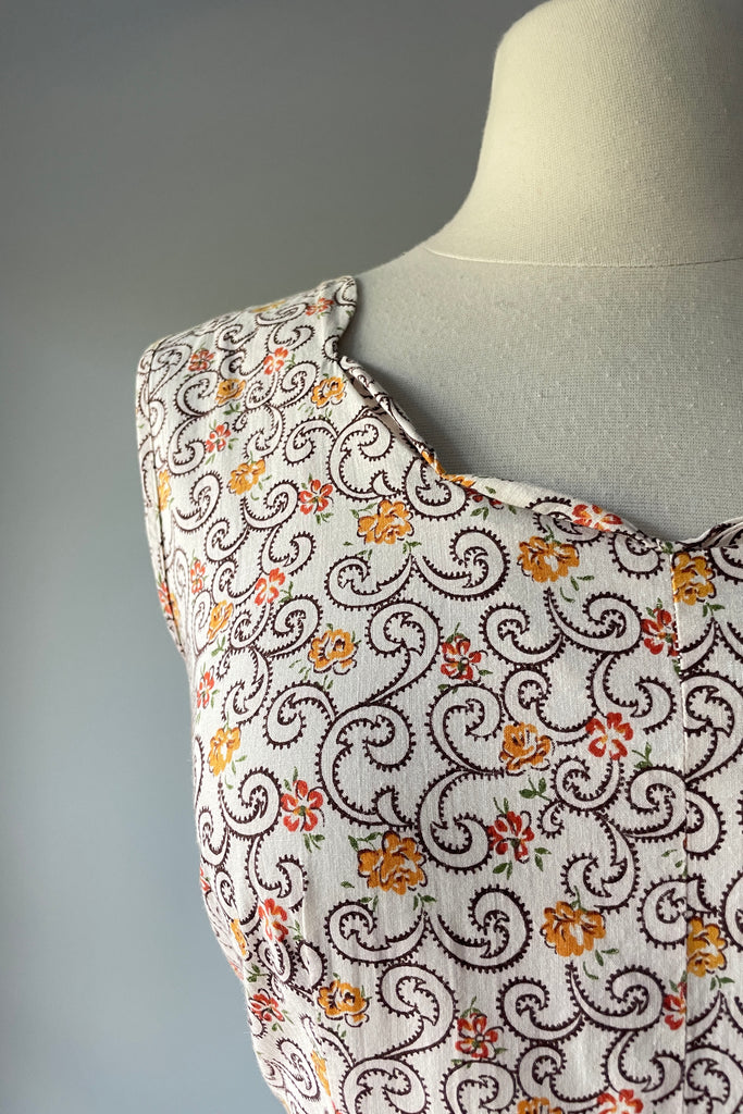 d e t a i l s : gorgeous danish floral and lace print, scalloped neckline, full skirt