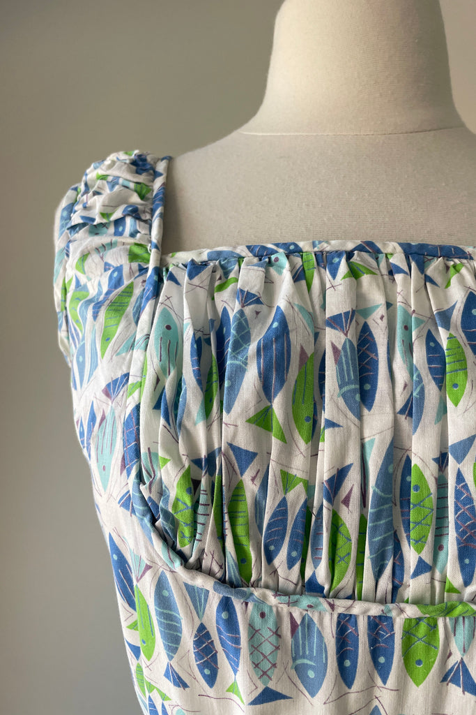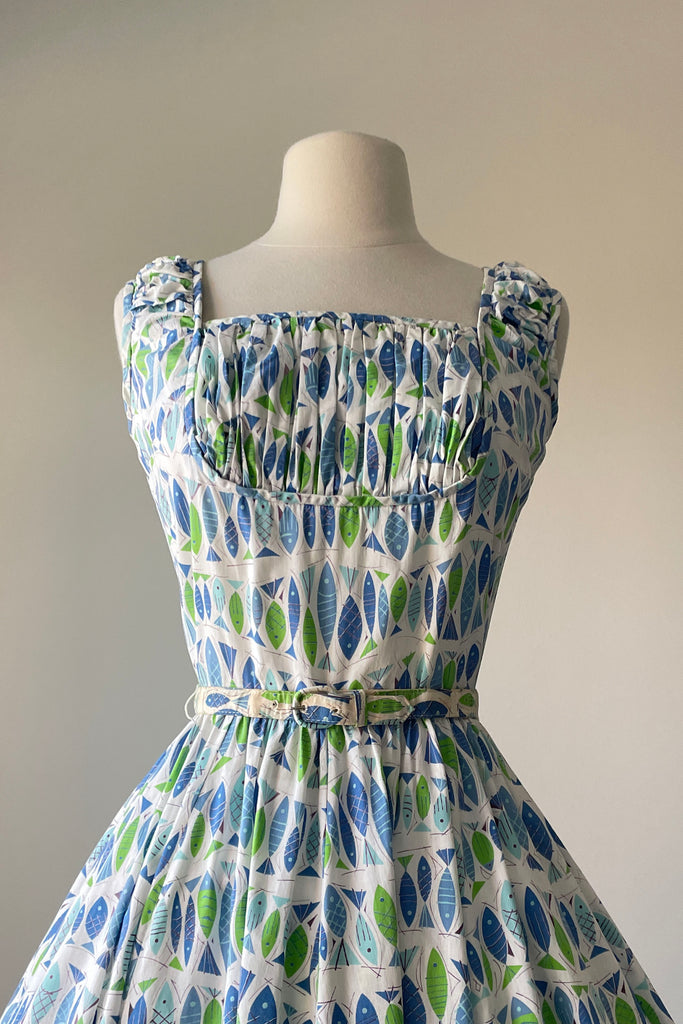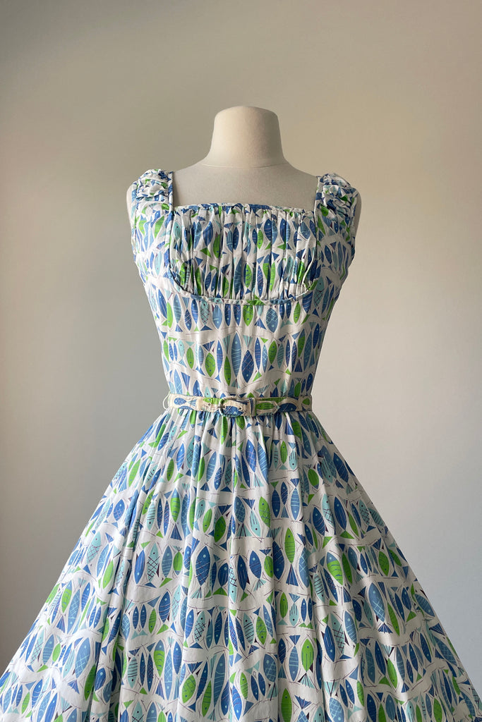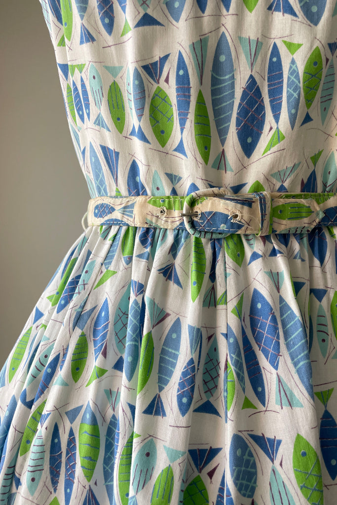 d e t a i l s : darling fish novelty print on white background, original matching belt