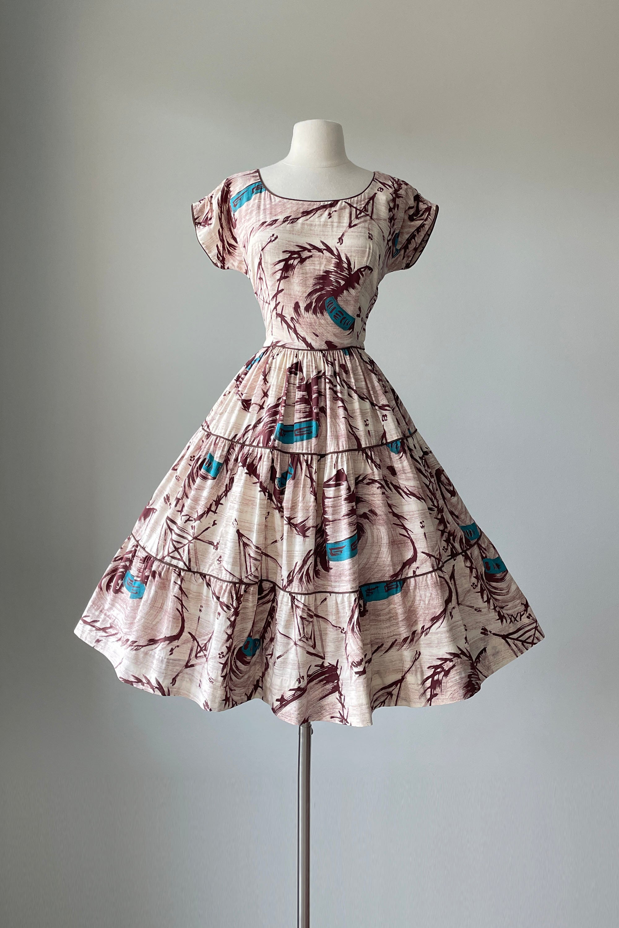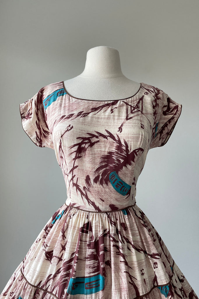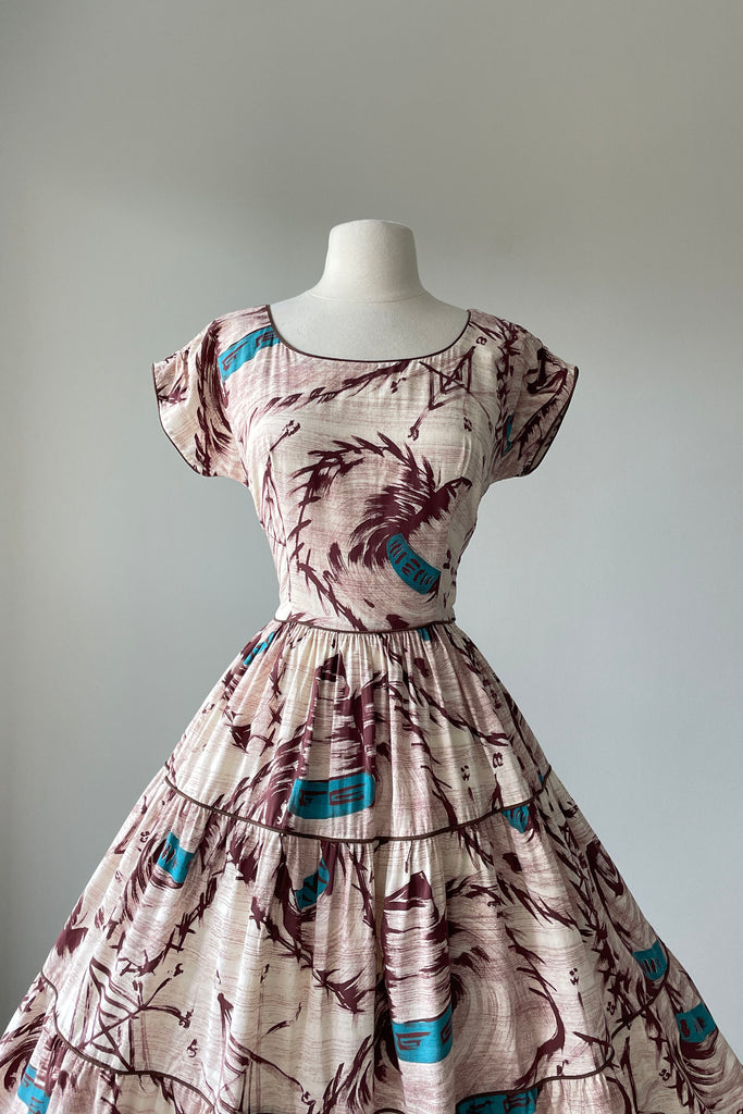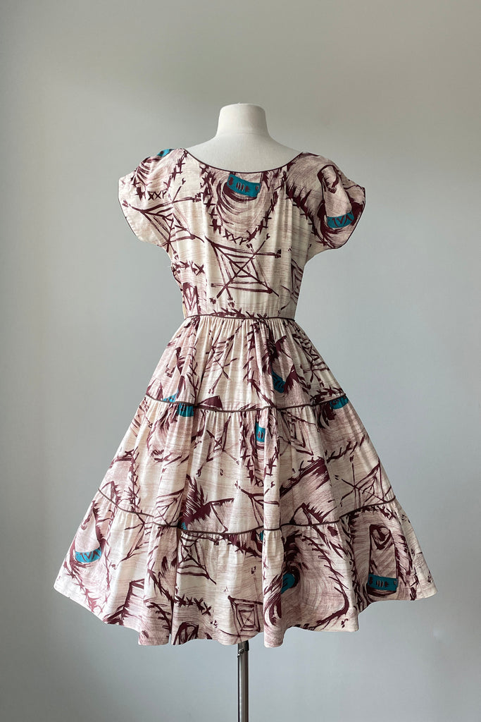 Vintage 1950s God's Eye Sombrero Novelty Print Dress | SMALL