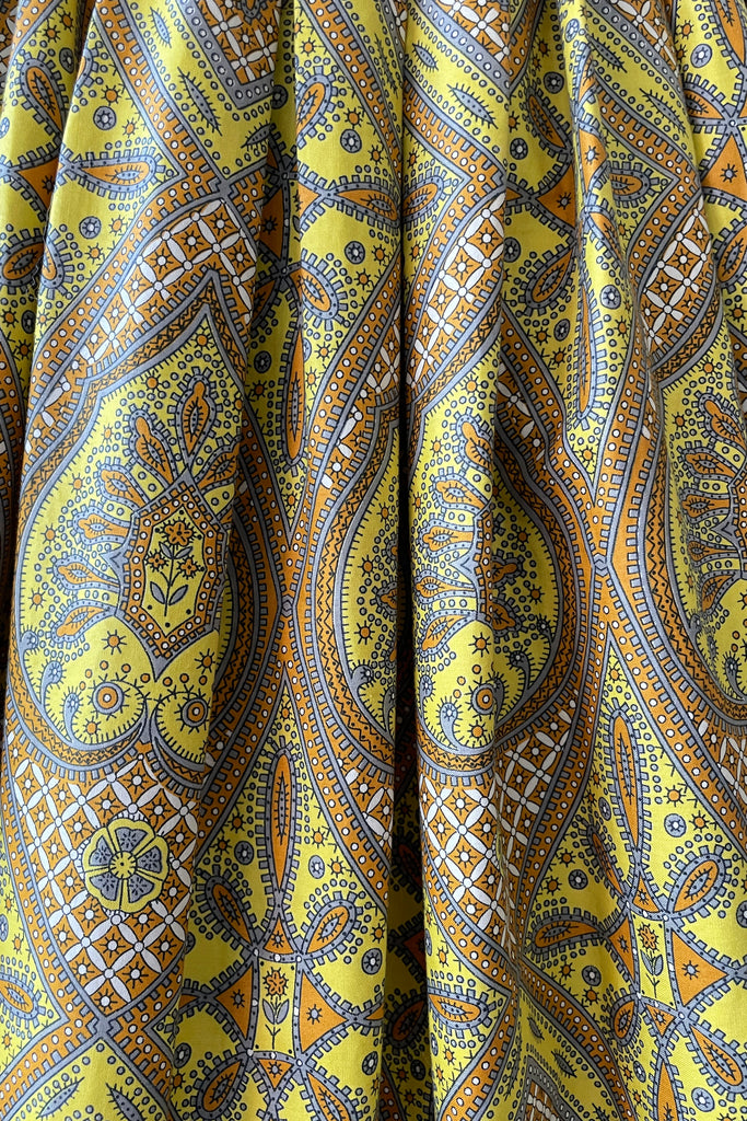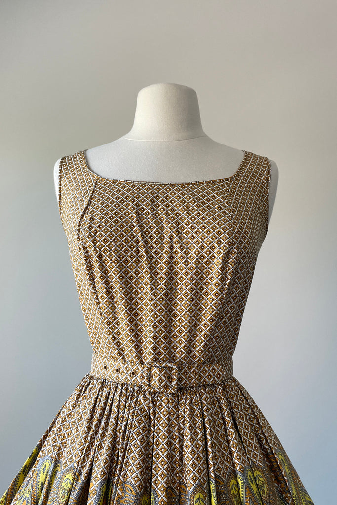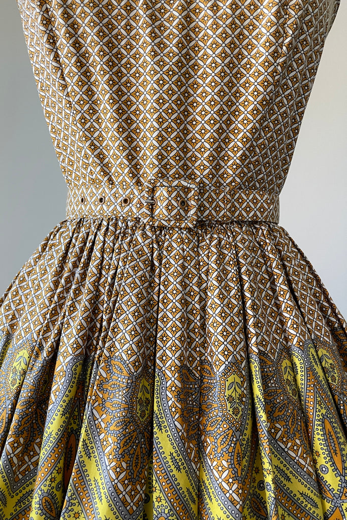 d e t a i l s : gorgeous heavy polished cotton, darling paisley print, full skirt, original belt