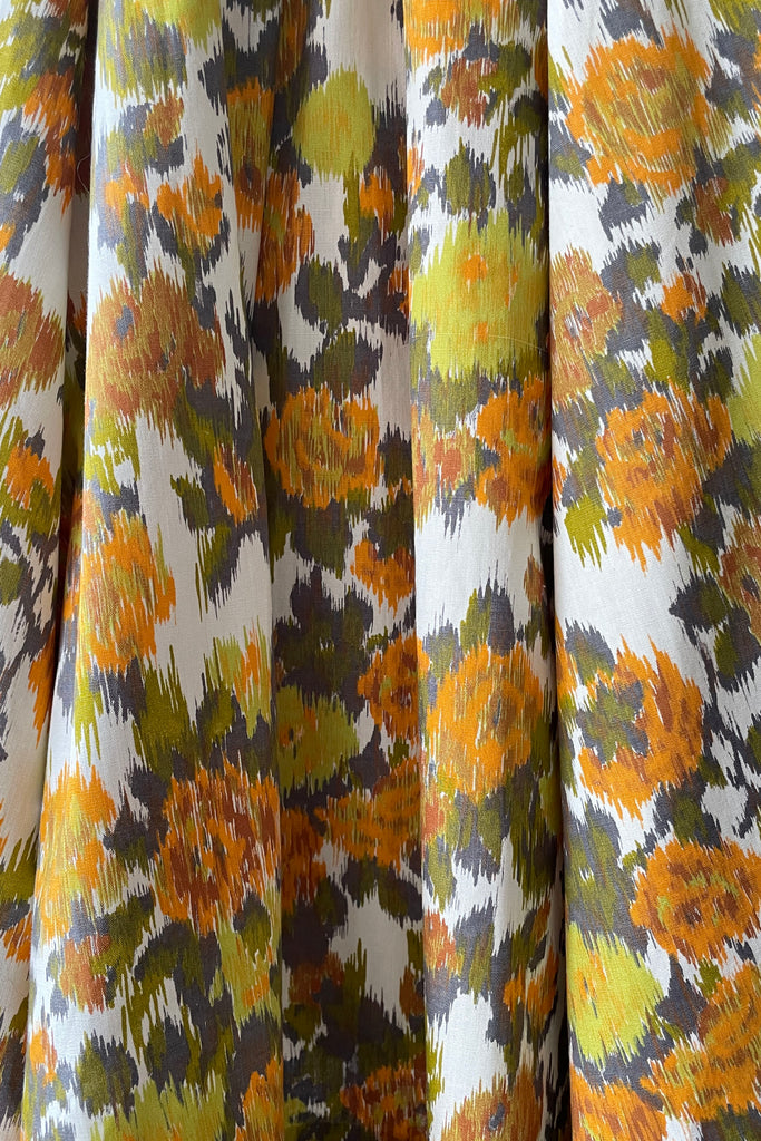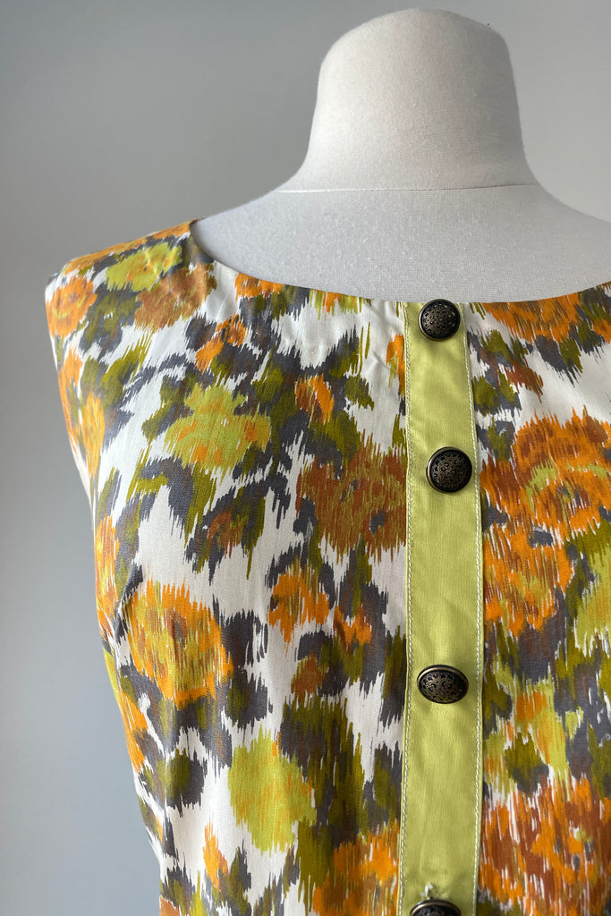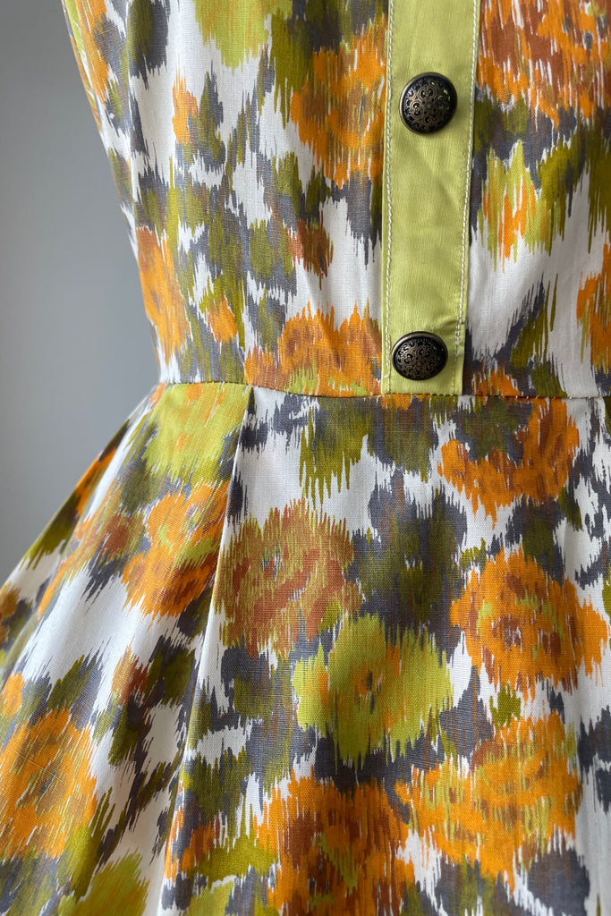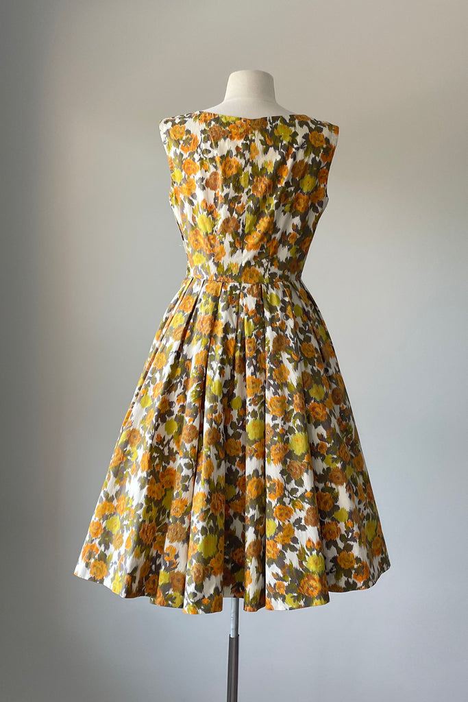 d e t a i l s : gorgeous orange rose print, gross-grain ribbon button placket up front bodice, full skirt