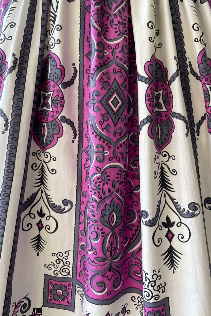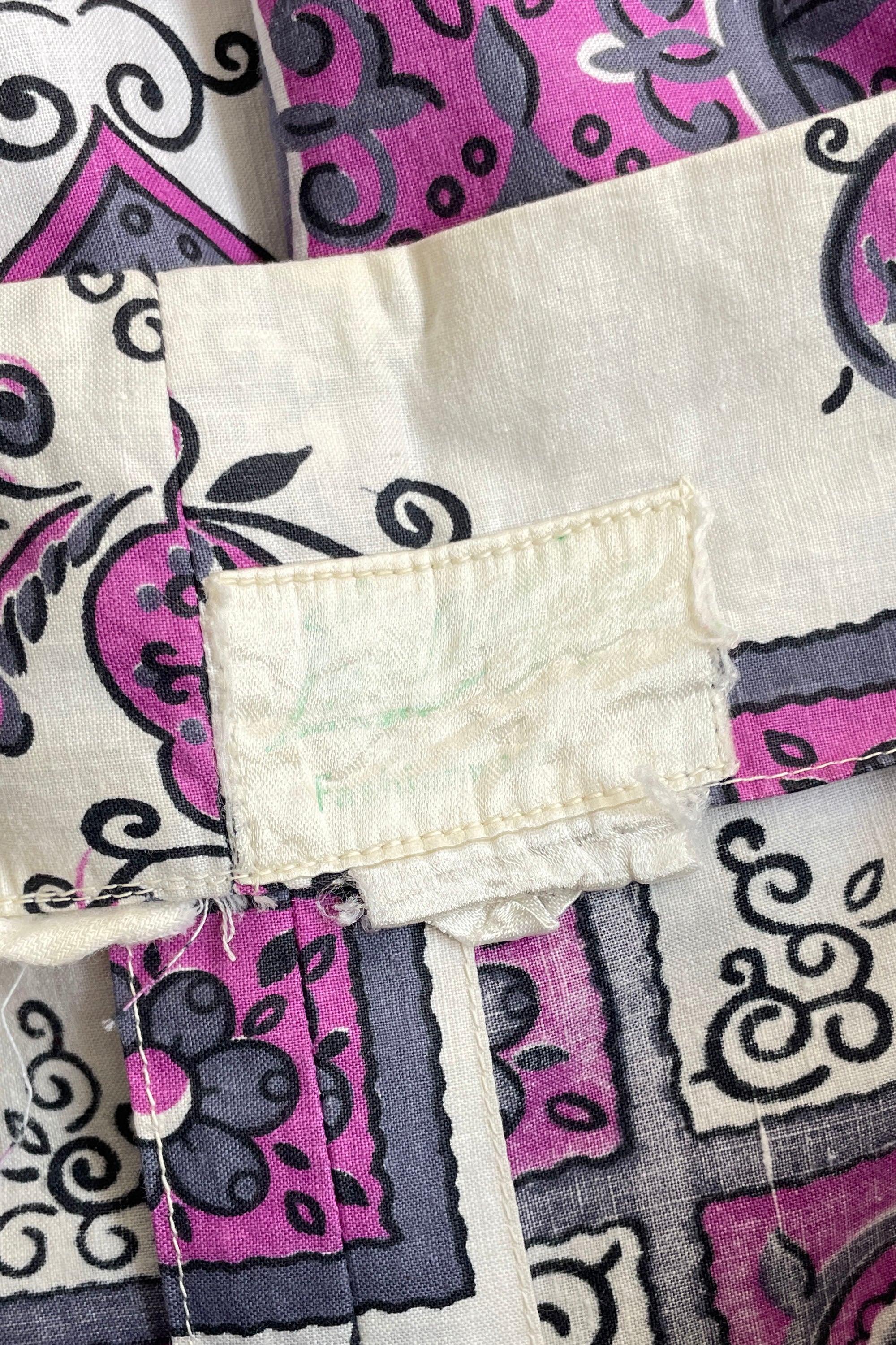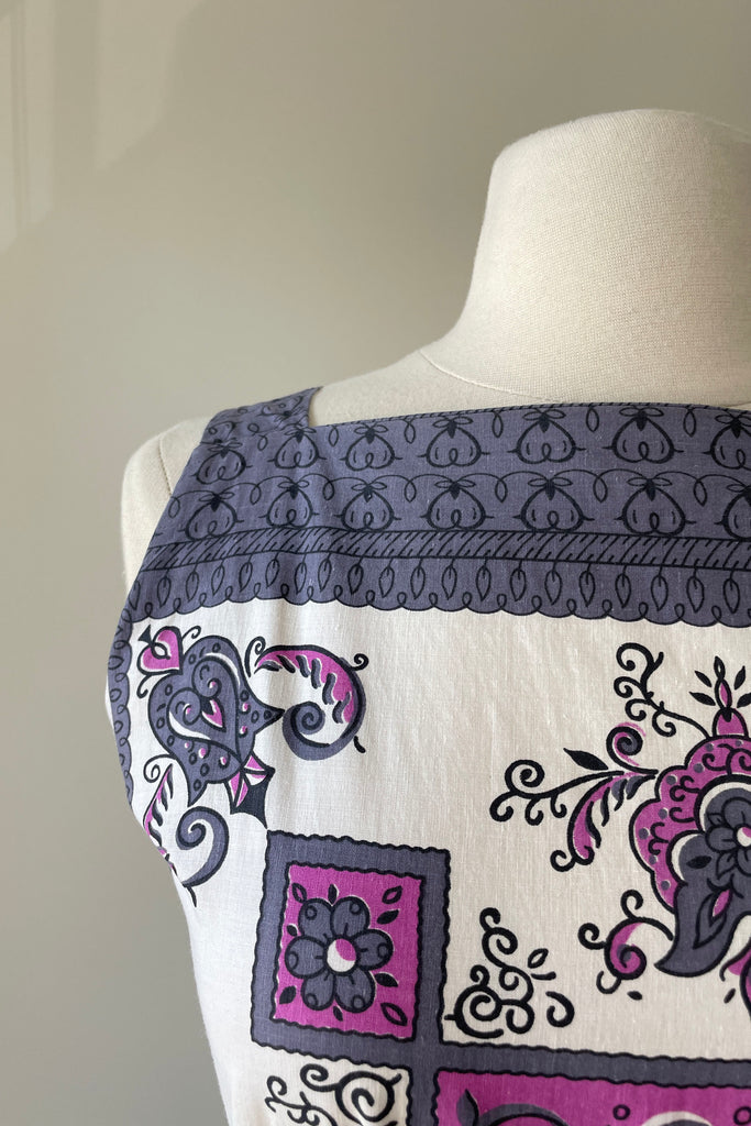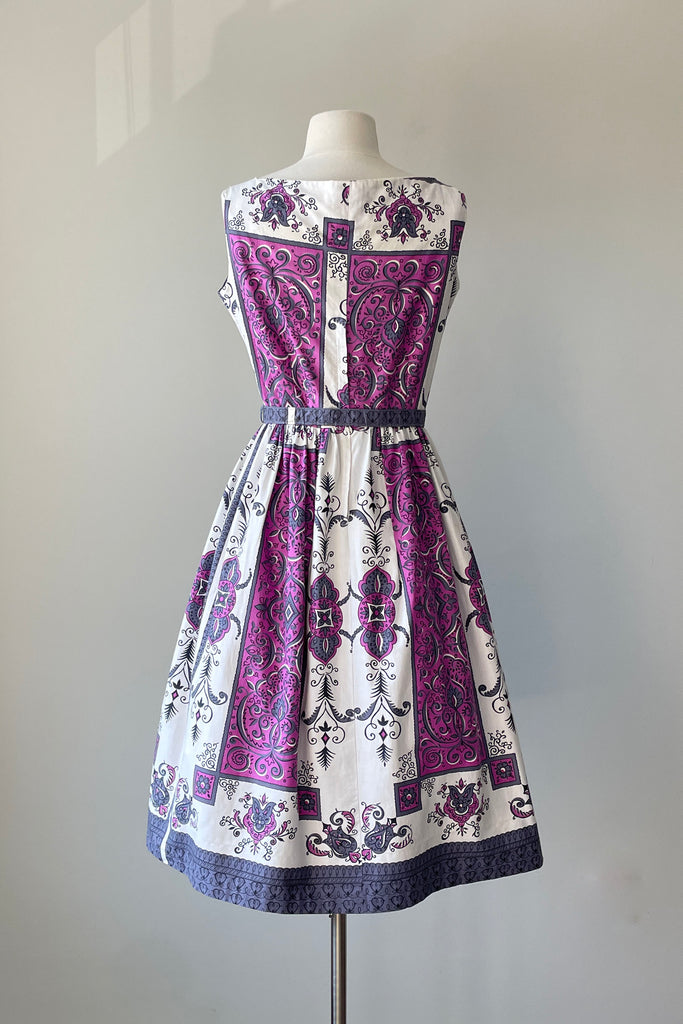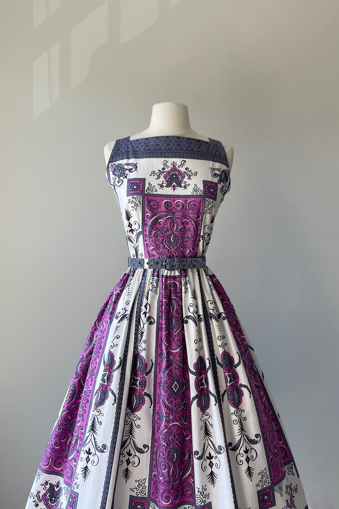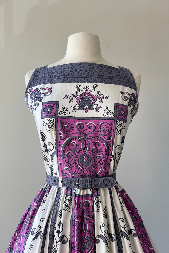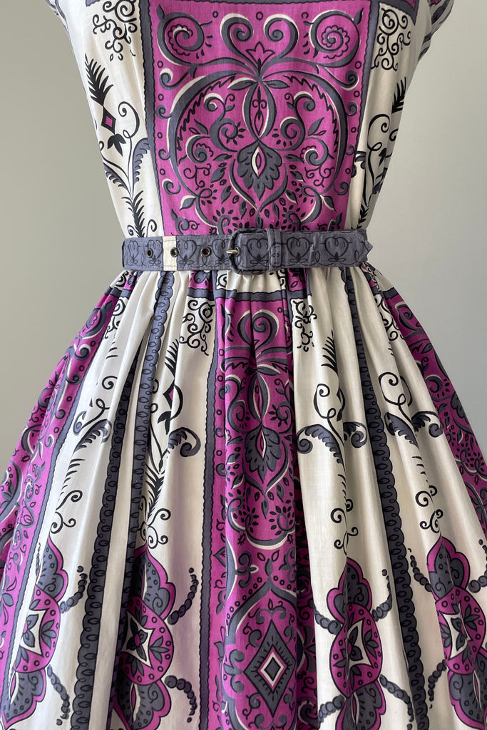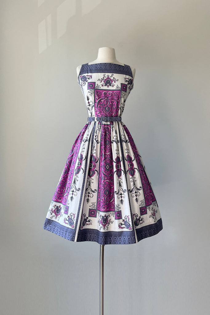 1960s Purple Scroll Belted Dress | MEDIUM