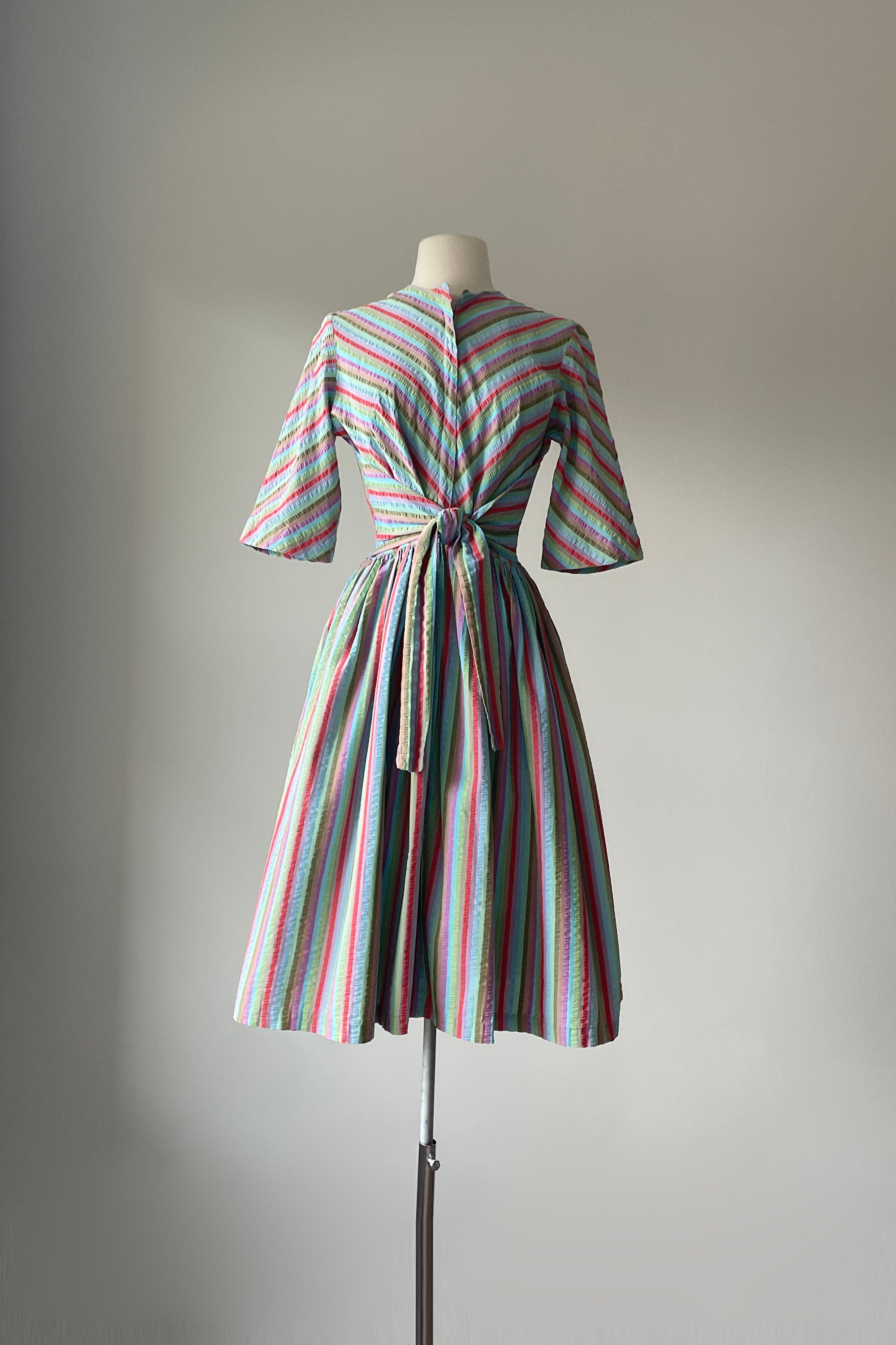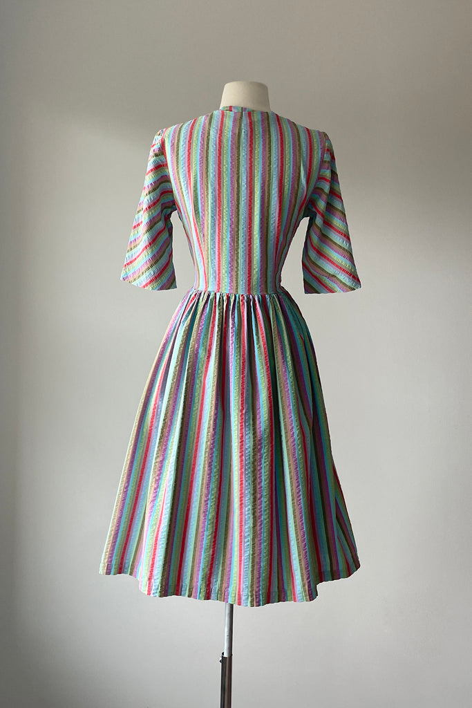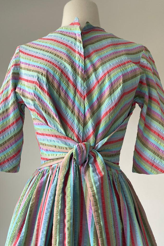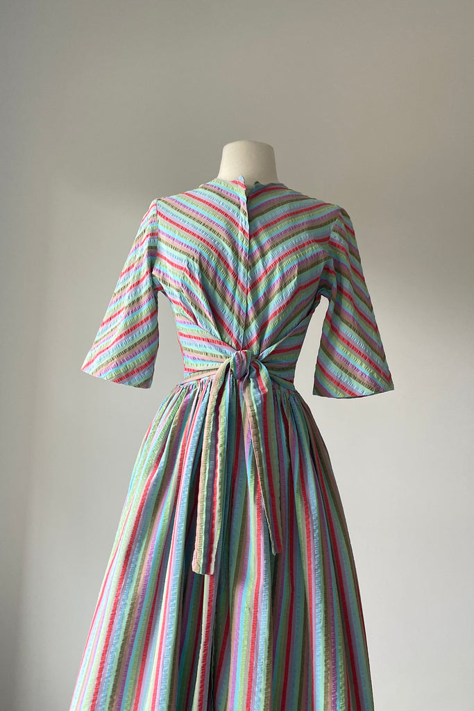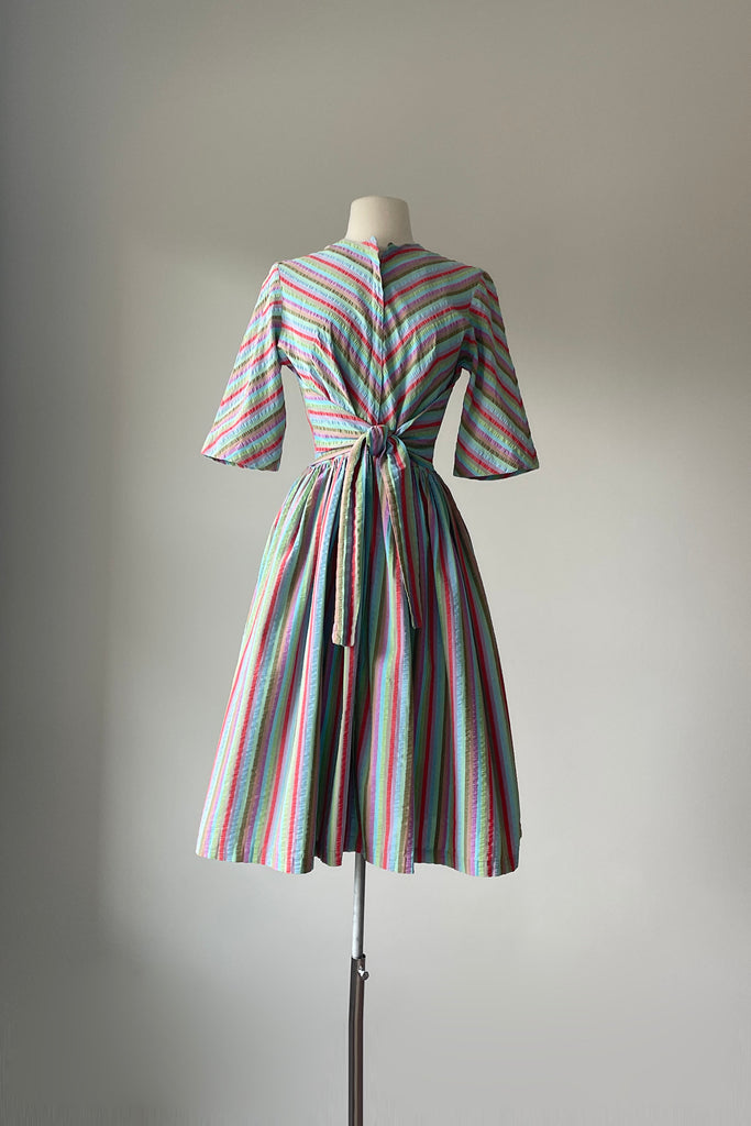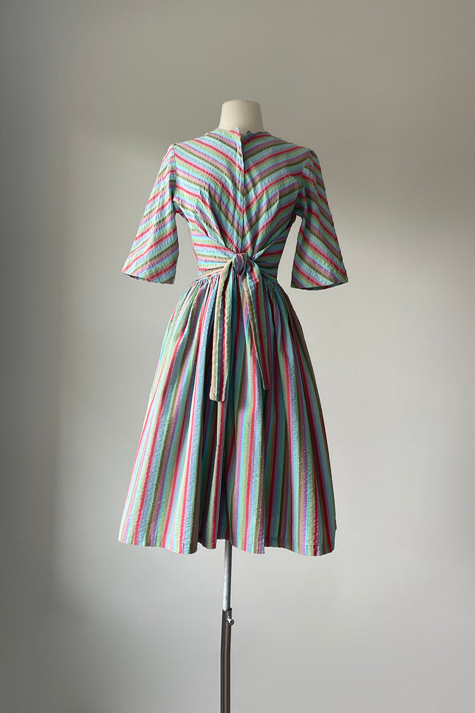 1950s Rainbow Stripe Tie Front Dress | XS/S