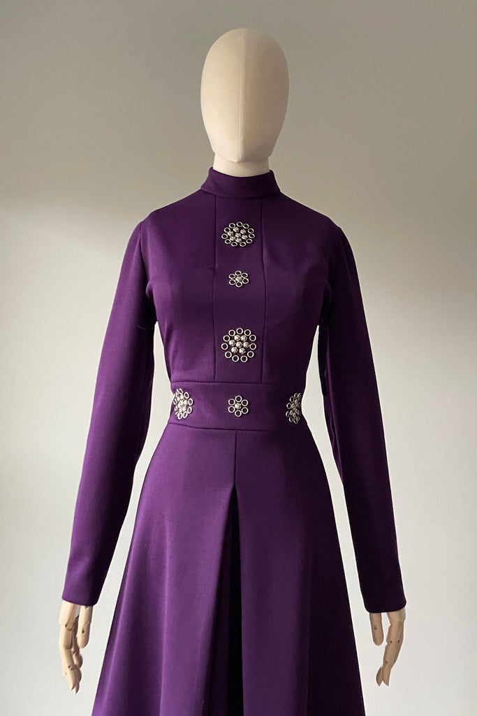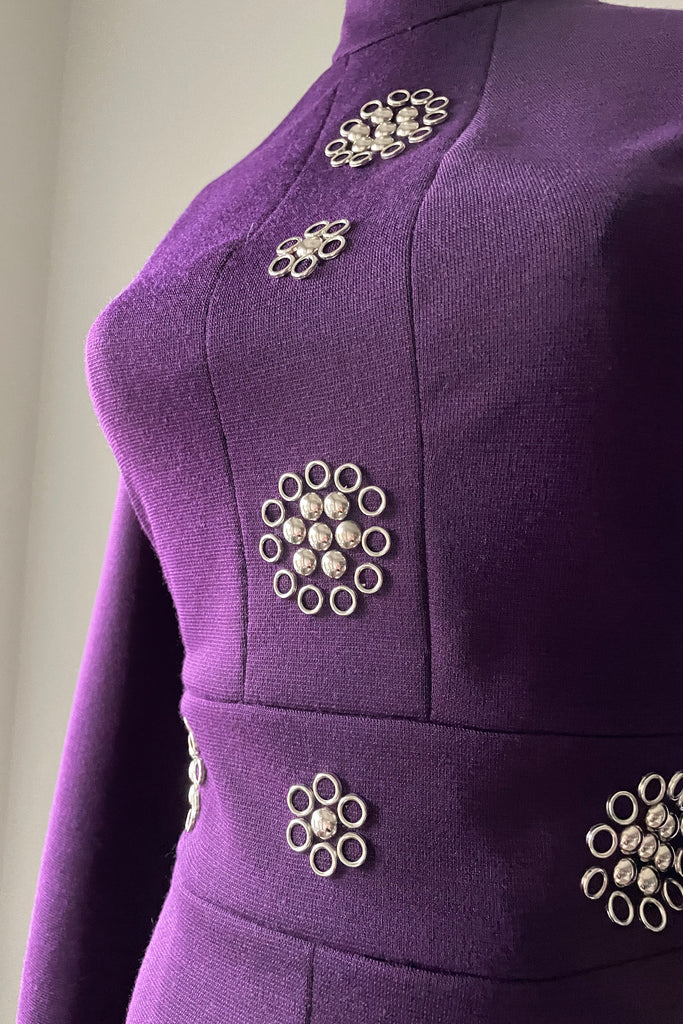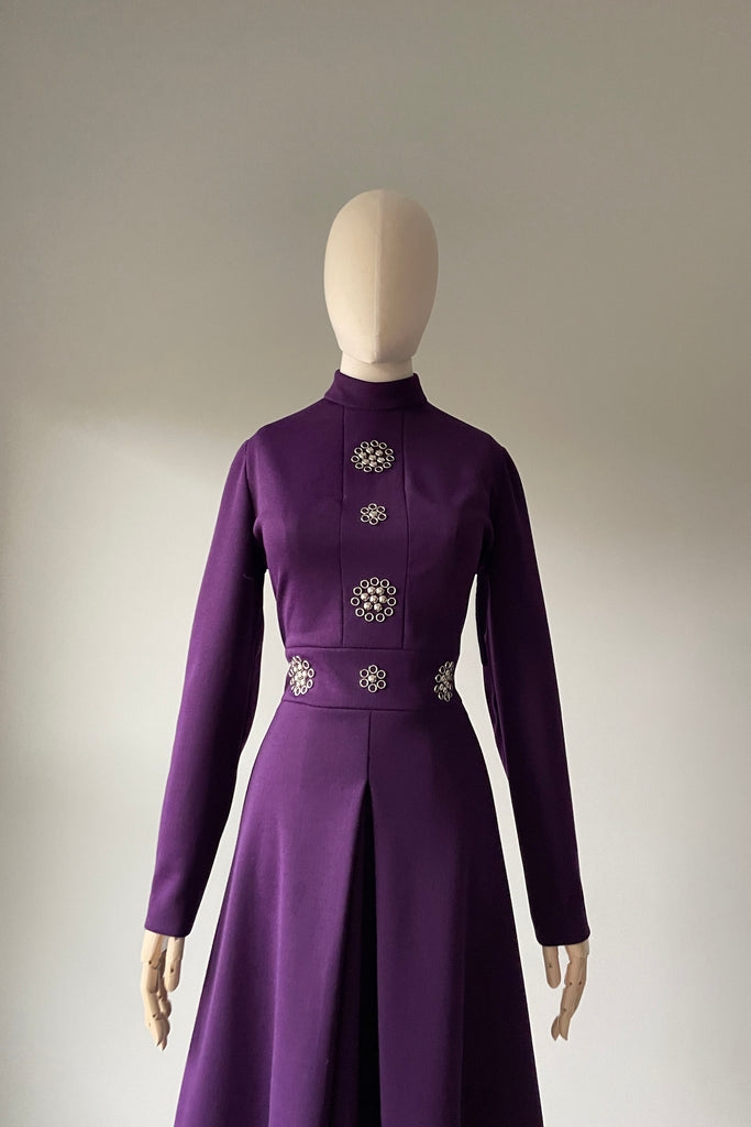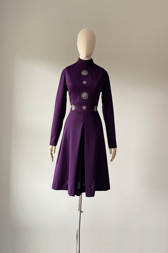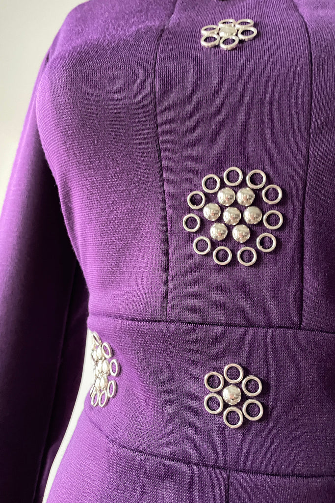 1960s Royal Purple Silver Accents Dress by Tizzy | S/M