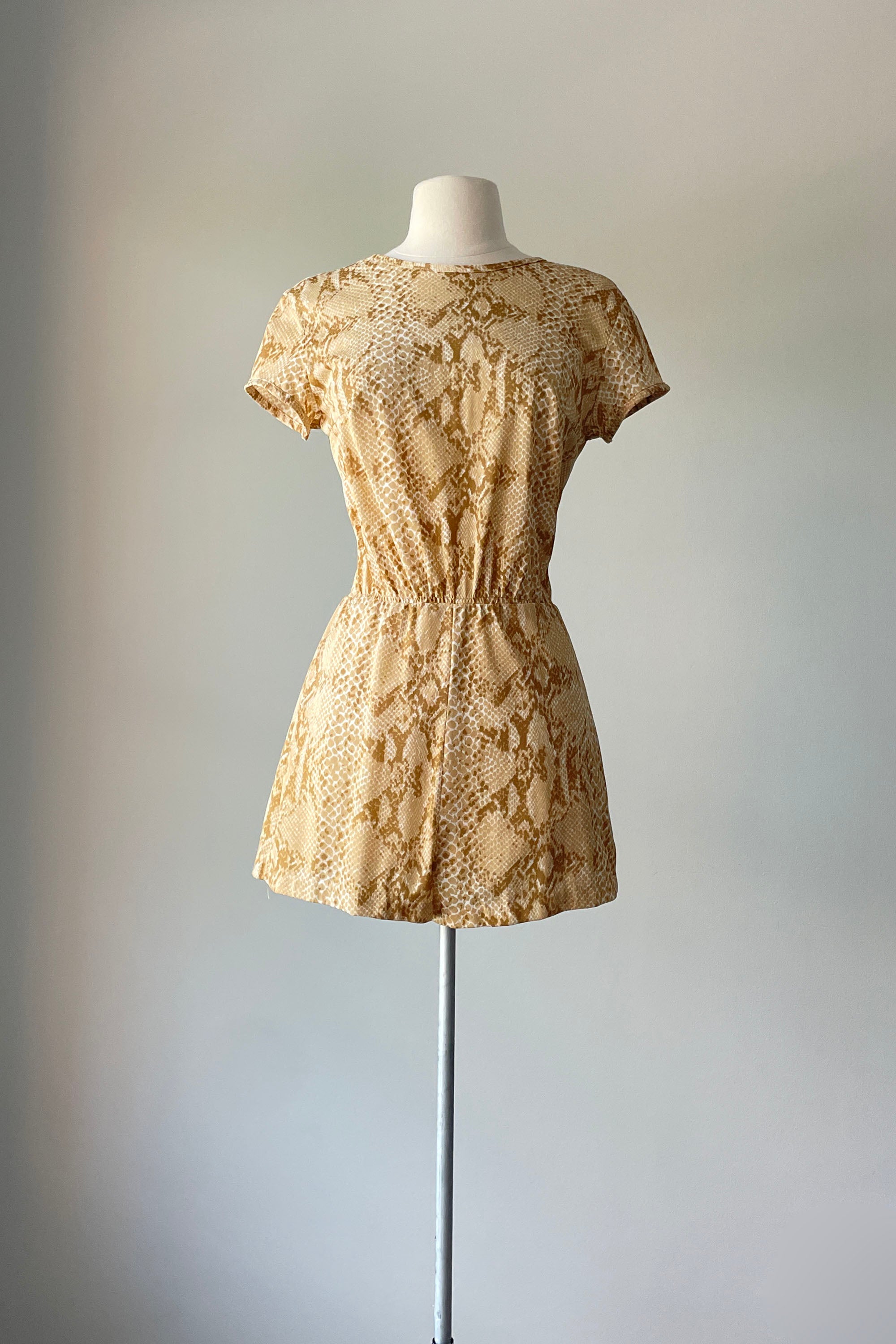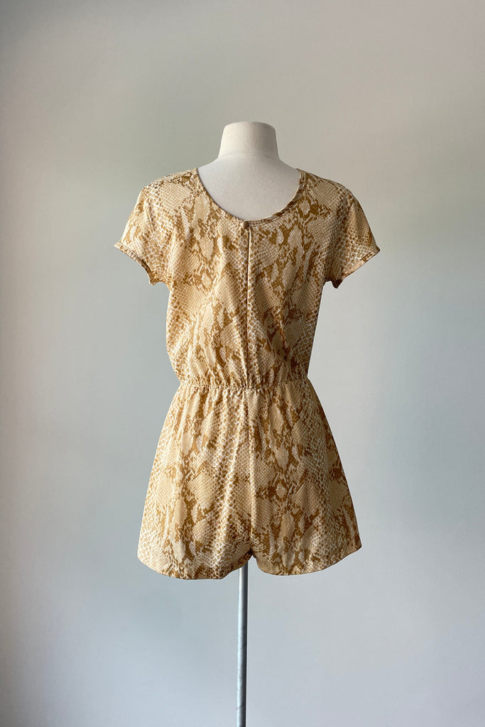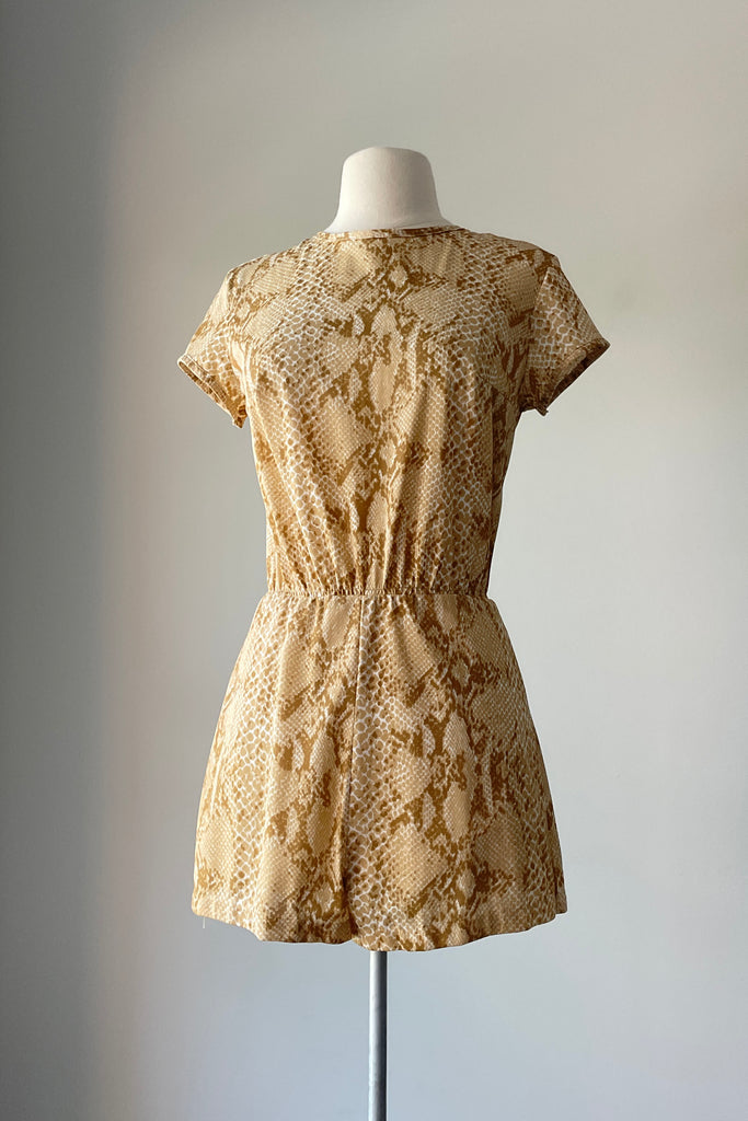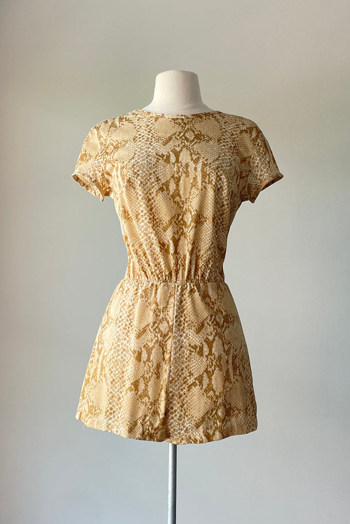 1970s Snakeskin Print Jumper Romper Shorts | XS/S