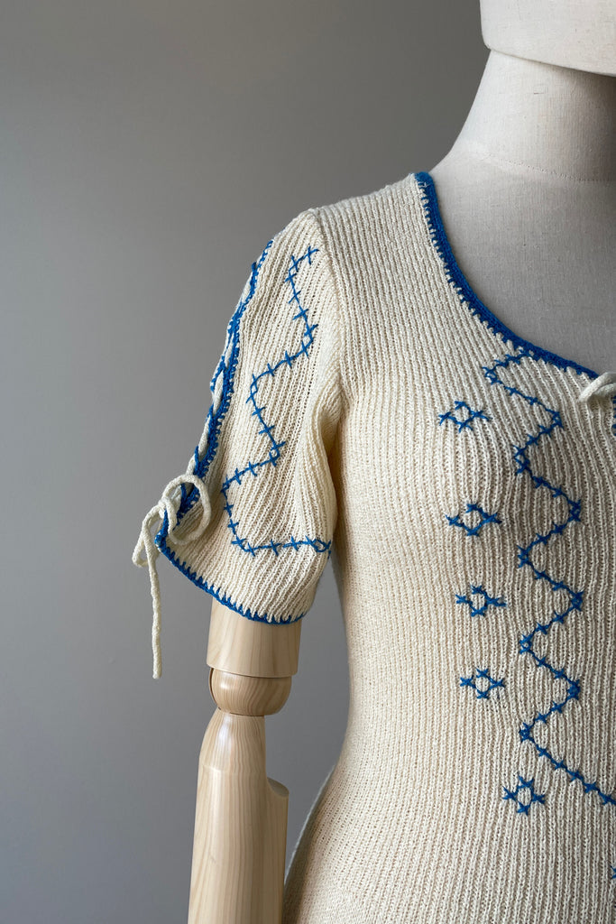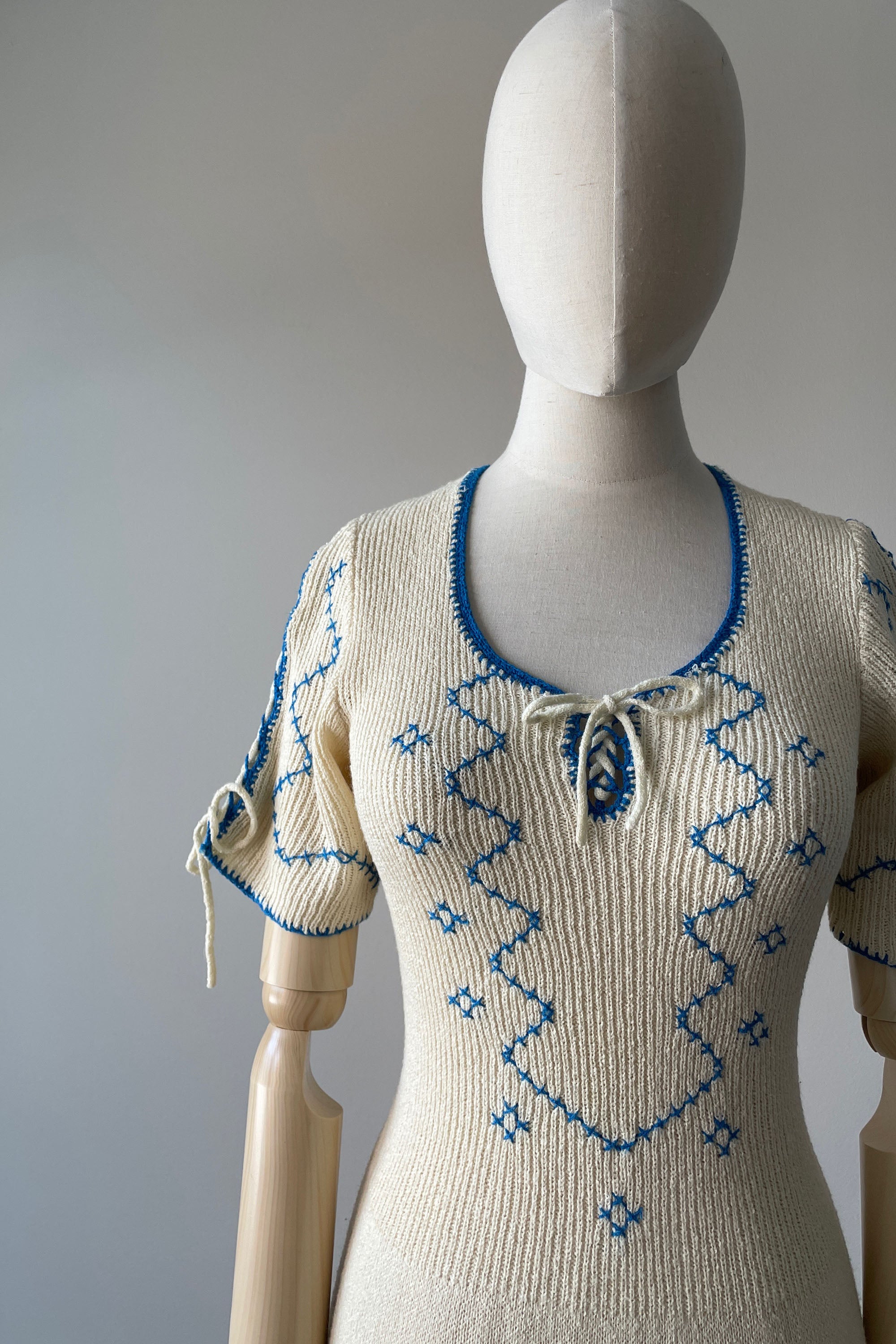 d e t a i l s : darling embroidered details, ties at sleeves and bodice