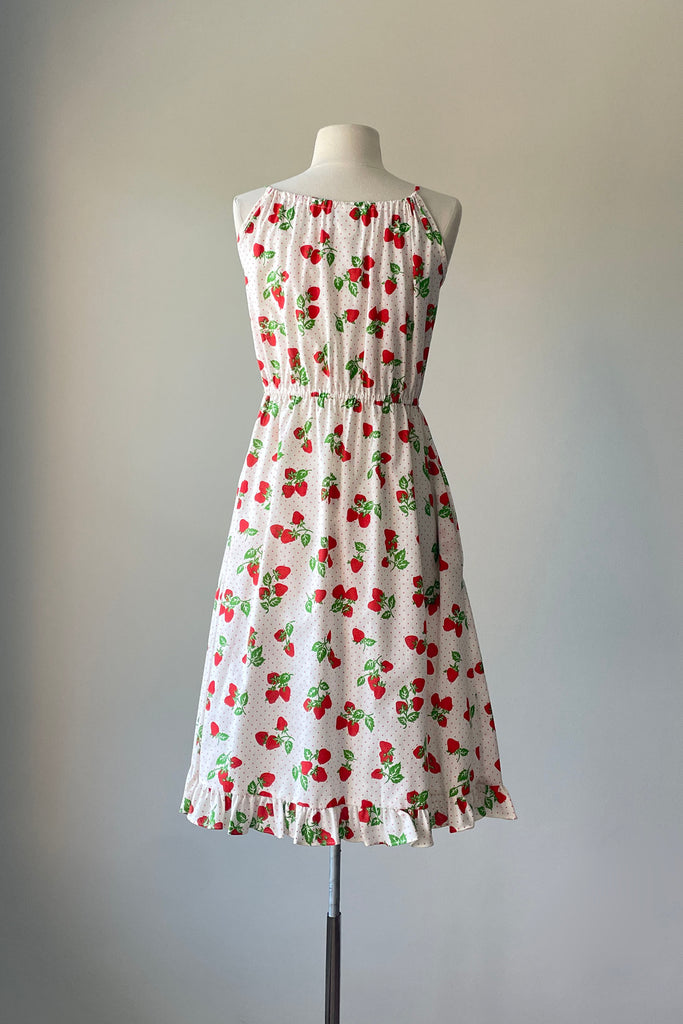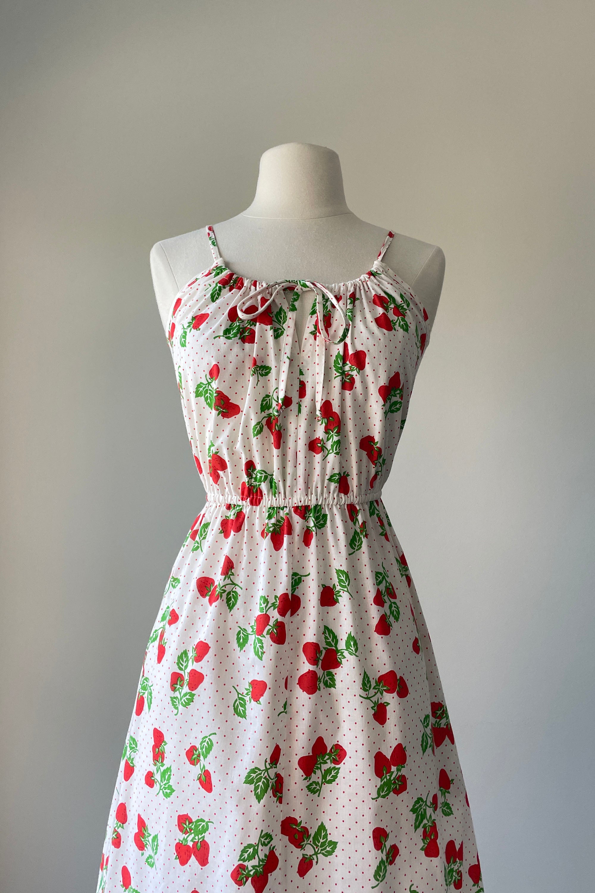 1980s Strawberry Print Dress by Rosemary Long | S/M