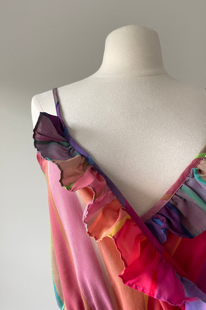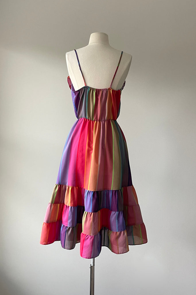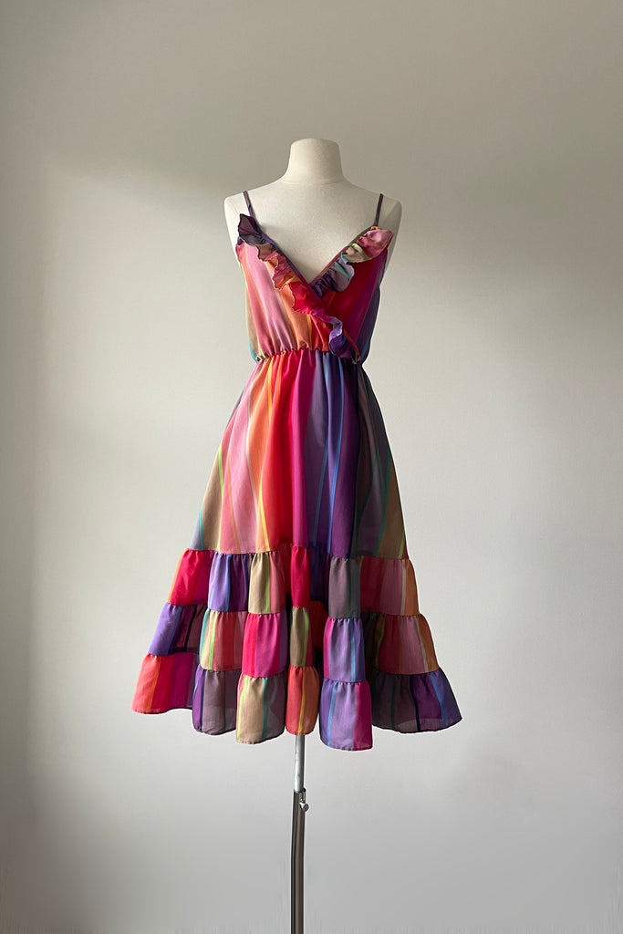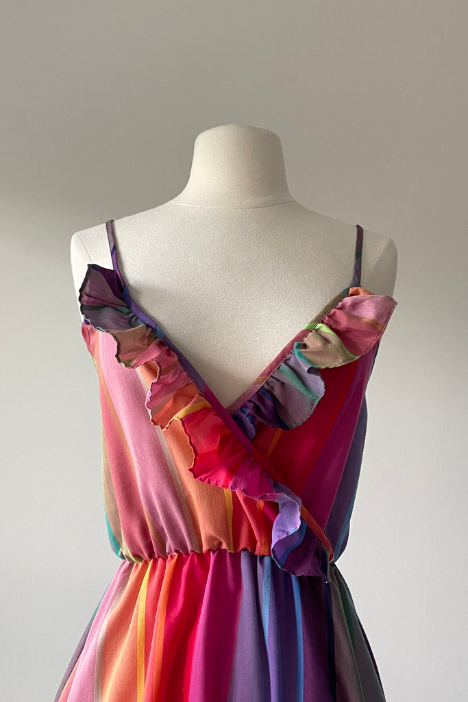 1980s Sunset Stripe Ruffled Sun Dress | XS/S