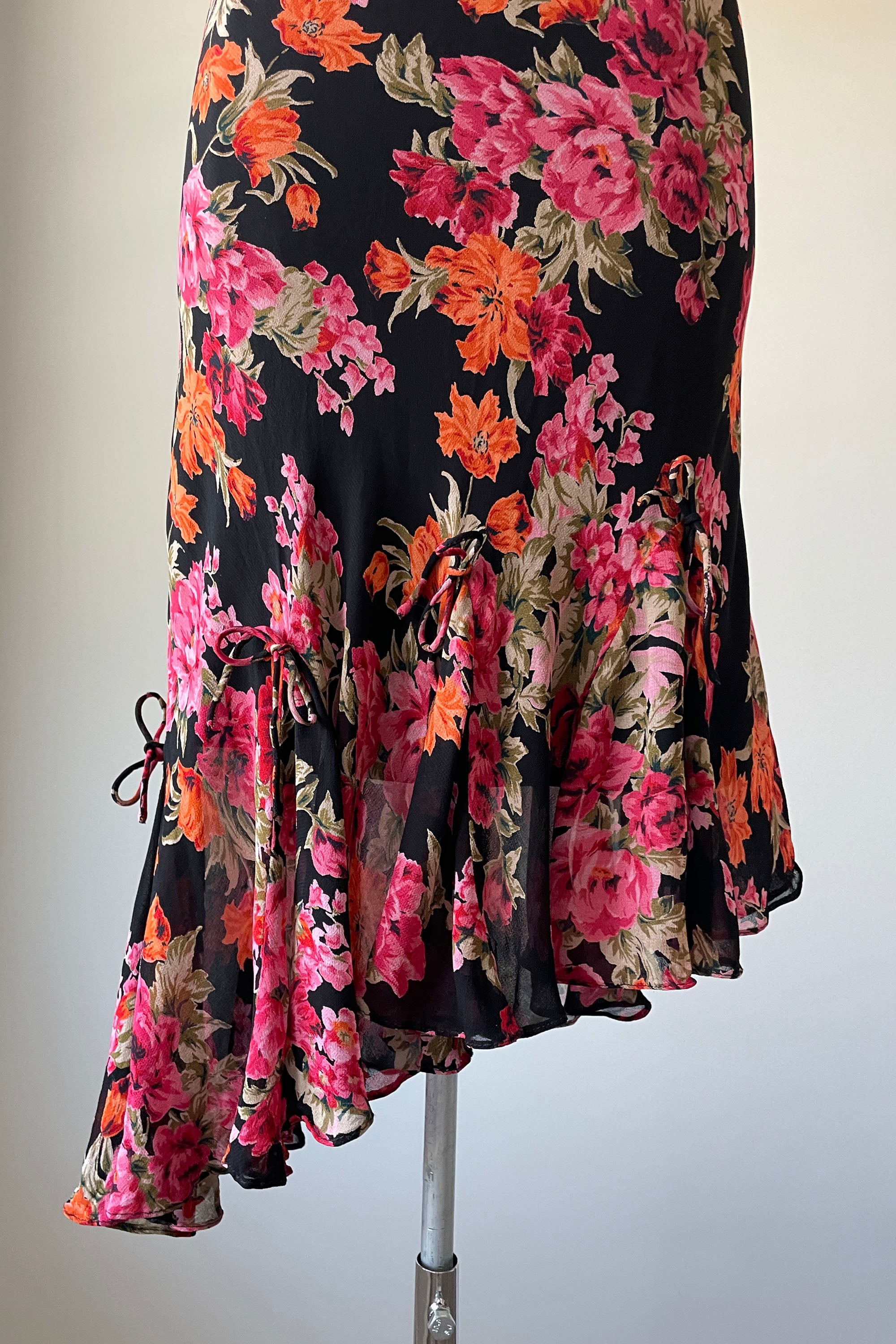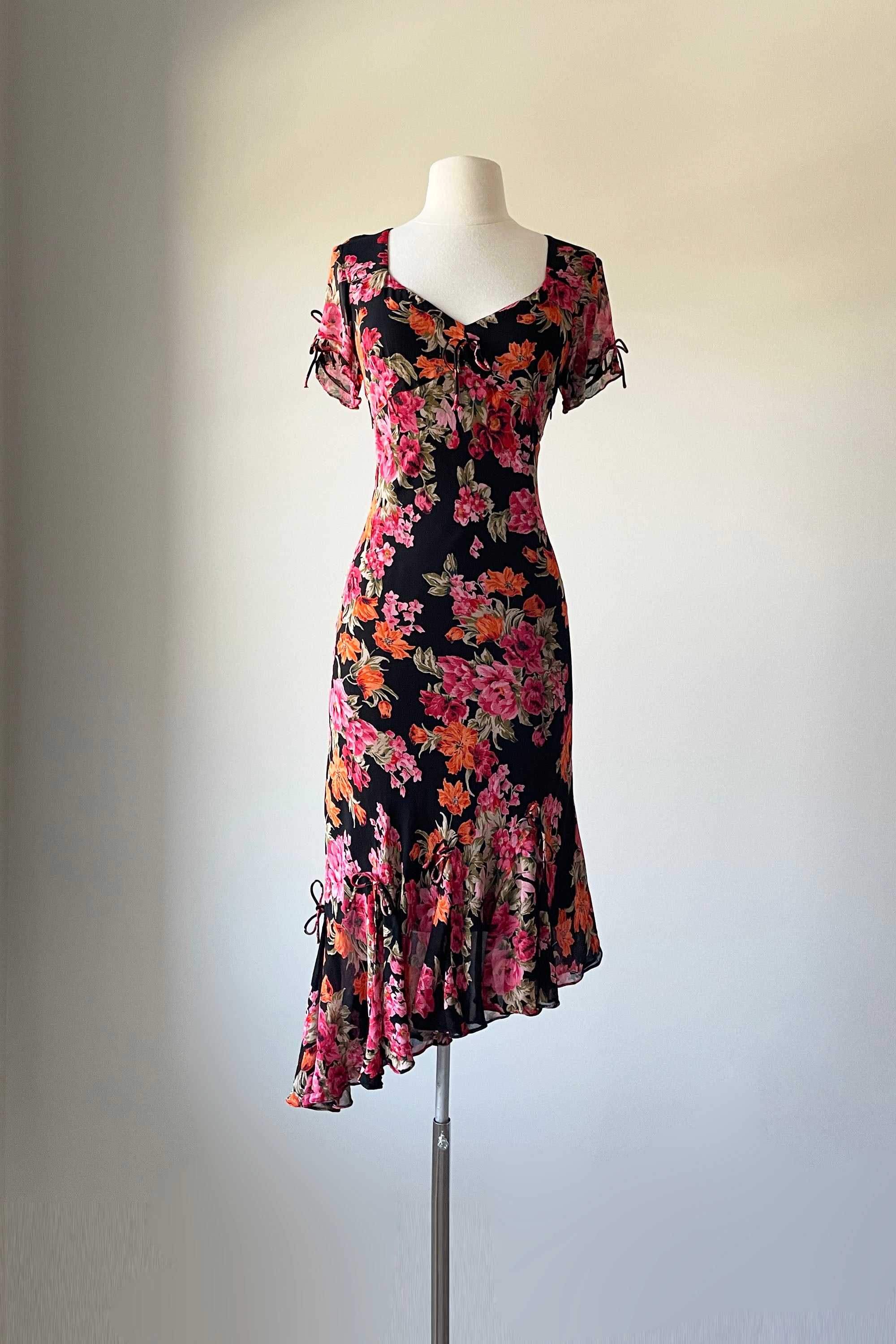 1990s Asymmetrical Hem Floral Print Dress | MEDIUM