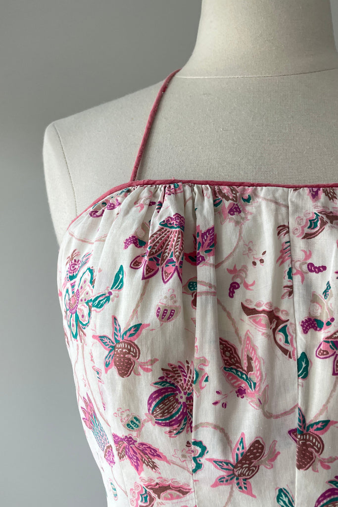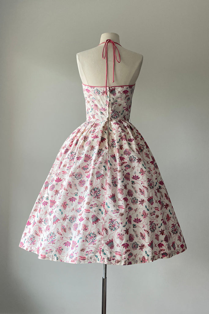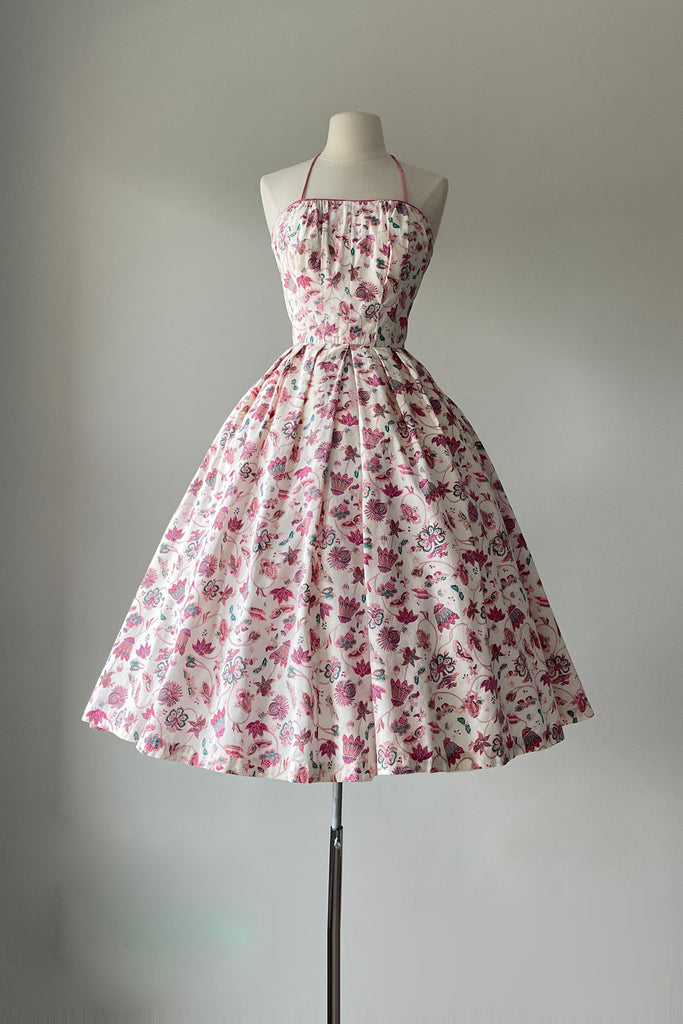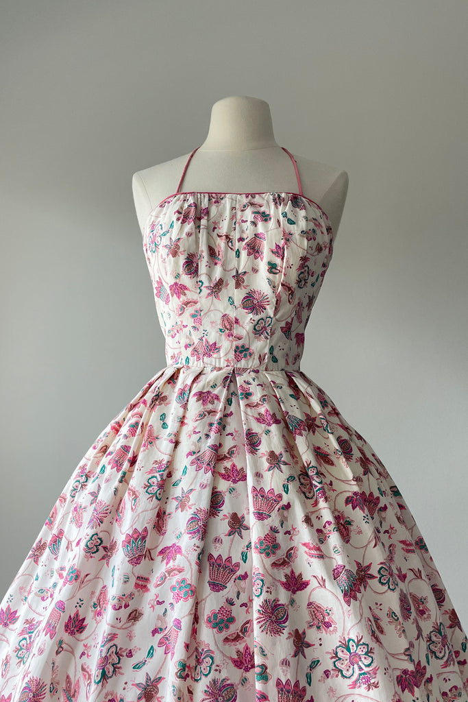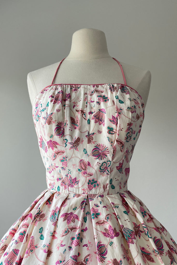 Beautiful 1950s Paisley Floral Halter Dress | XS/S