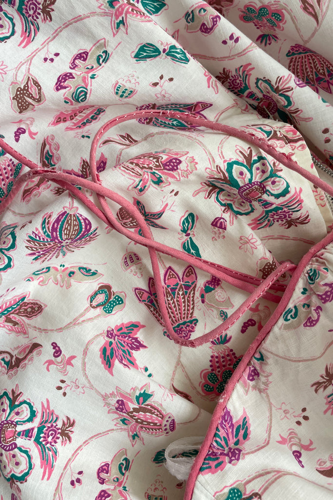 c o n d i t i o n : great - some wear on strap and the pink piping trim along top bodice otherwise no flaws to mention. Freshly laundered and ready to wear.