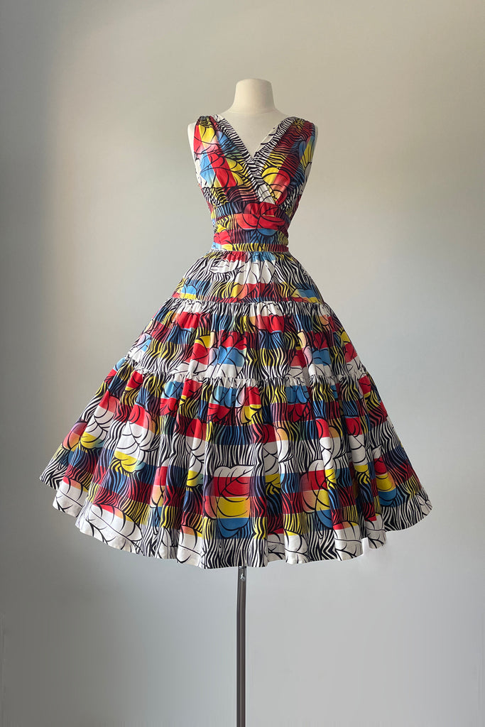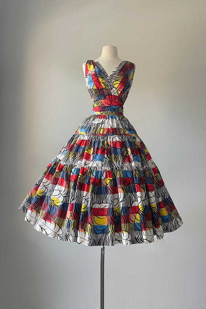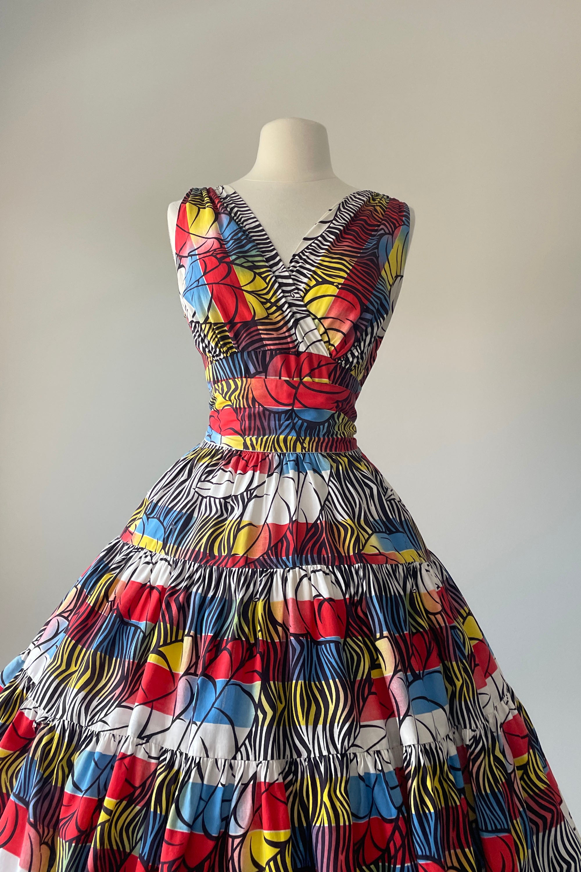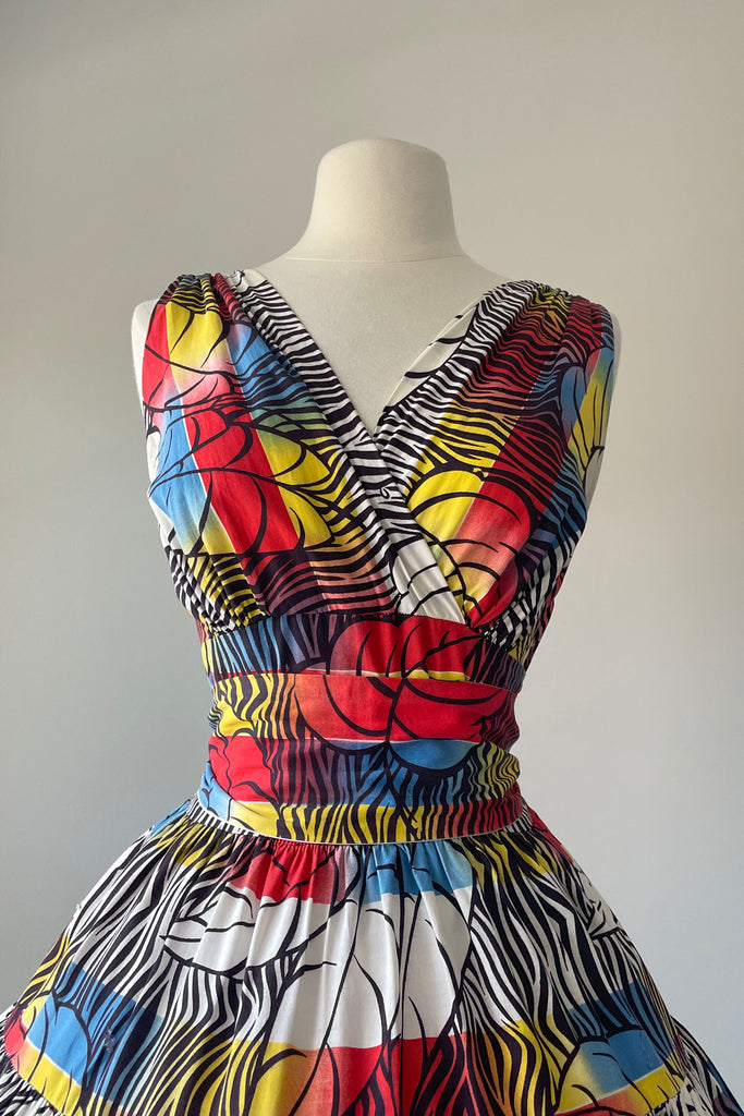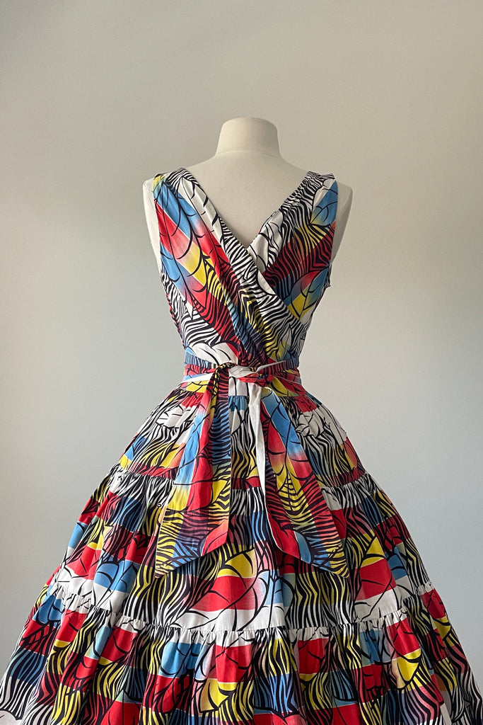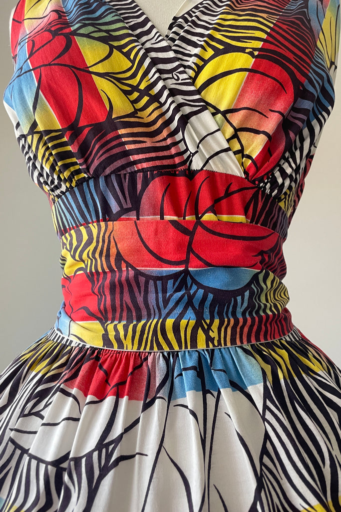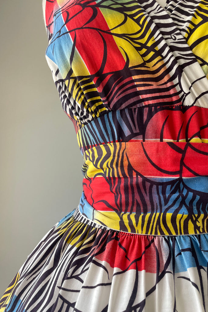 Gorgeous 1950s Colorful Tropical Print Dress | XS/S