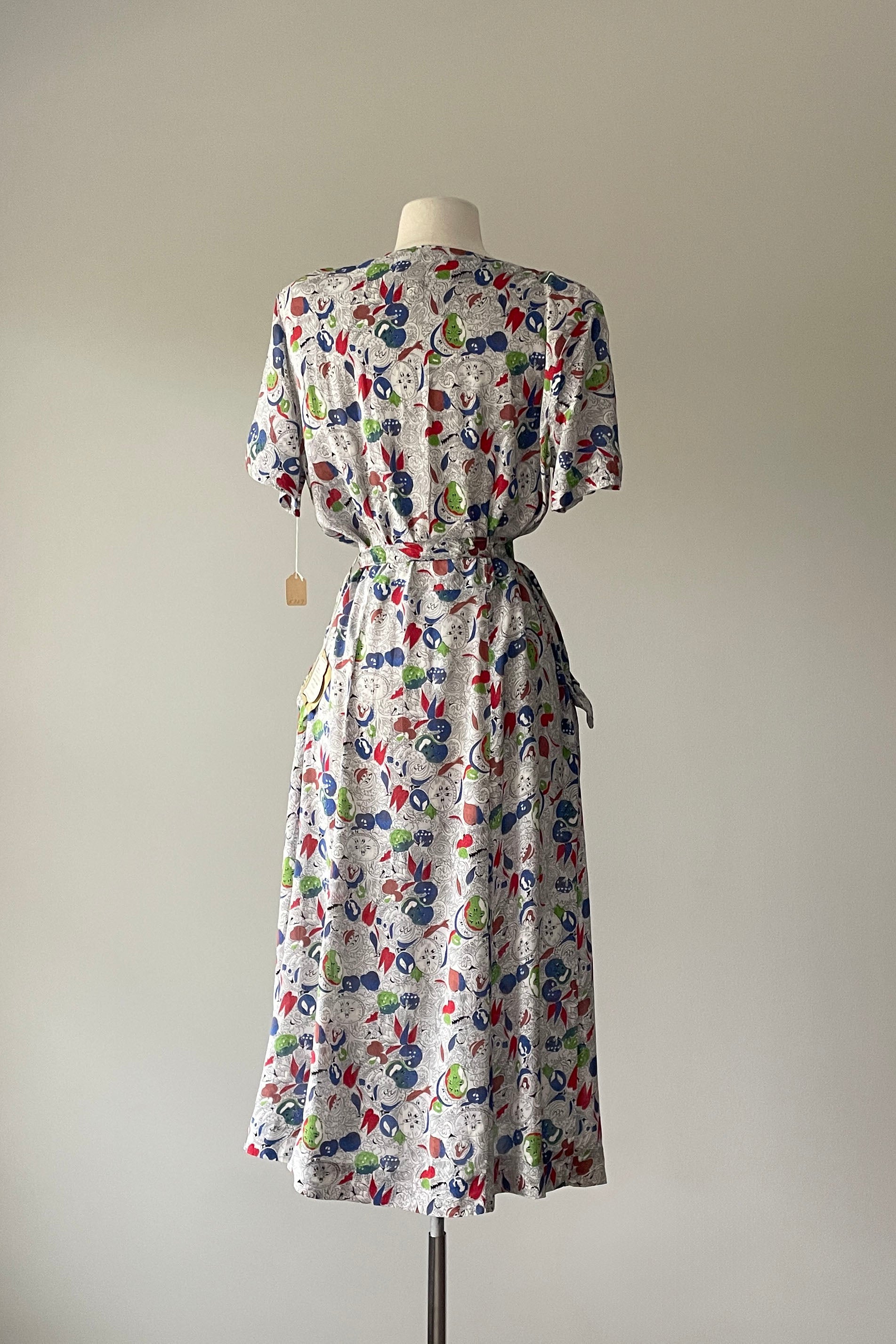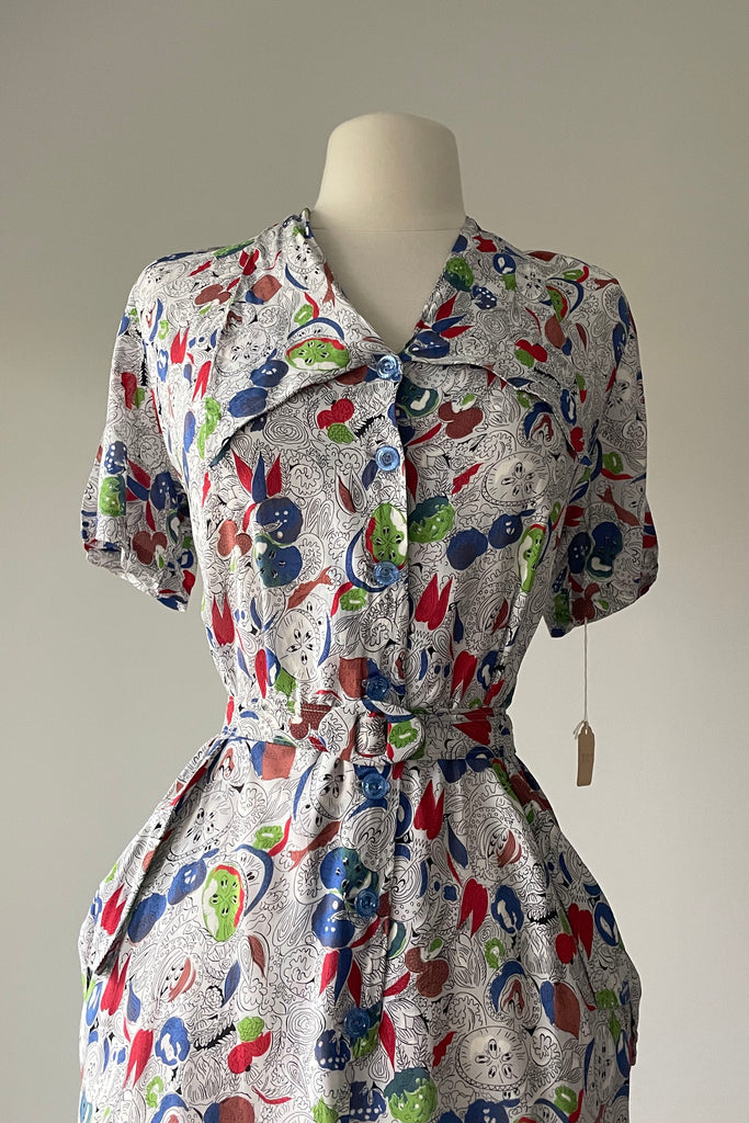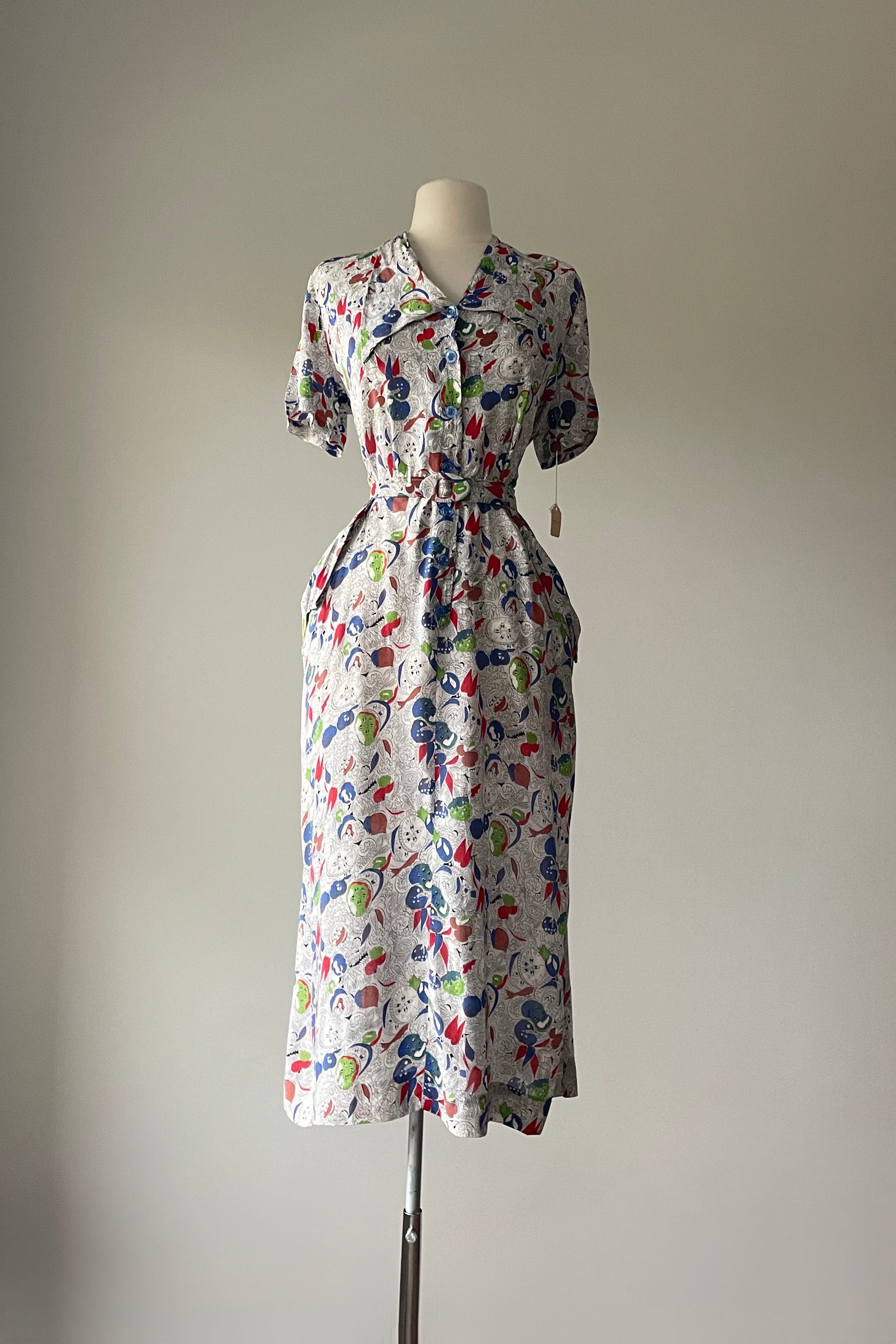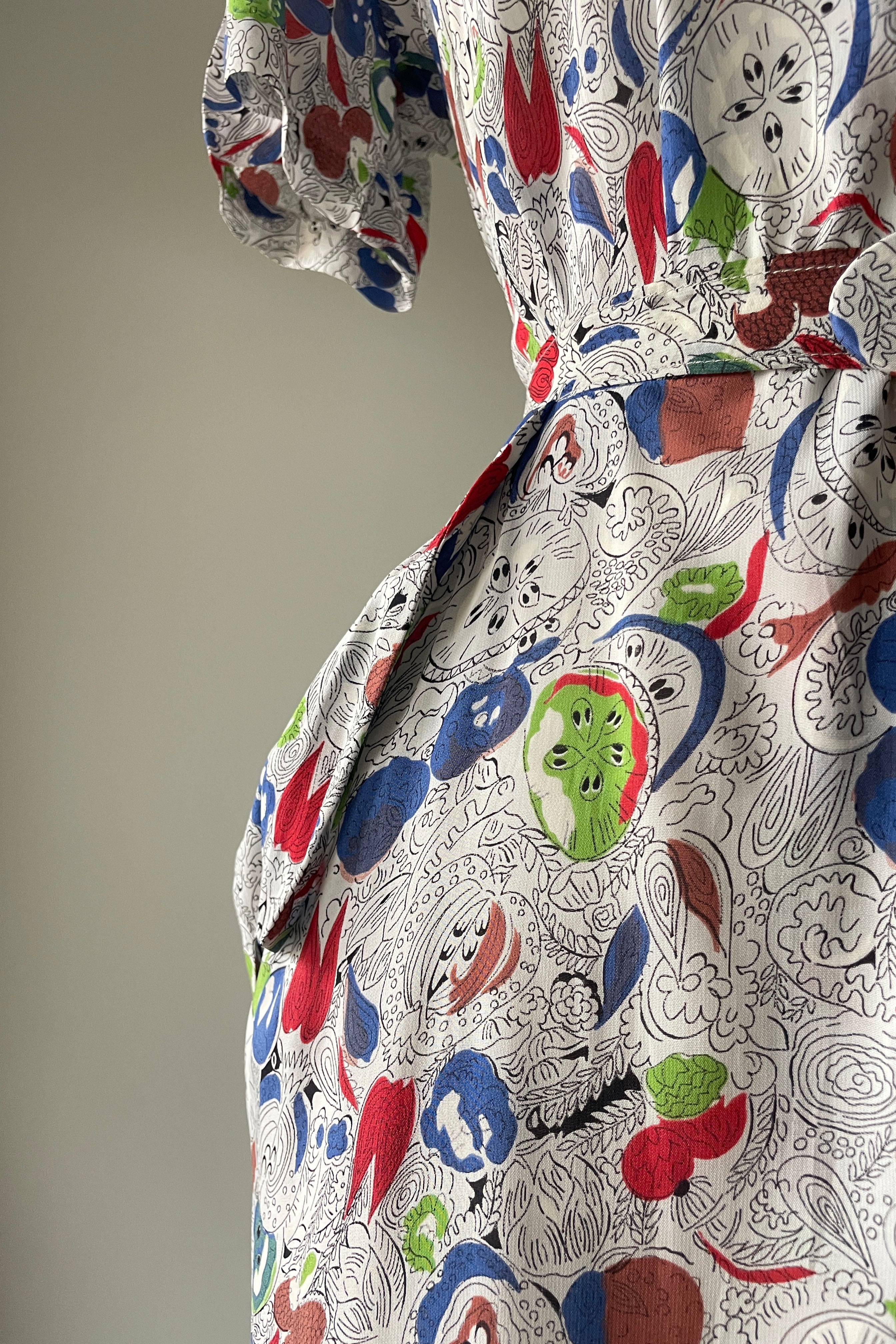 Vintage 1940s Fruit Novelty Print Dress by Toni Todd NWT | XL