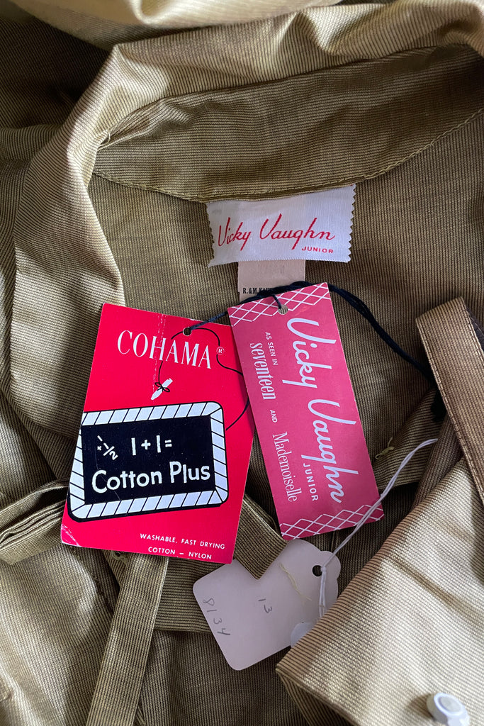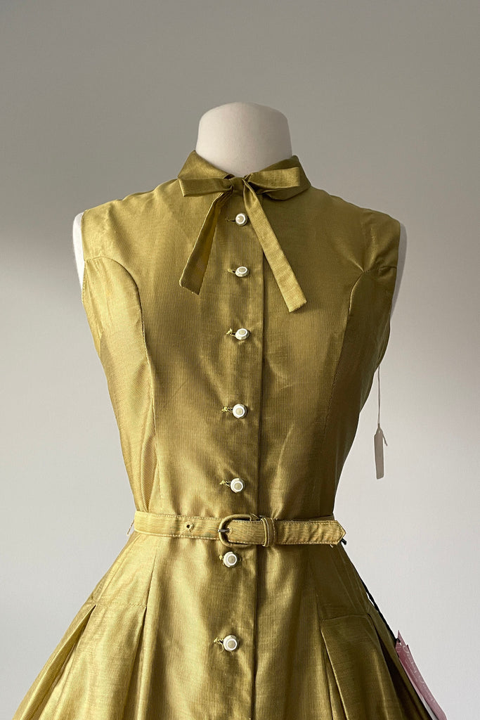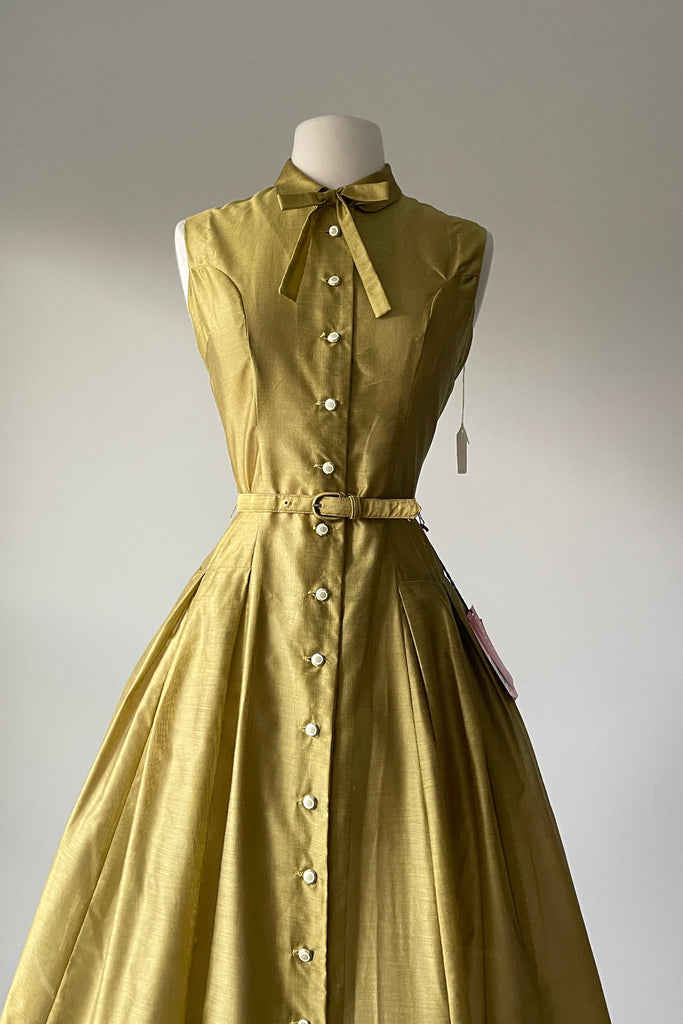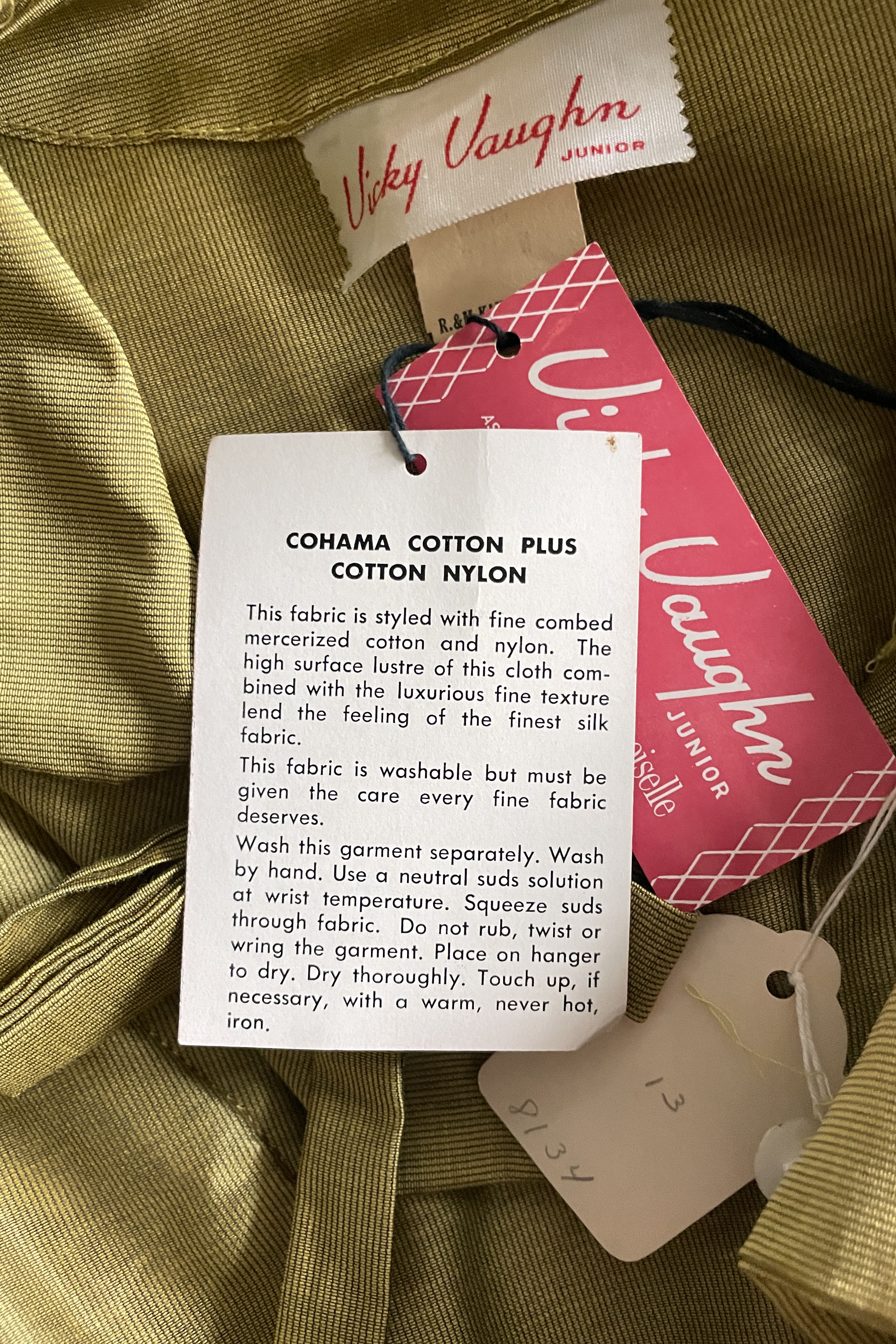 Vintage 1950s Electrum Green Dead Stock Dress by Vicky Vaughn NWT | SMALL