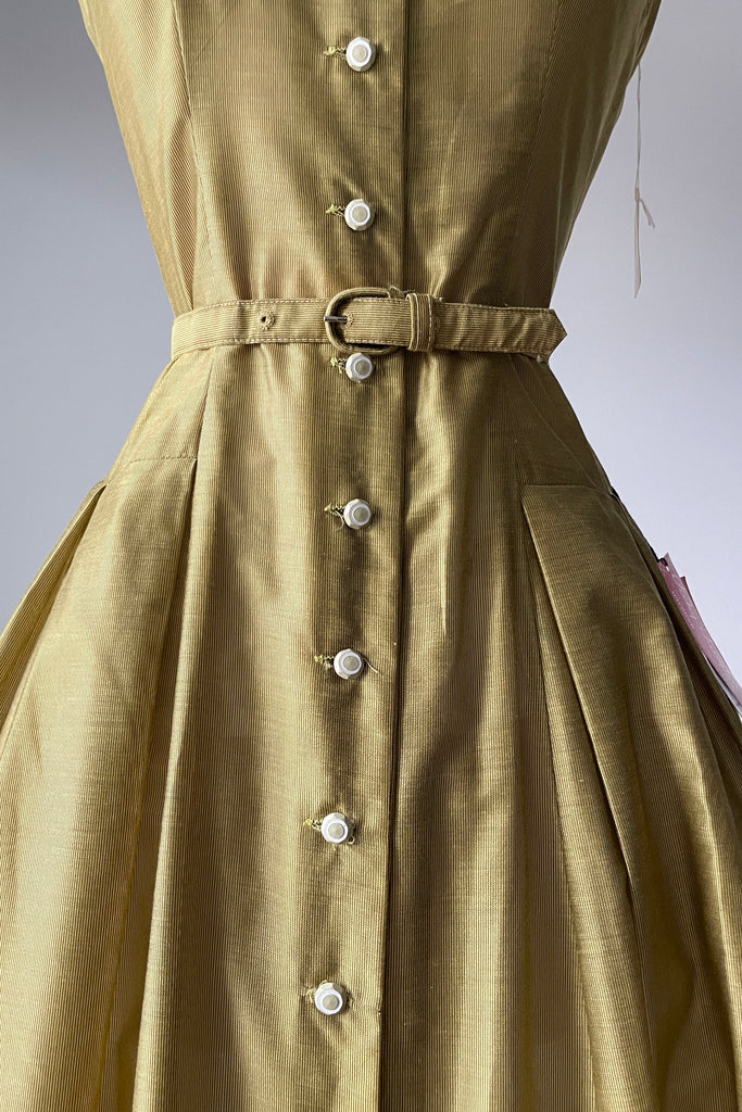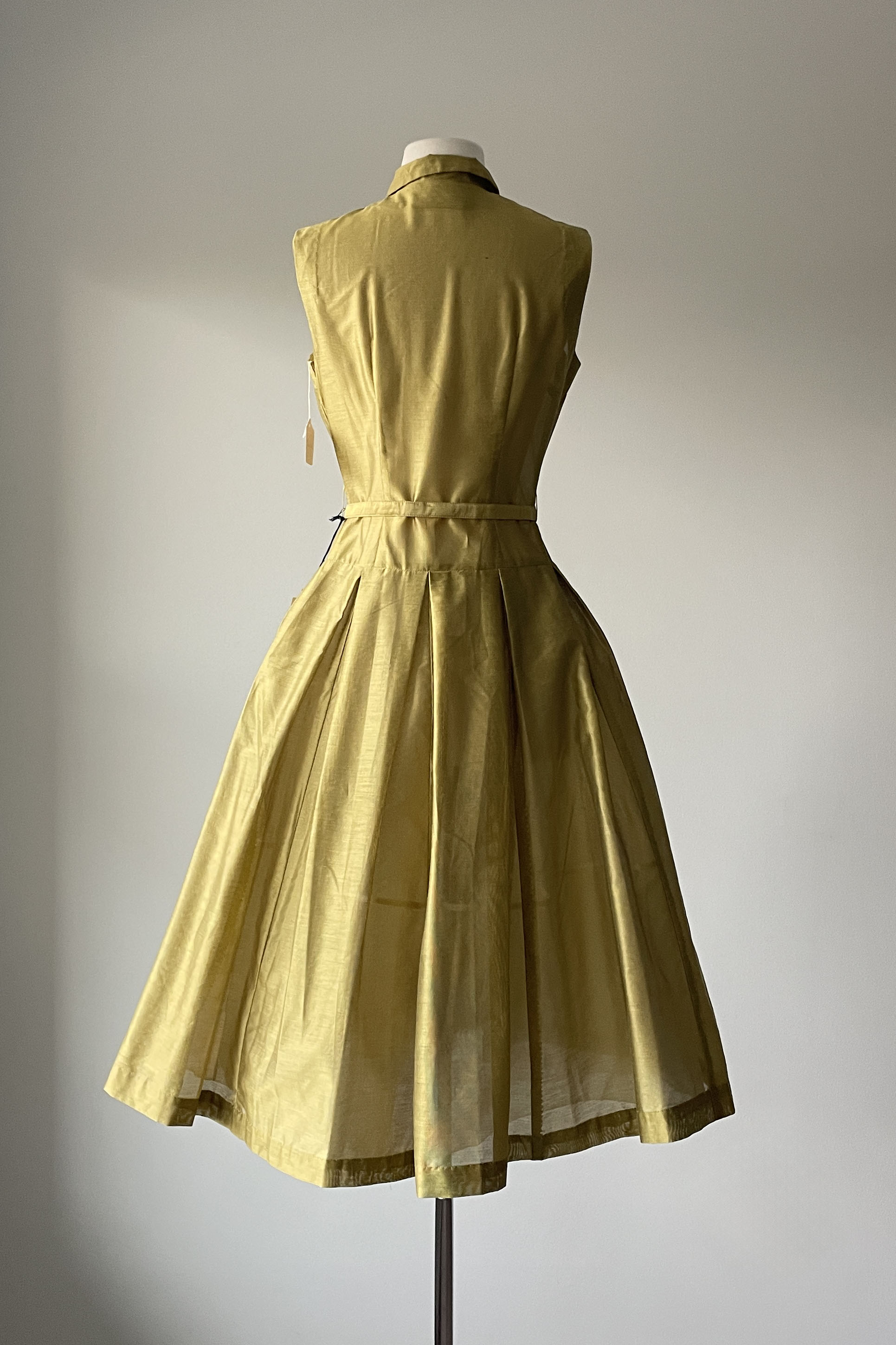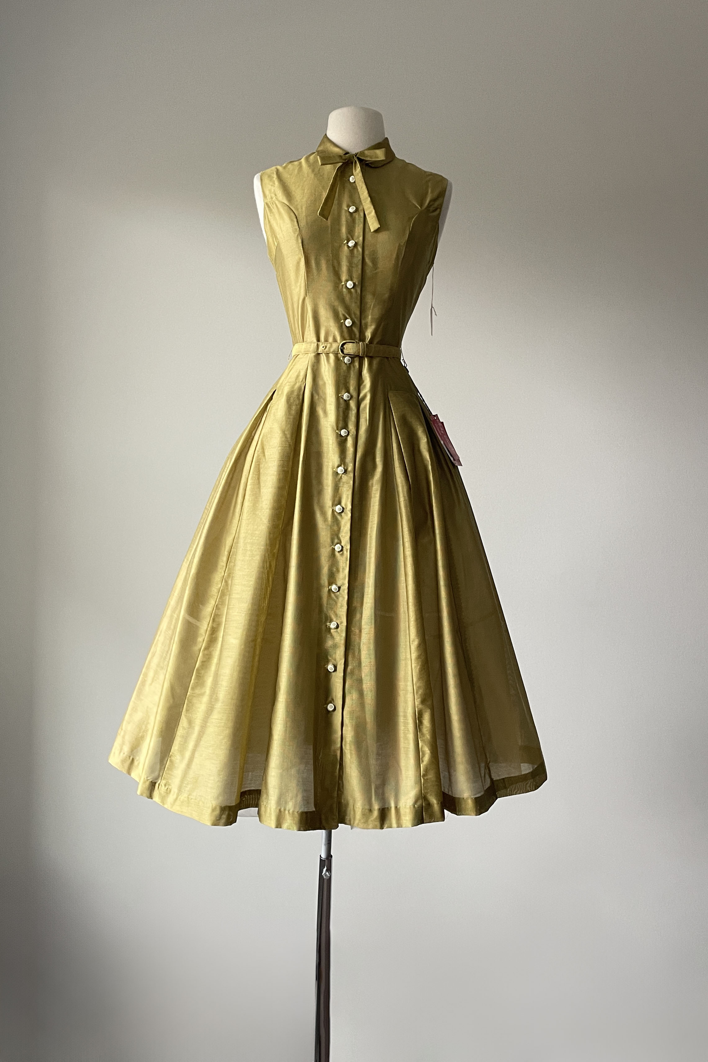 Vintage 1950s Electrum Green Dead Stock Dress by Vicky Vaughn NWT | SMALL