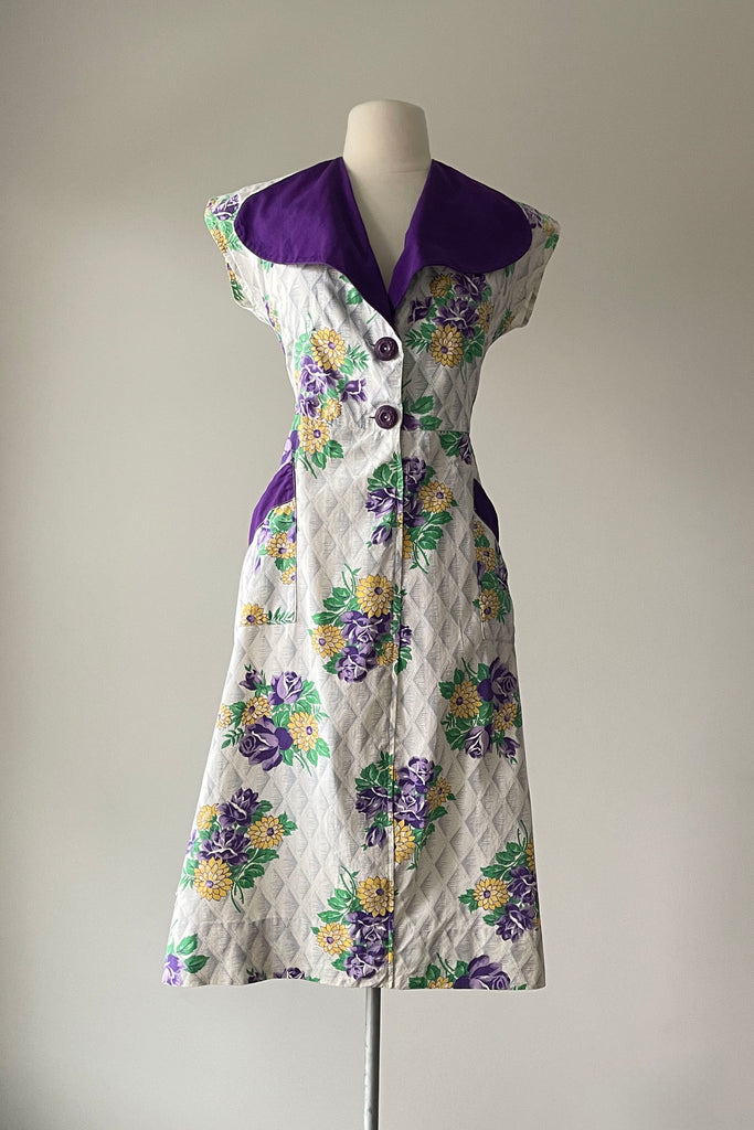 Vintage 1930s Cotton Floral Print Dress | SMALL