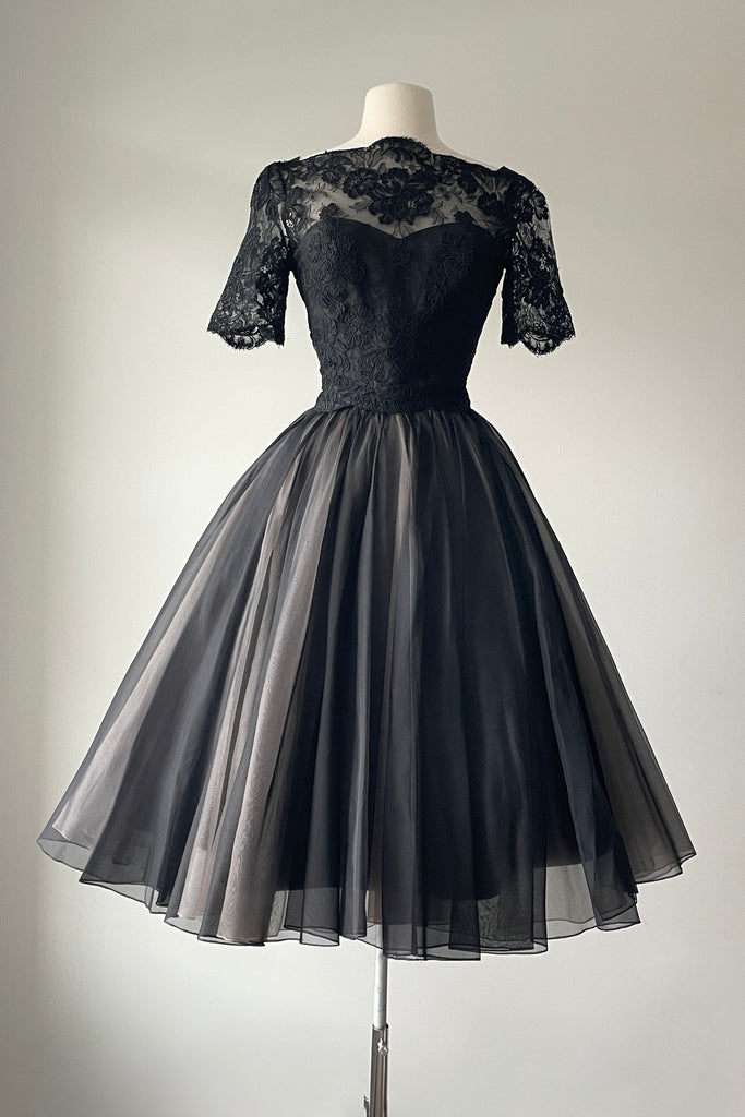 Vintage 1950s Black Soutache Lace Silk Organza Dress by Rose Frank | SMALL