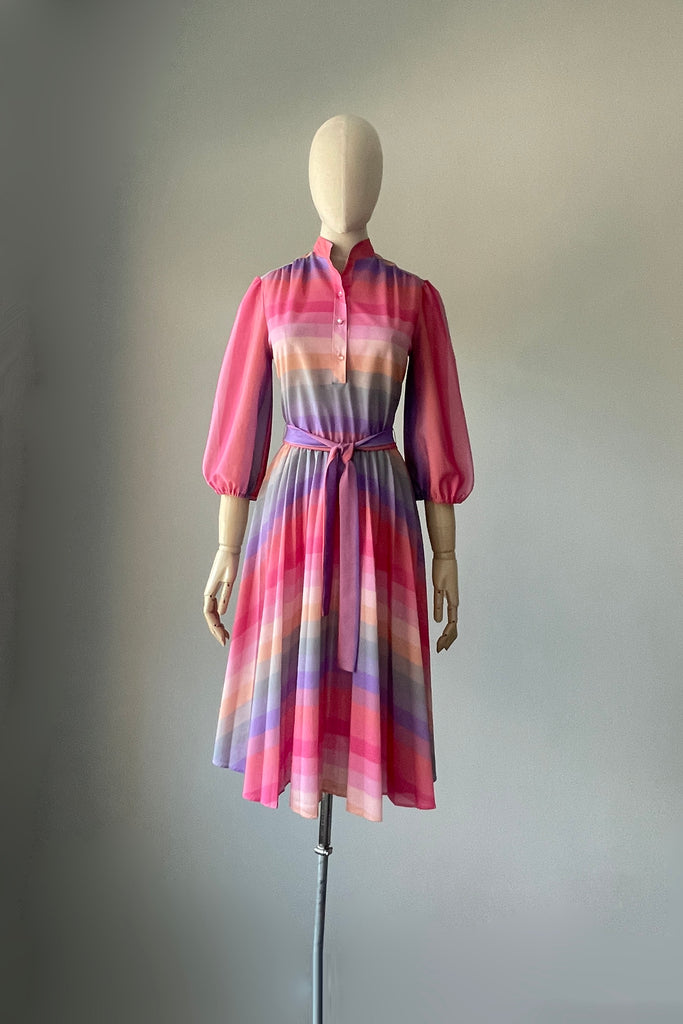 1980s Pastel Rainbow Stripe Dress by Rosemary Long | SMALL