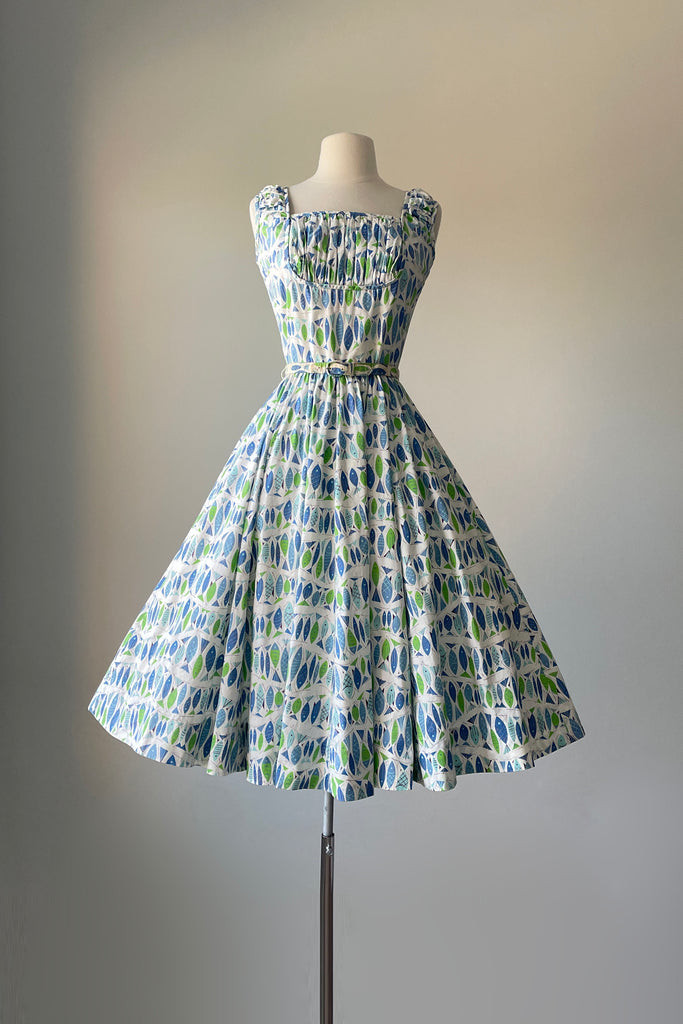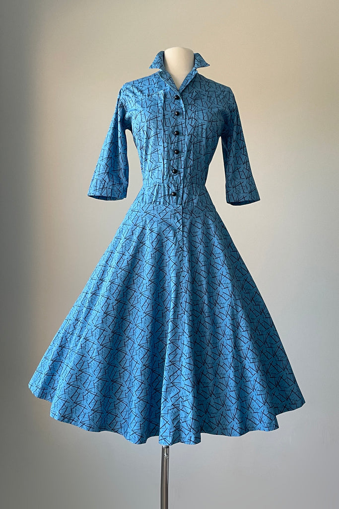 1950s Horrockses Matchstick Print Dress | MEDIUM