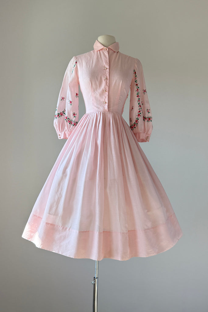 Vintage 1950s Pink Floral Cotton Dress by Sir Rob | MEDIUM