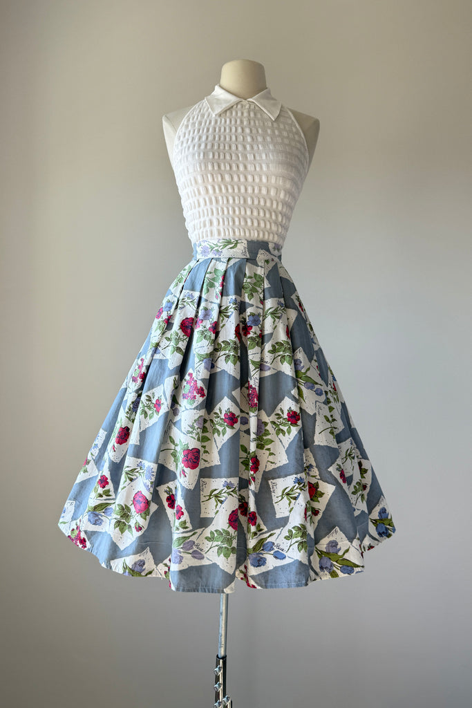 Vintage 1950s Flower Identification Cards Skirt | MEDIUM