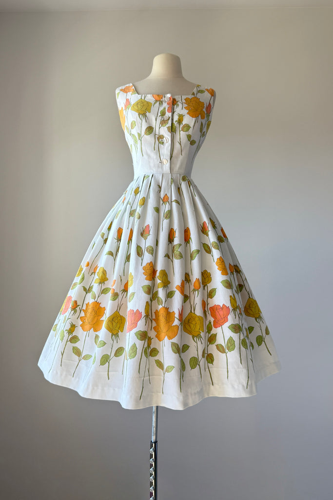 Vintage 1960s John Wolf Rose Print Cotton Pique Dress | MEDIUM