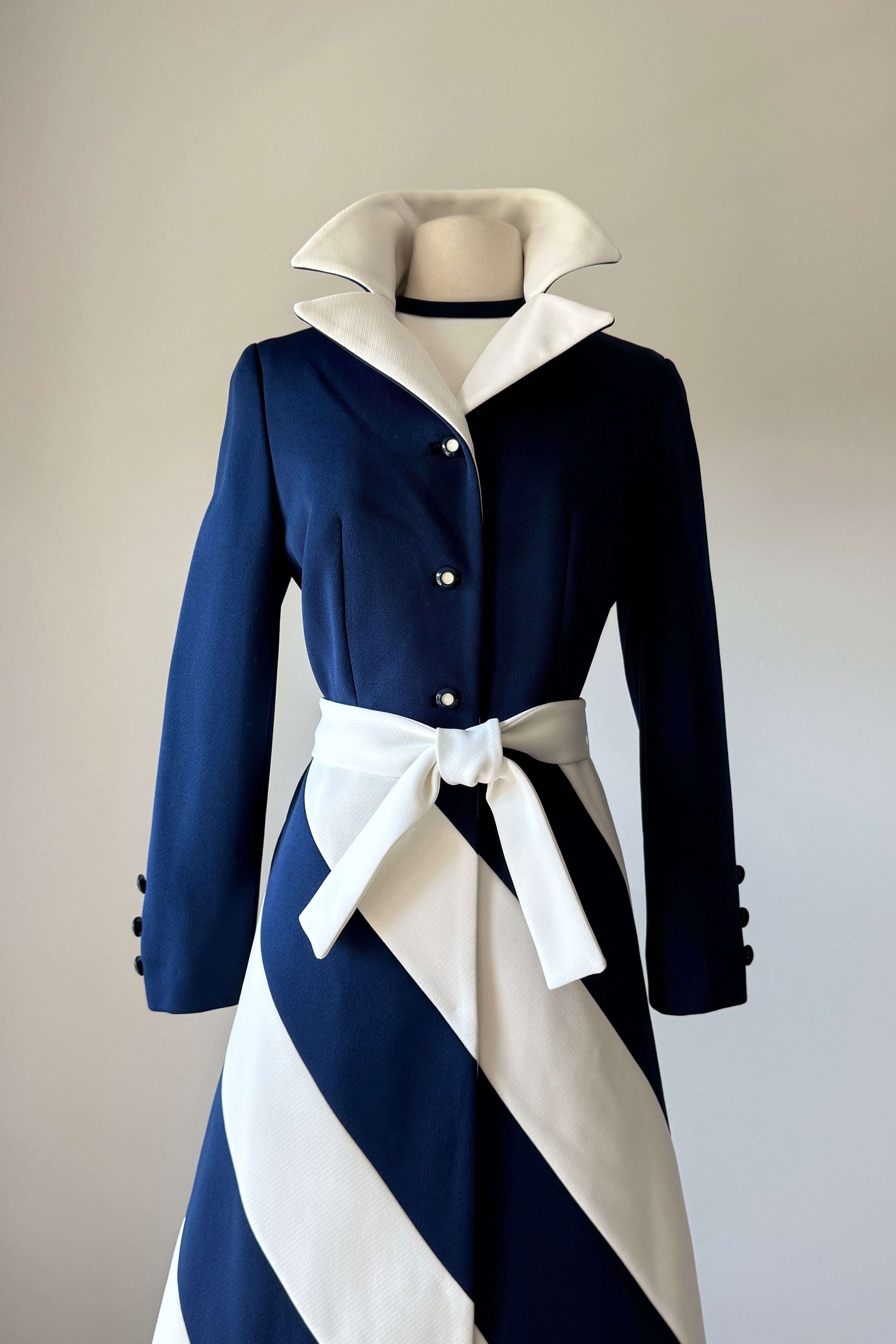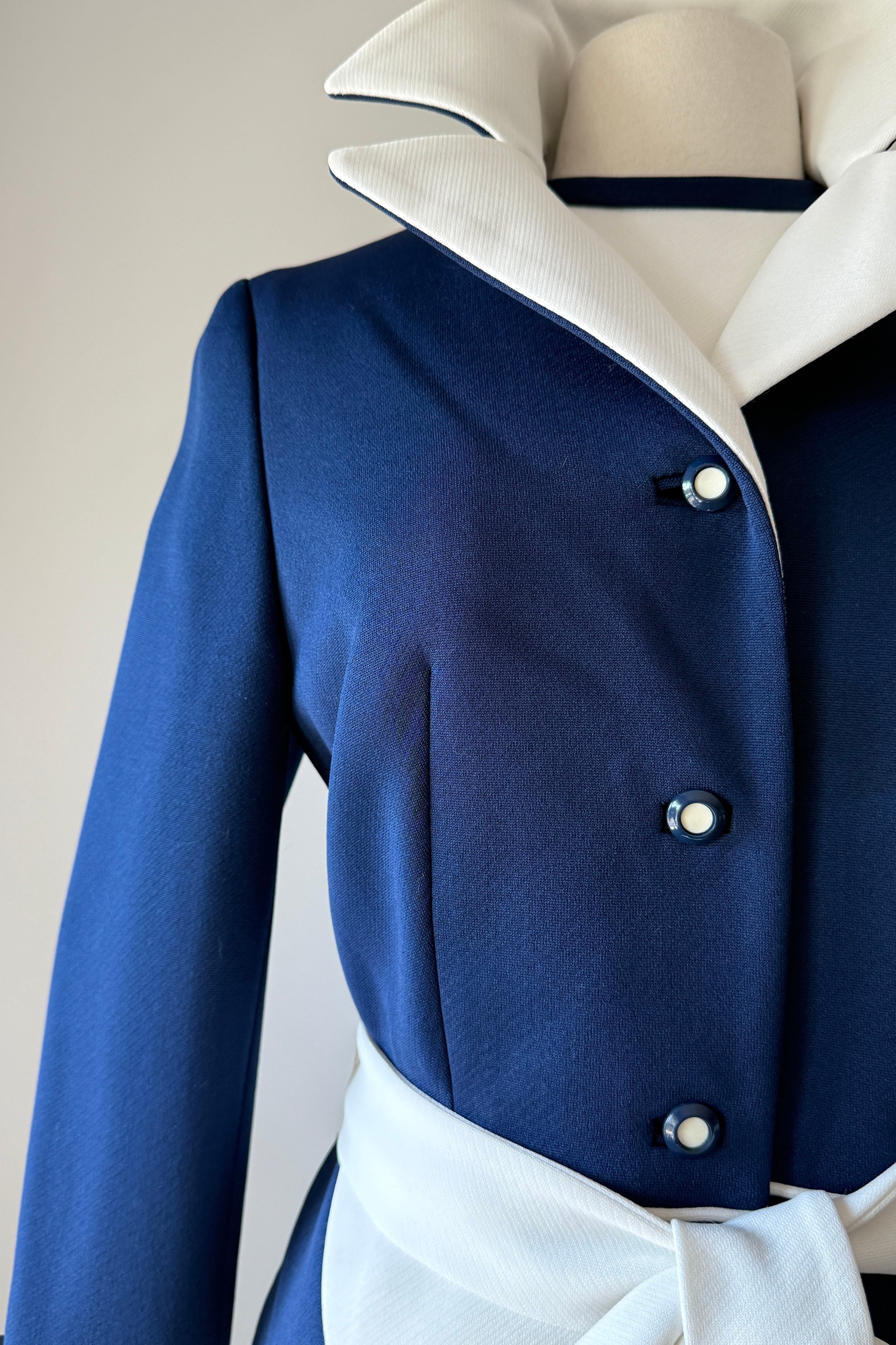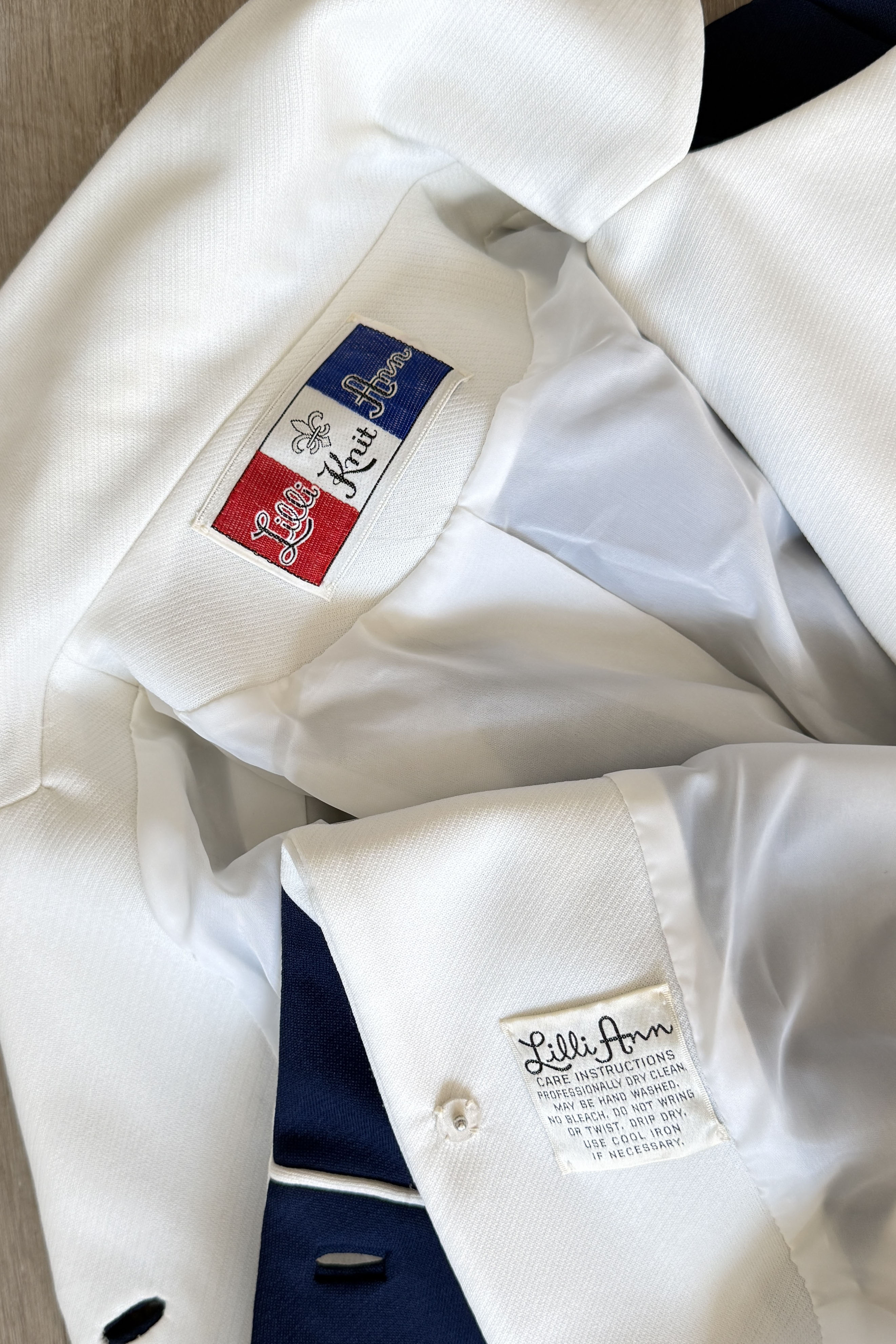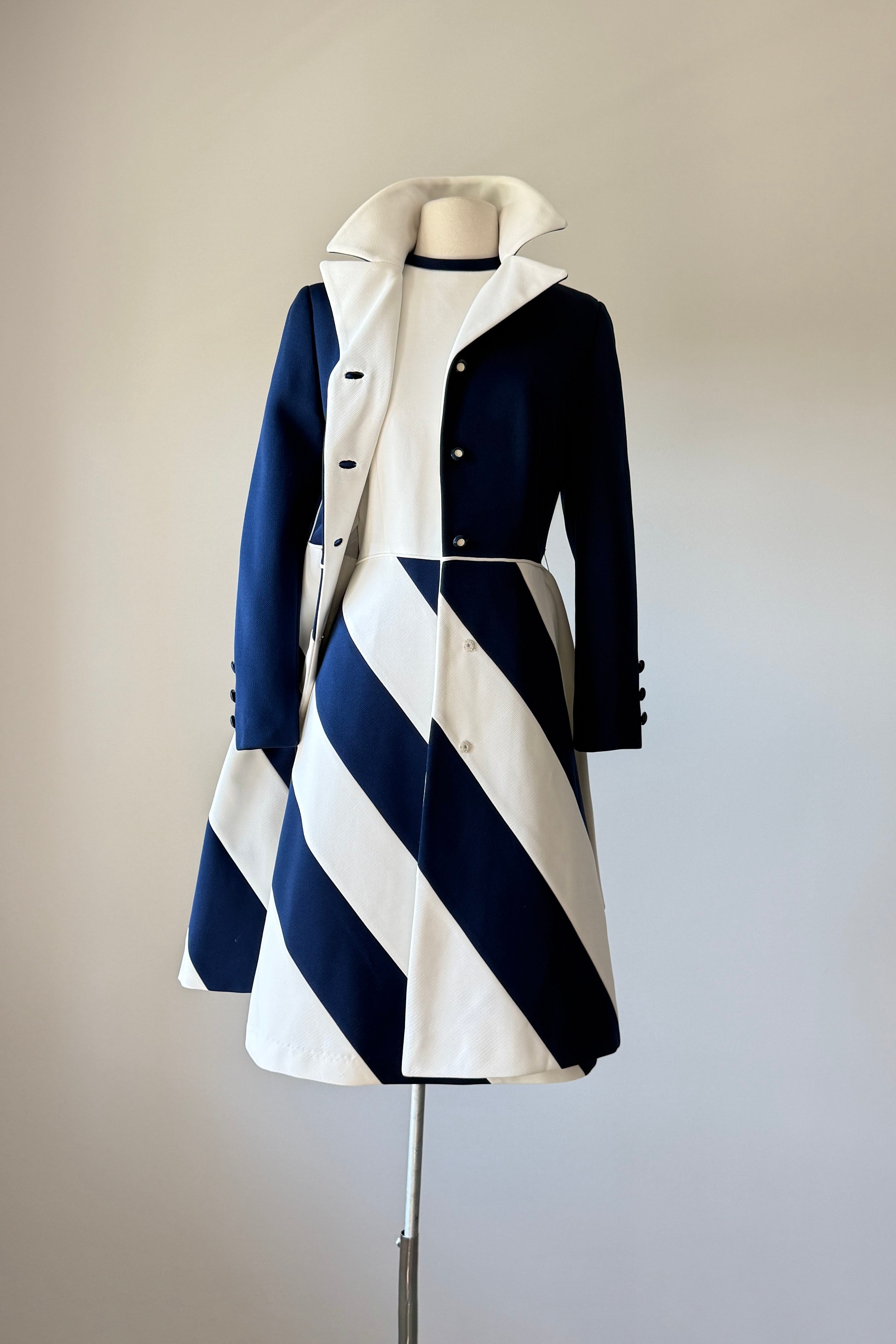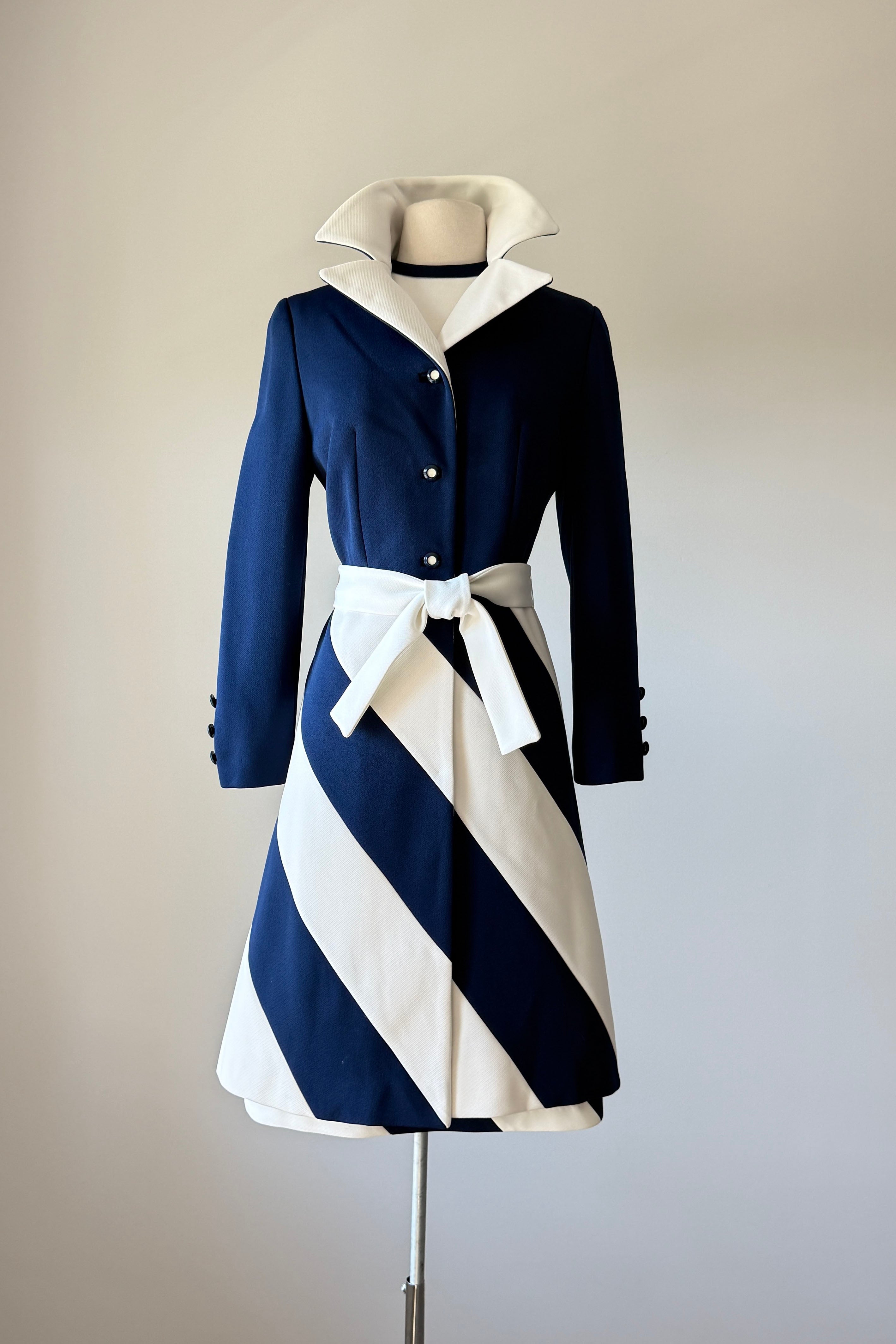 VINTAGE DRESS + JACKET Vintage 1960s set. Features blue and white diagonal stripe pattern, short sleeve dress with back zipper, jacket has removable belt and button and snap closure. Poly. Both pieces lined in acetate. By Lilli Ann. Excellent condition. Fits like M/L.Dress:Length 42Bodice 17Bust 40-42Waist 31-32Hip 42-44Jacket:Length 41Shoulder 16Sleeve 23.5Bust 38-40Waist 32 As with all vintage, please expect wear consistent with age. All sales are final. No order cancellations.0985 | 2615