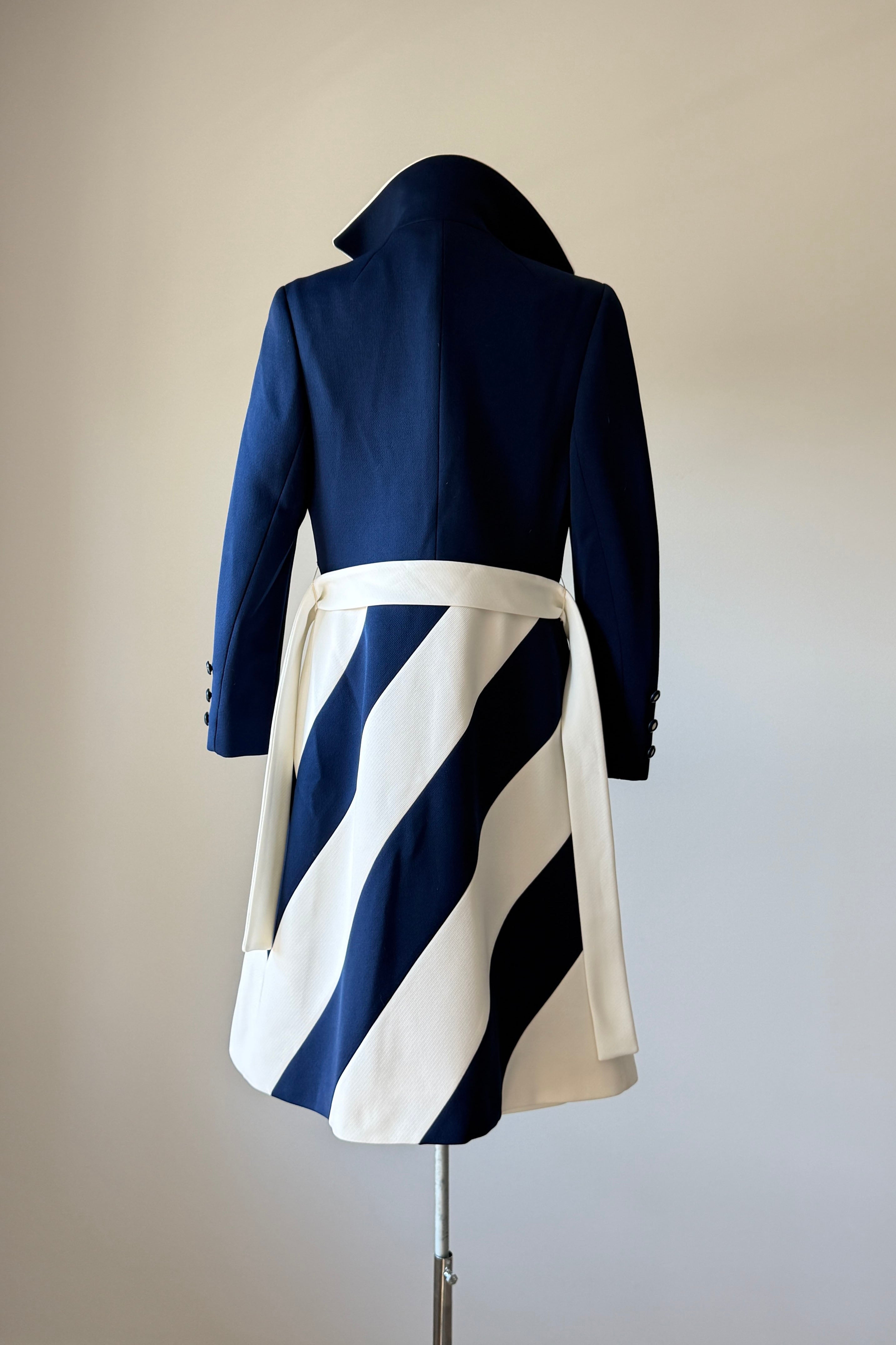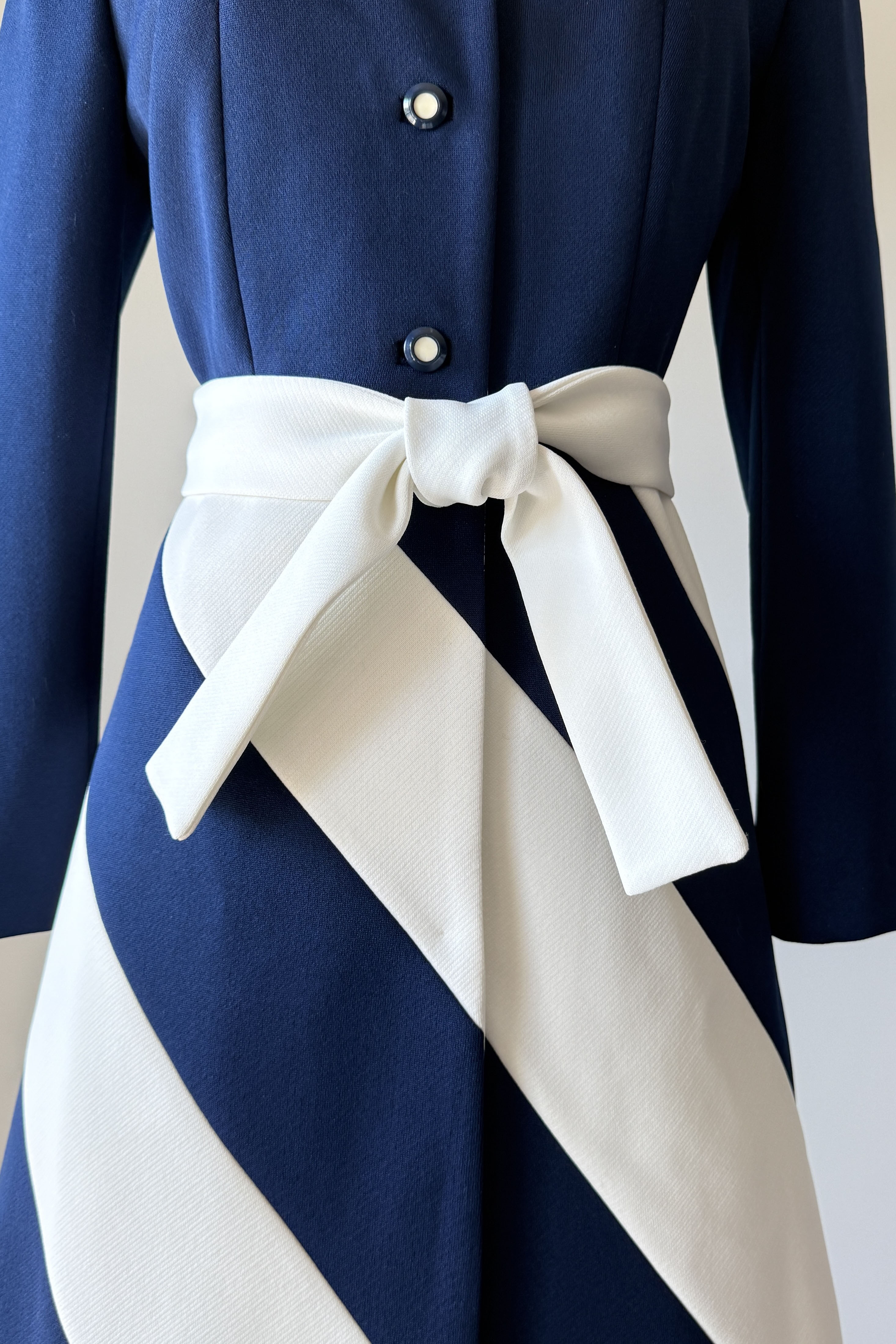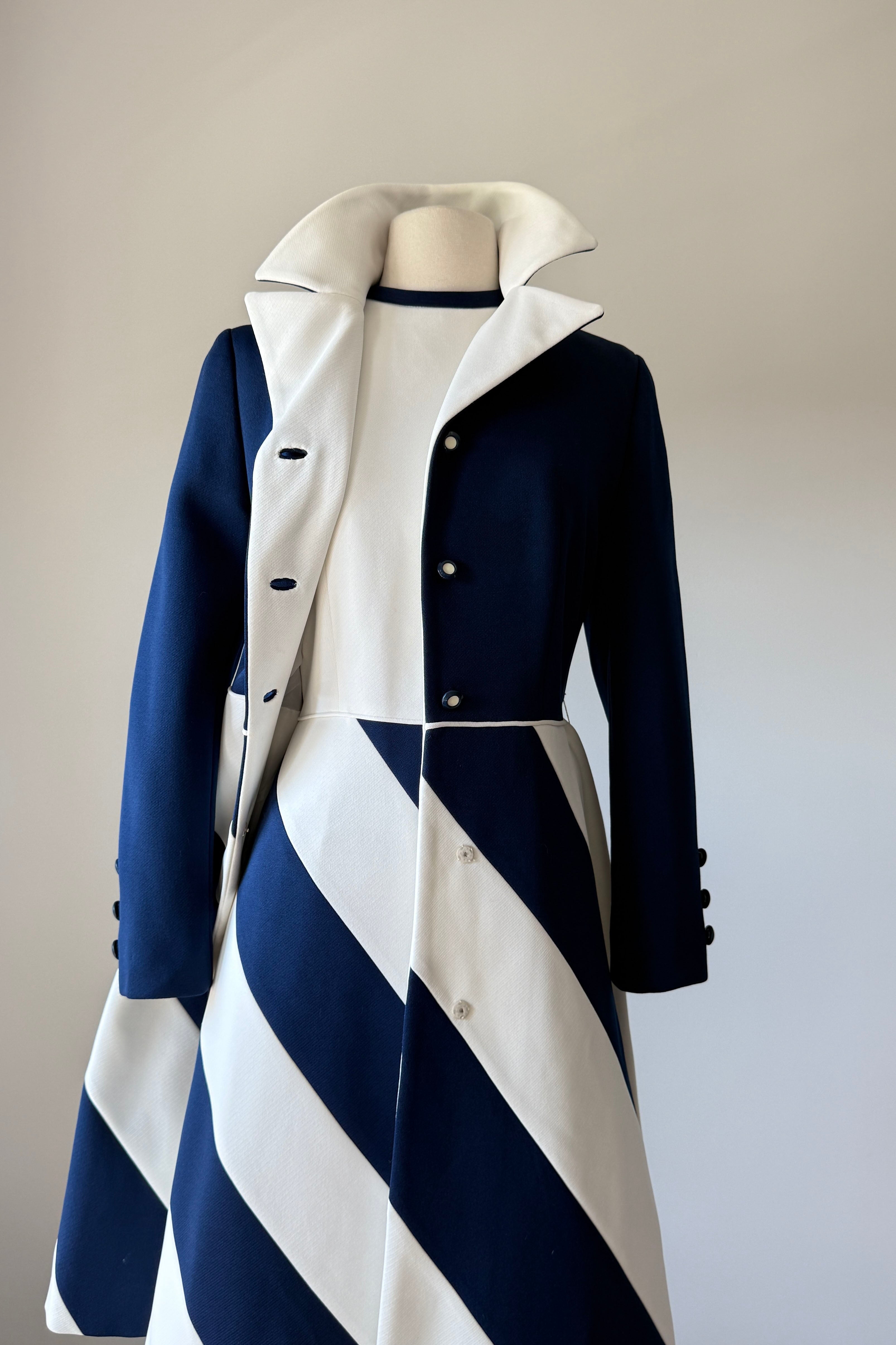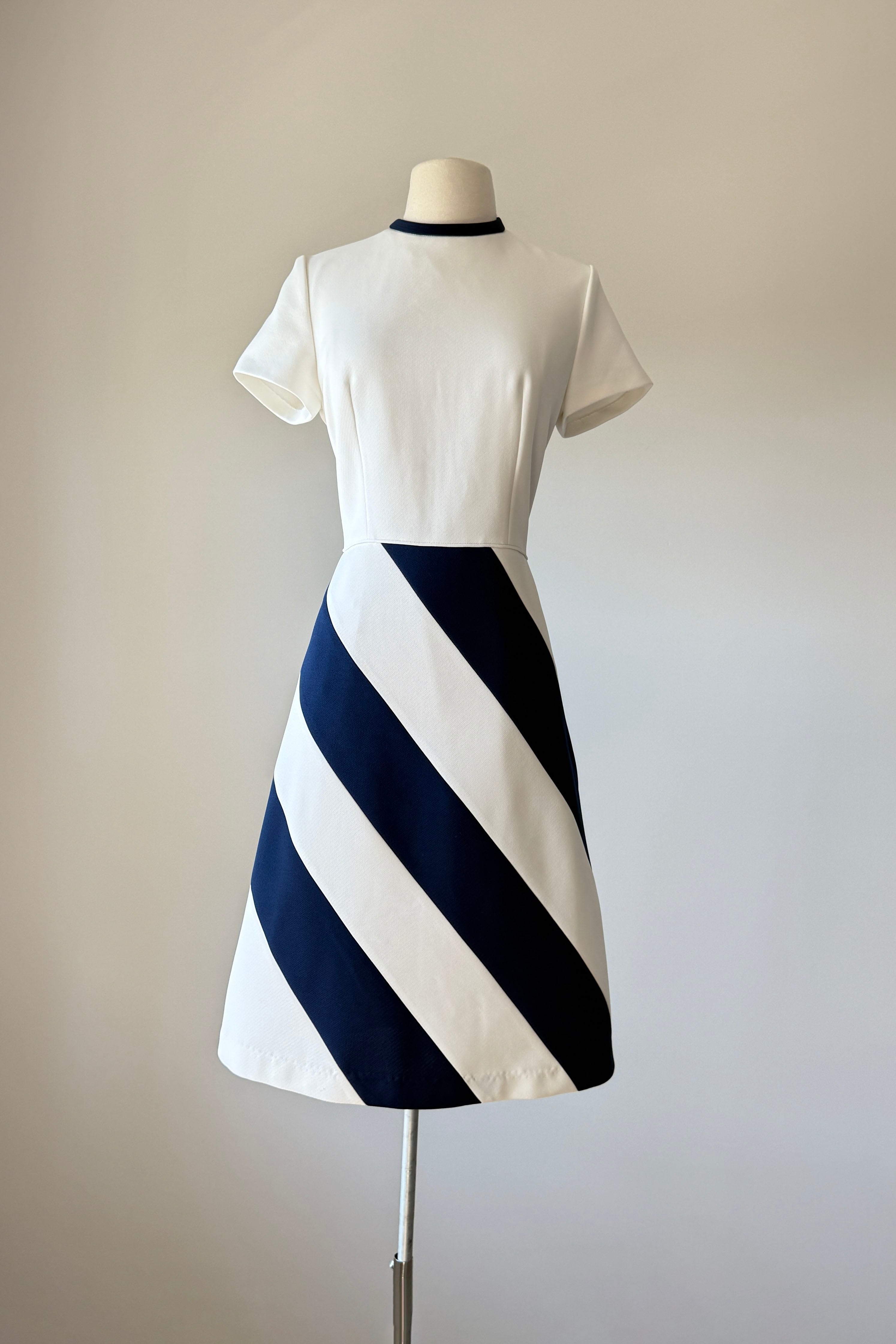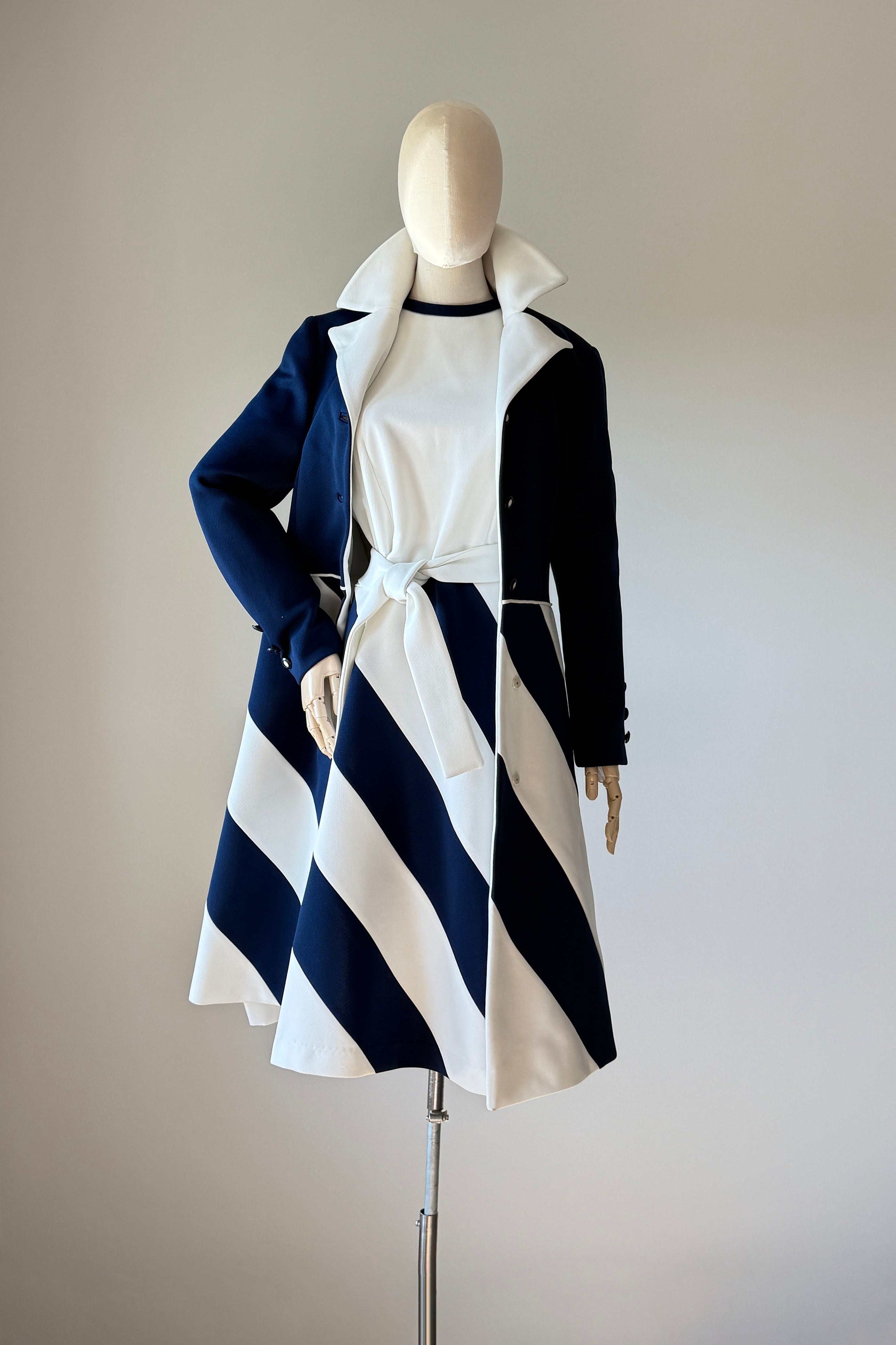 VINTAGE DRESS + JACKET Vintage 1960s set. Features blue and white diagonal stripe pattern, short sleeve dress with back zipper, jacket has removable belt and button and snap closure. Poly. Both pieces lined in acetate. By Lilli Ann. Excellent condition. Fits like M/L.Dress:Length 42Bodice 17Bust 40-42Waist 31-32Hip 42-44Jacket:Length 41Shoulder 16Sleeve 23.5Bust 38-40Waist 32 As with all vintage, please expect wear consistent with age. All sales are final. No order cancellations.0985 | 2615