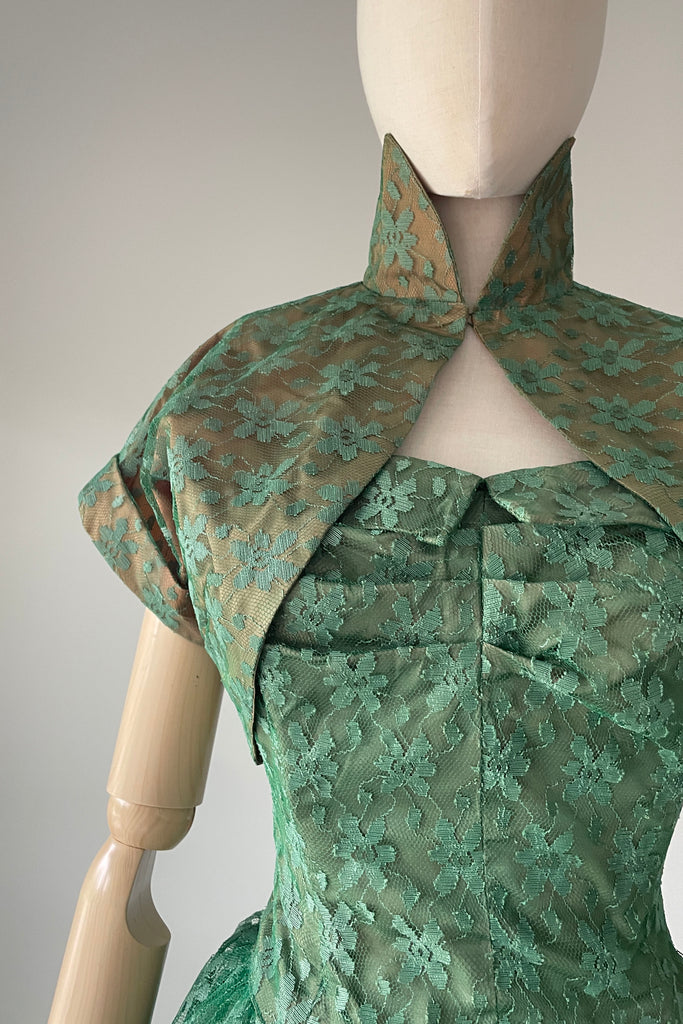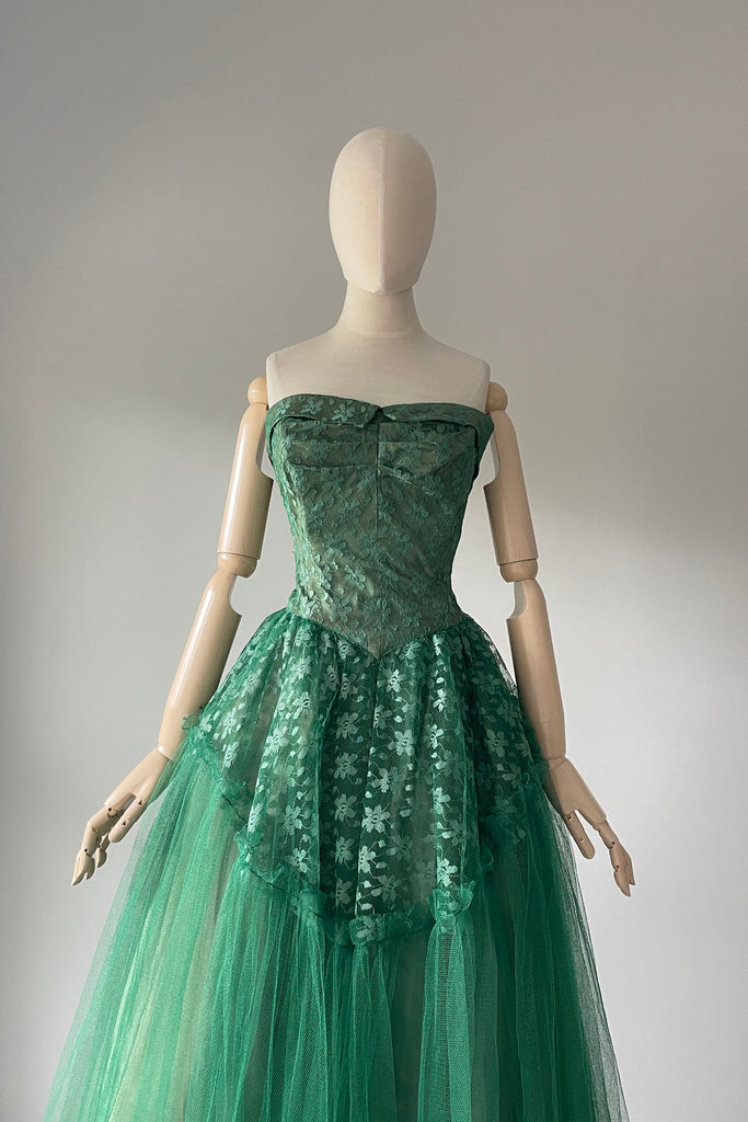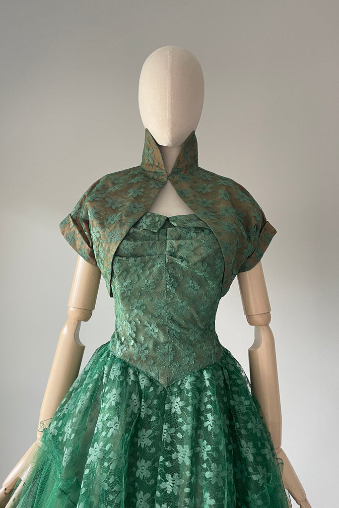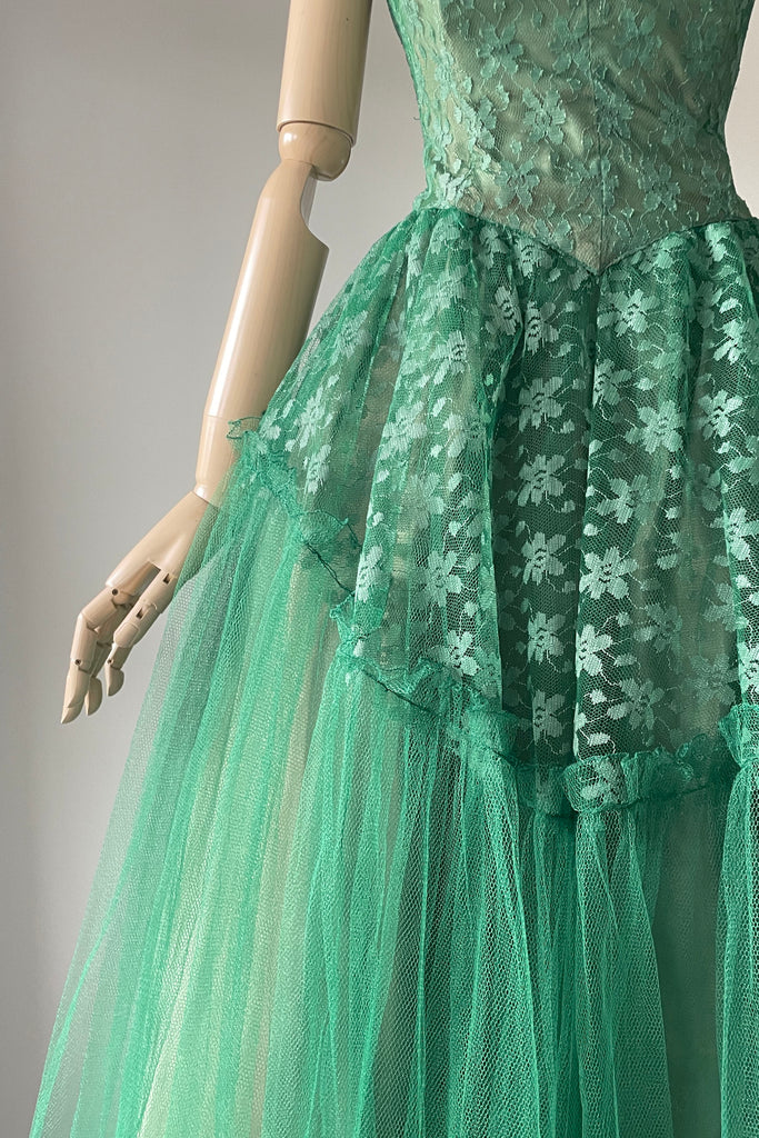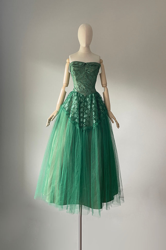1950s Green Tulle Strapless Dress + Bolero | SMALL