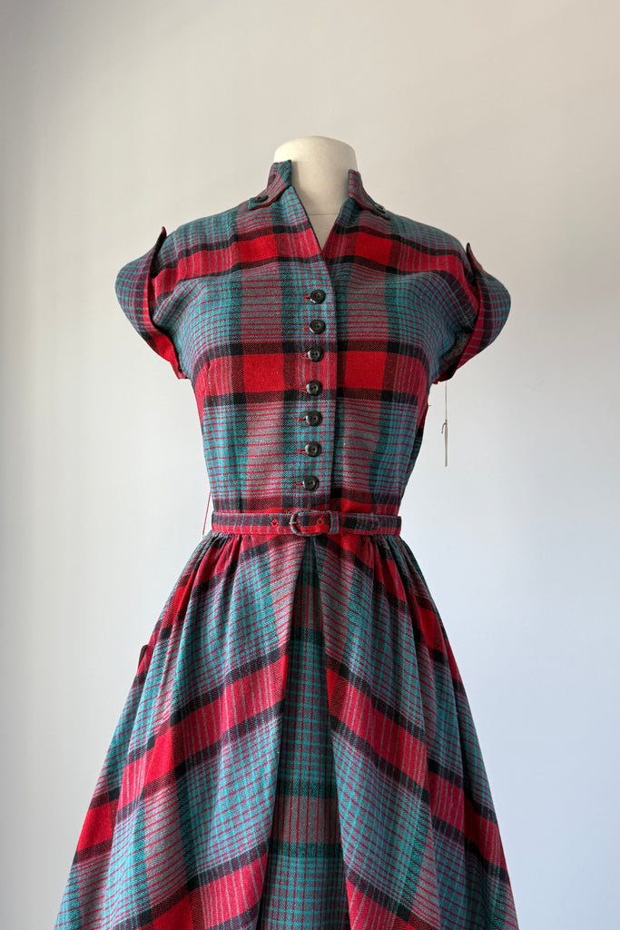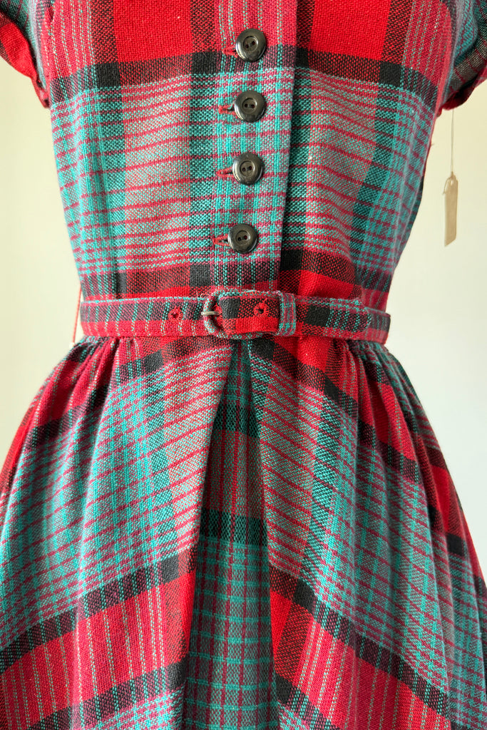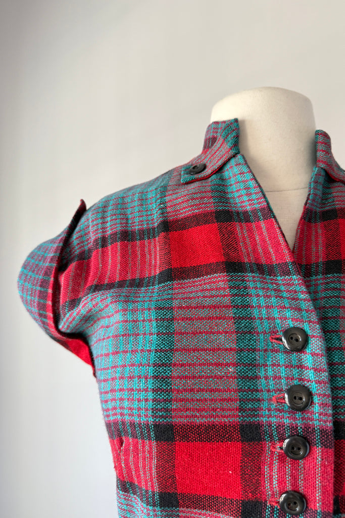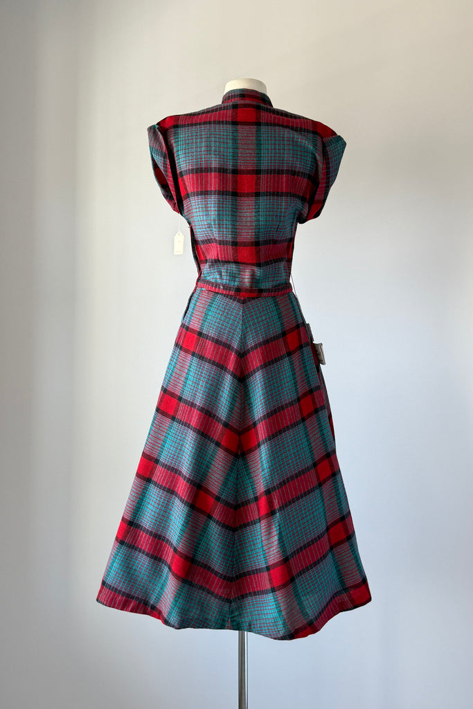 Vintage 1940s Red Teal Blue Plaid Wool Dress by Toni Todd Dead Stock | XS/S
