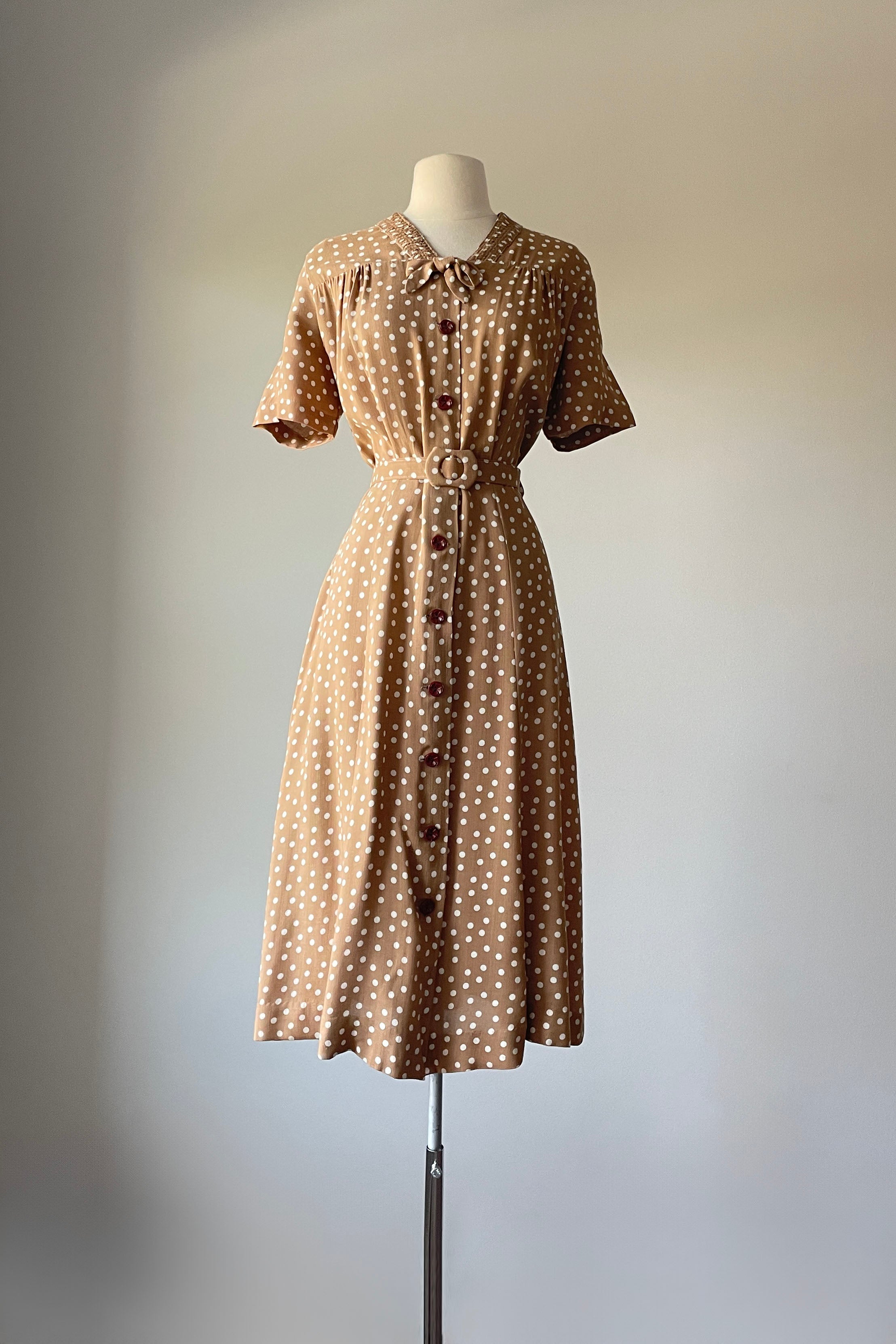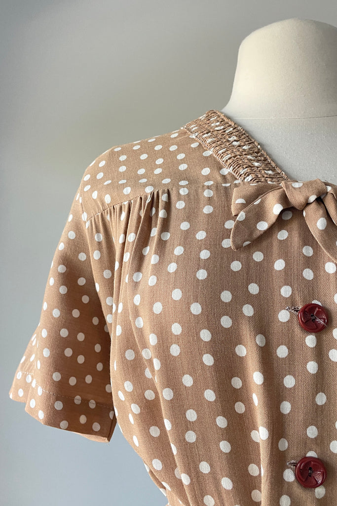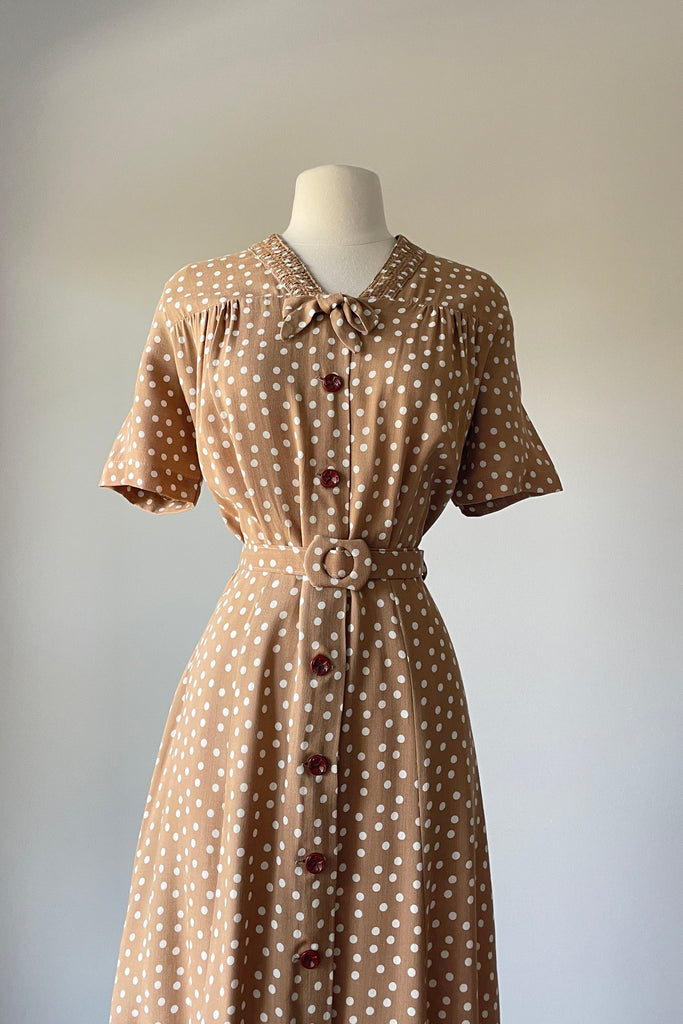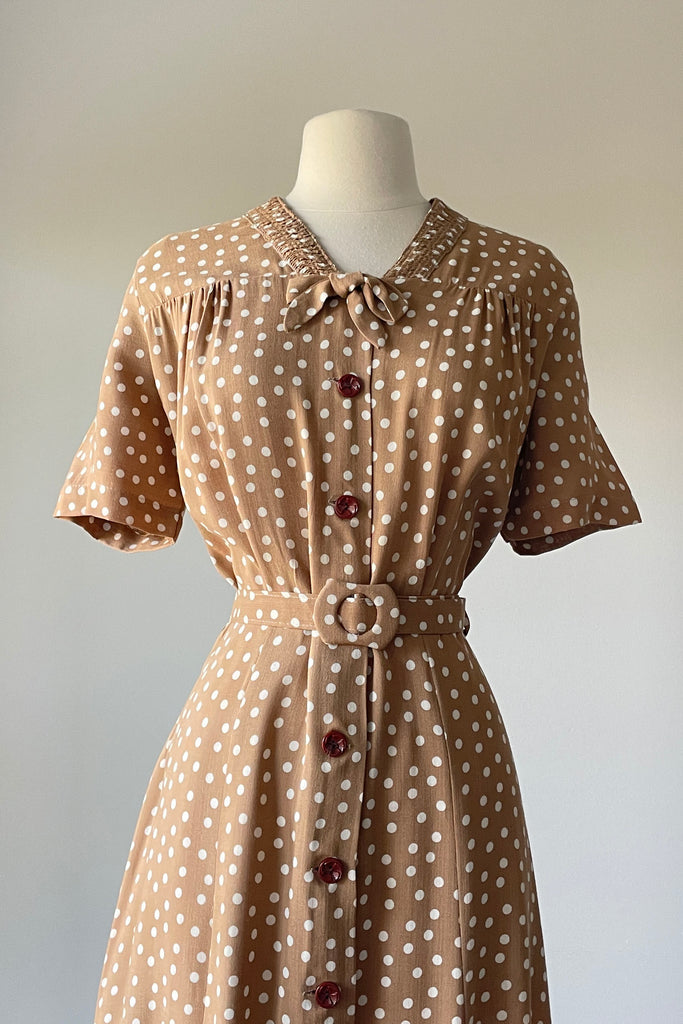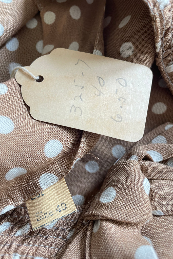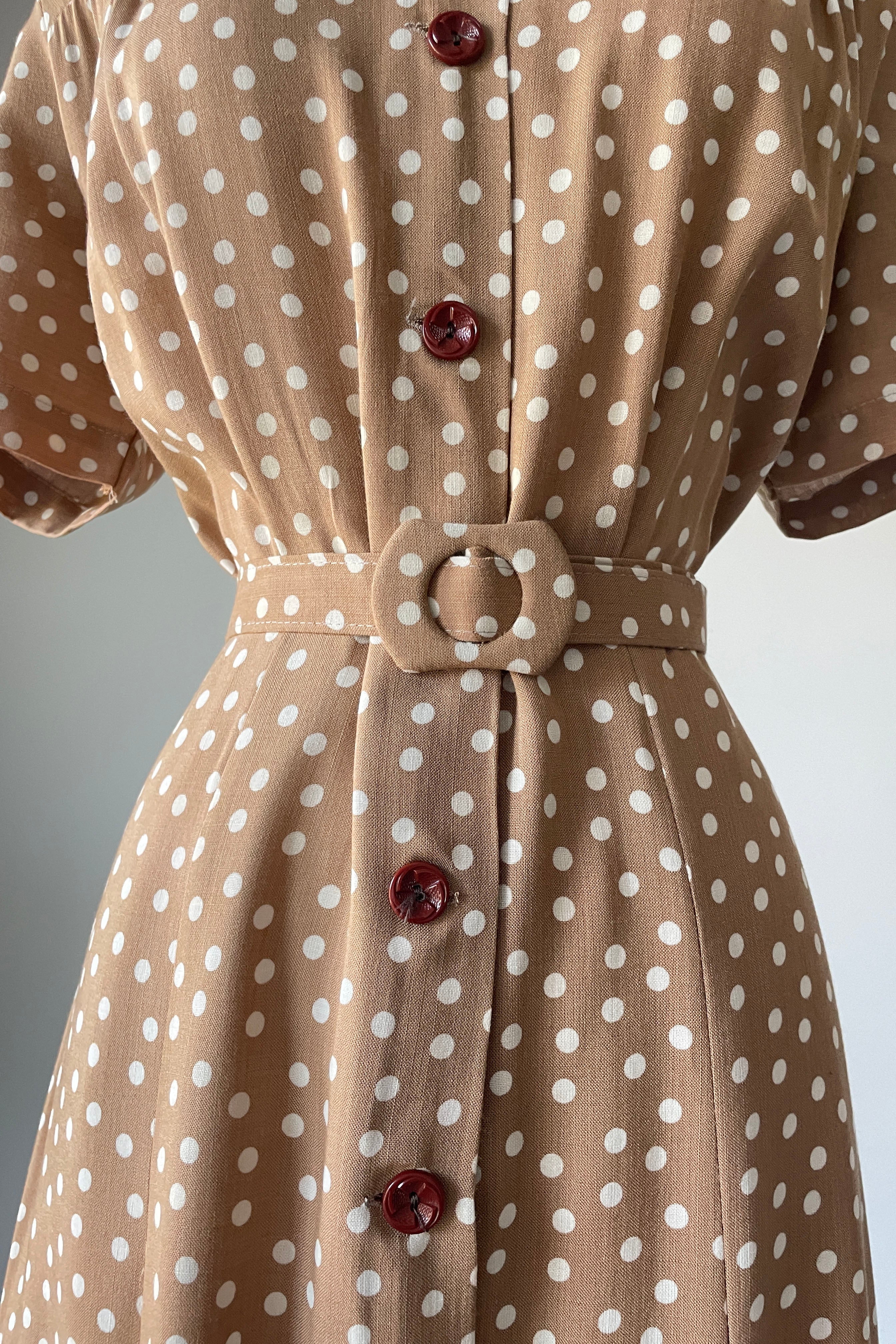Vintage 1940s Taupe White Polka Dot Dress NWT | 2XL
