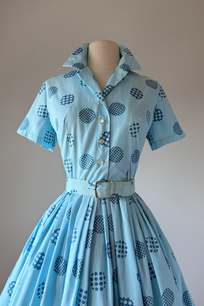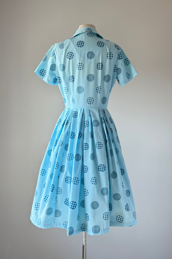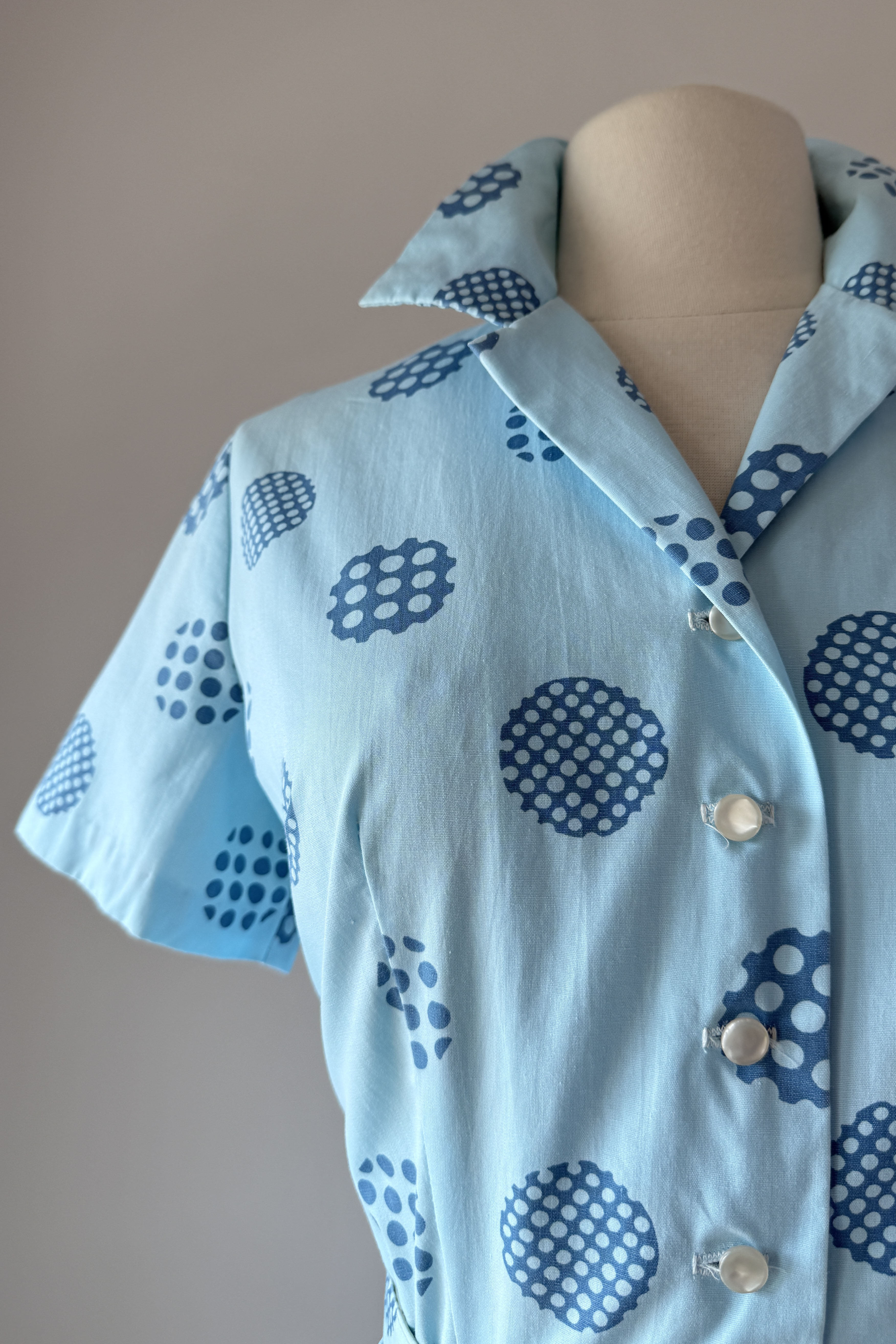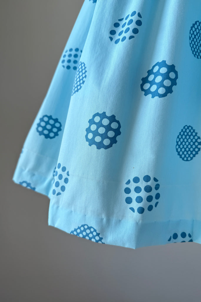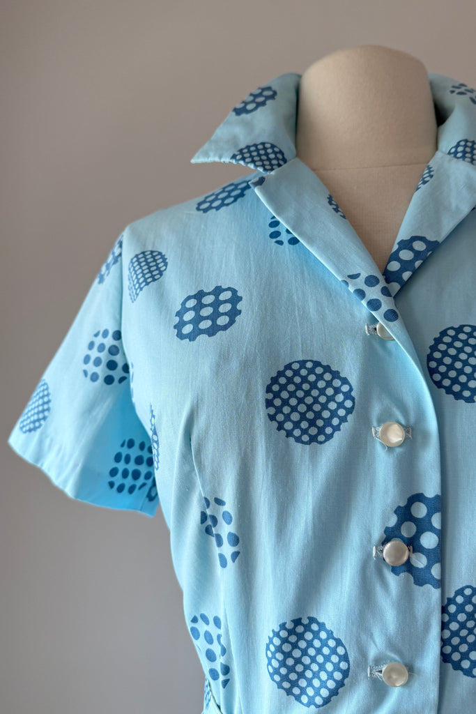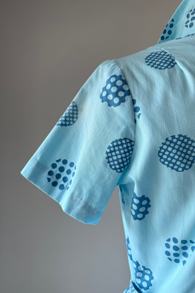 Vintage 1960s Blue Cotton Polka Dots Dress Cardigan by Harry Rosenfeld | MEDIUM