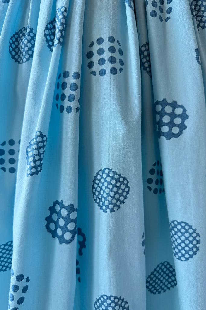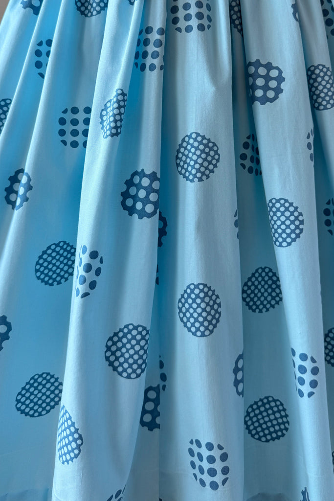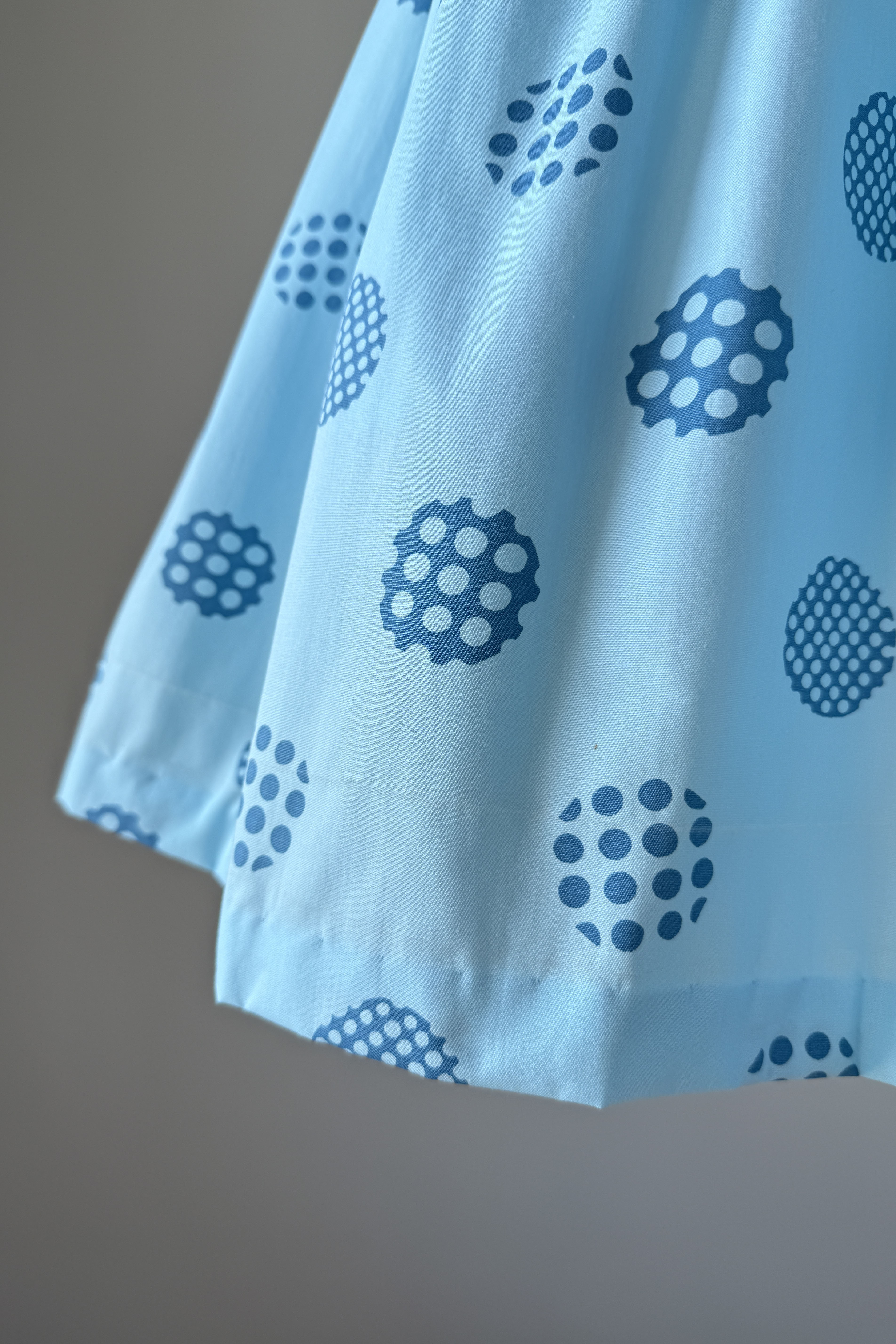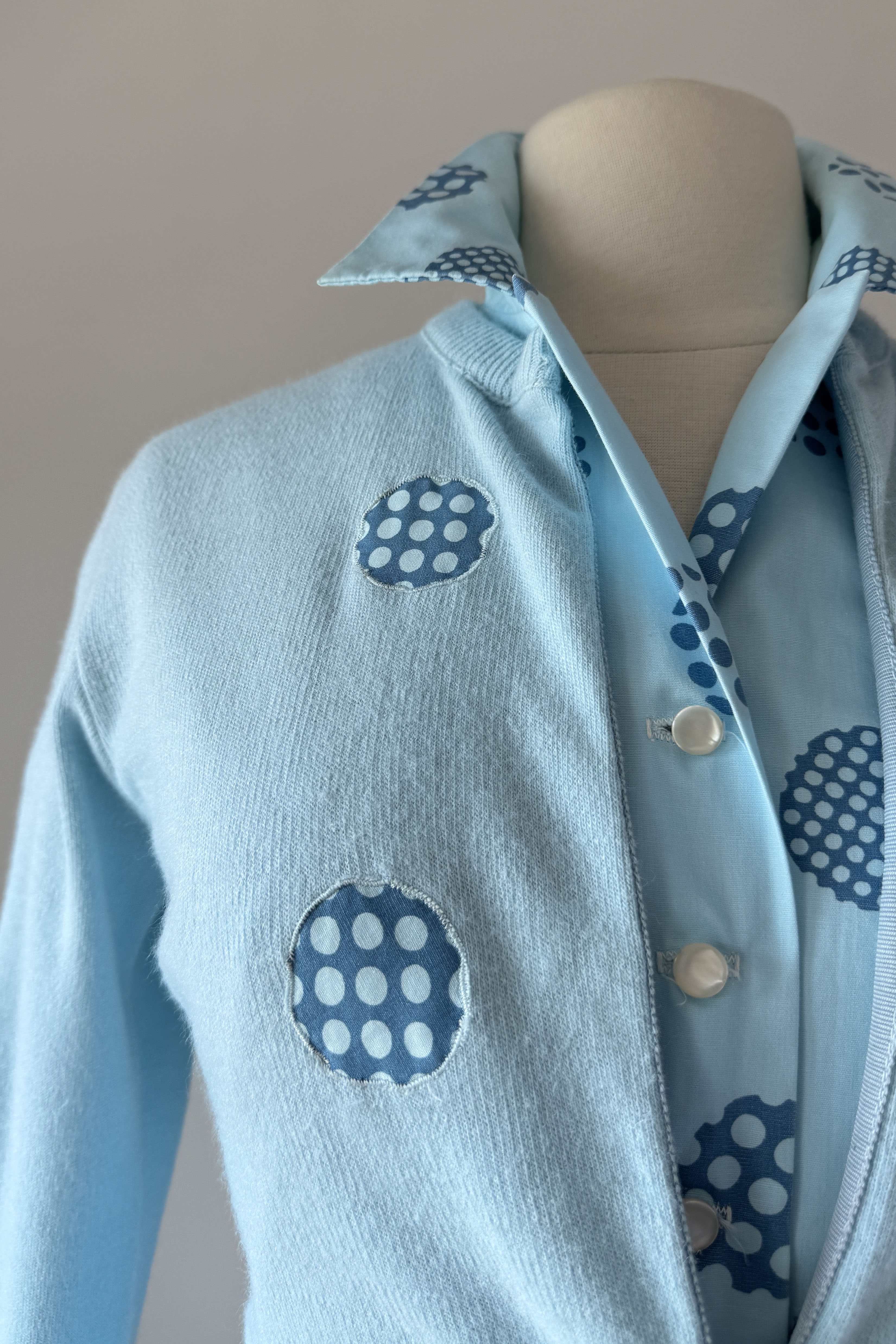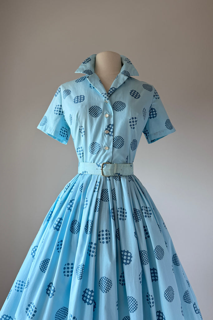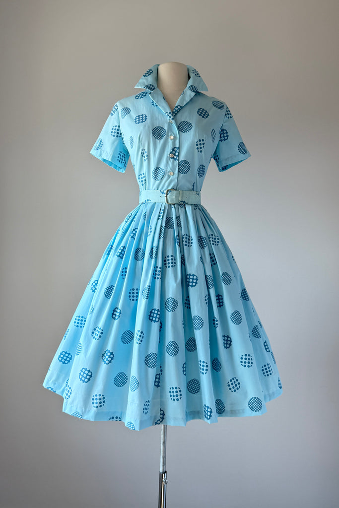 Vintage 1960s Blue Cotton Polka Dots Dress Cardigan by Harry Rosenfeld | MEDIUM