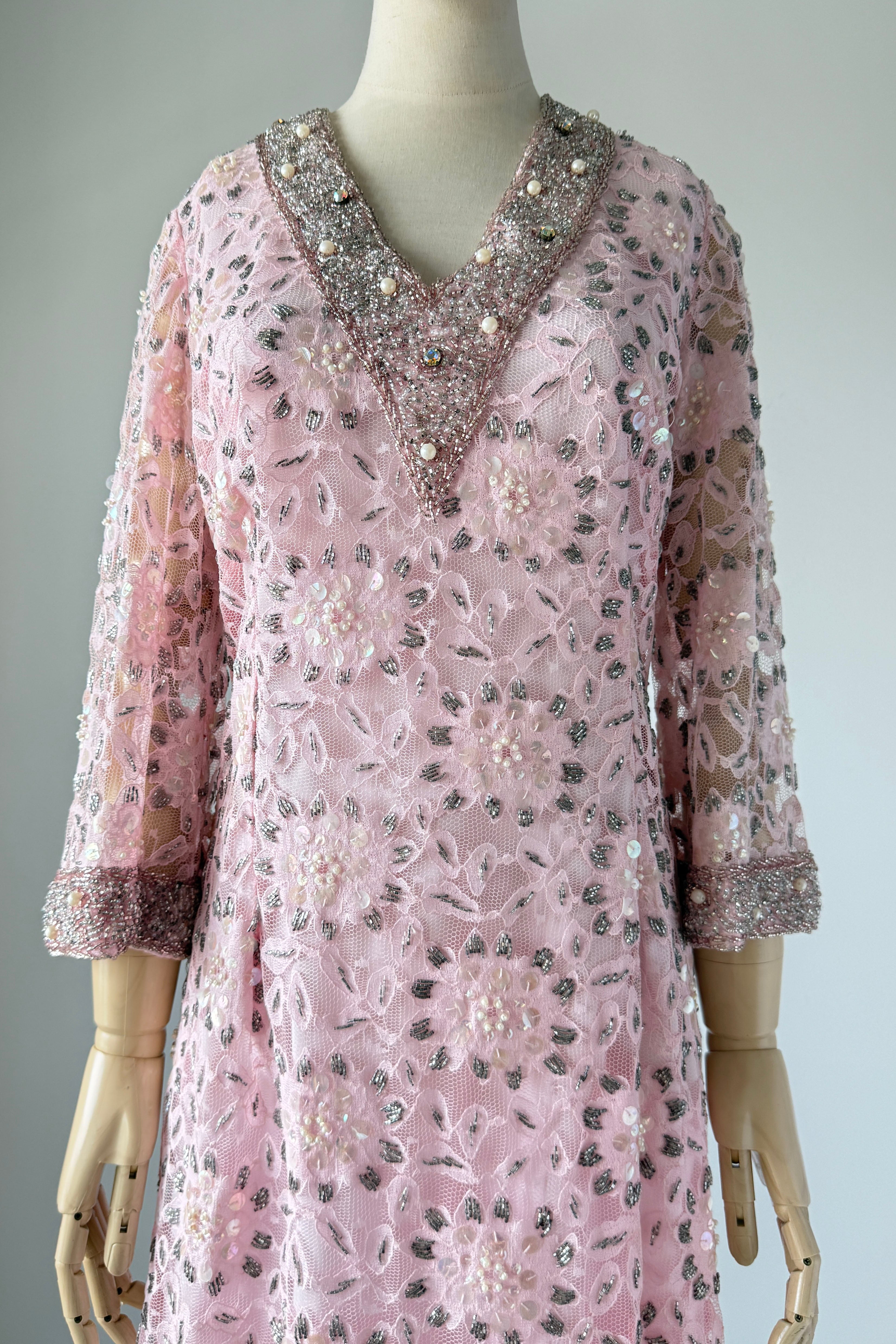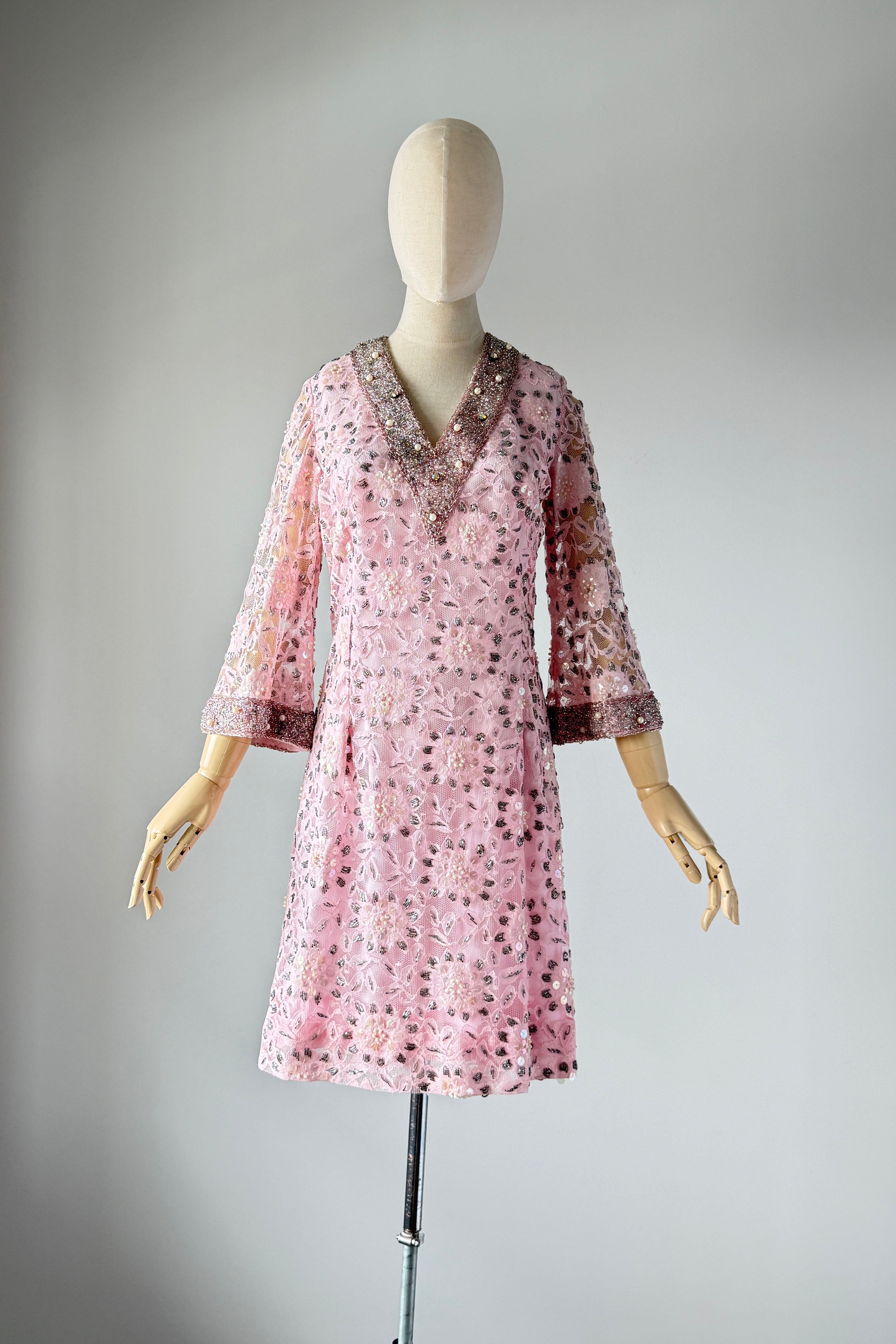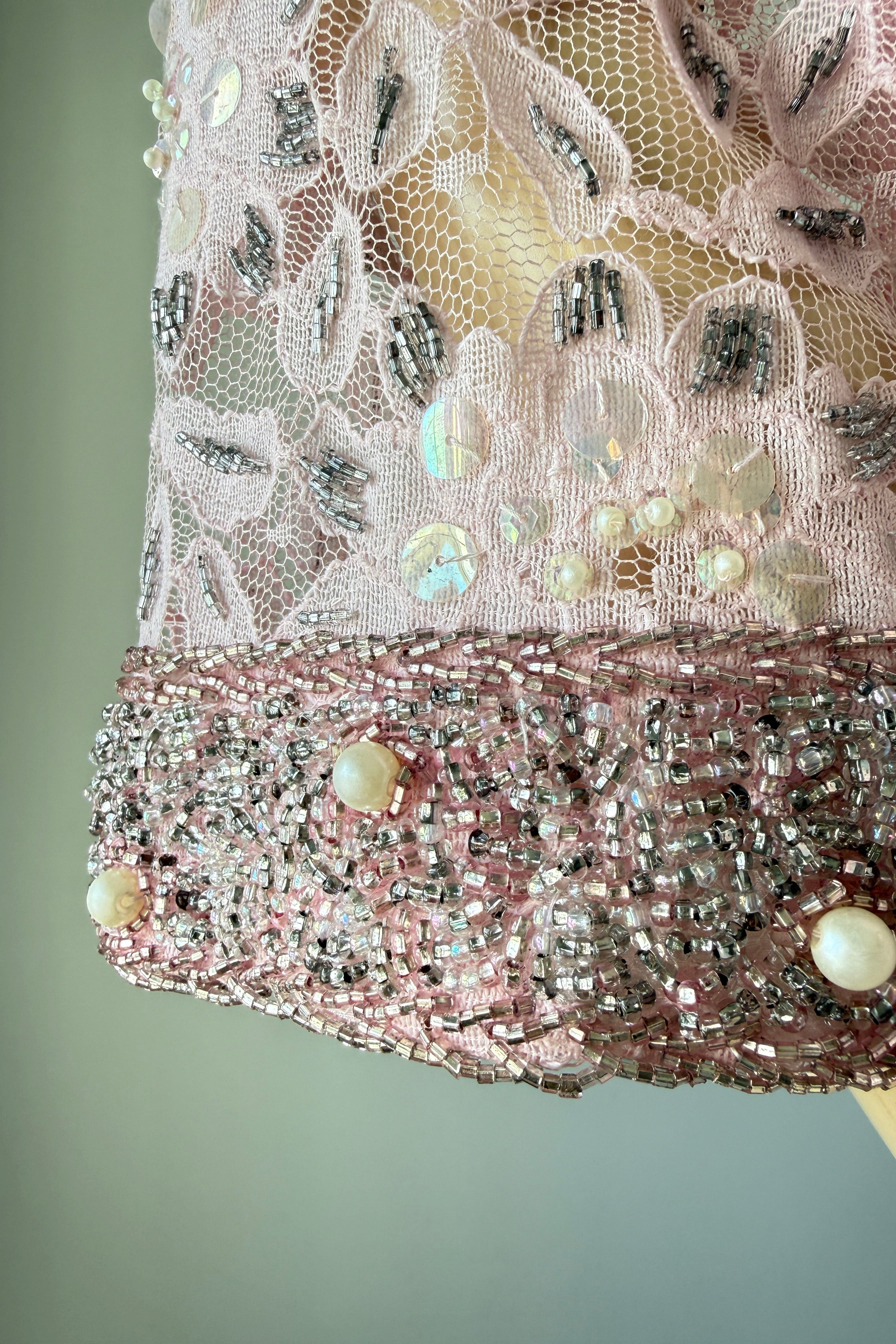 VINTAGE BEADED DRESSVintage 1950s lace dress dripping in sequins and beadwork. Lined in acetate with 3/4 length sleeves with subtle bell silhouette. Metal back zipper. Bodice fully lined. By JW Mays.Great condition - a few marks on lining not visible when worn. Freshly hand washed and ready to wear.Fits like small.Length 37Shoulder 16Sleeve 18Bust 36-37Waist 33Hip 40As with all vintage, please expect wear consistent with age. All sales are final. No order cancellations.0620 | 2604