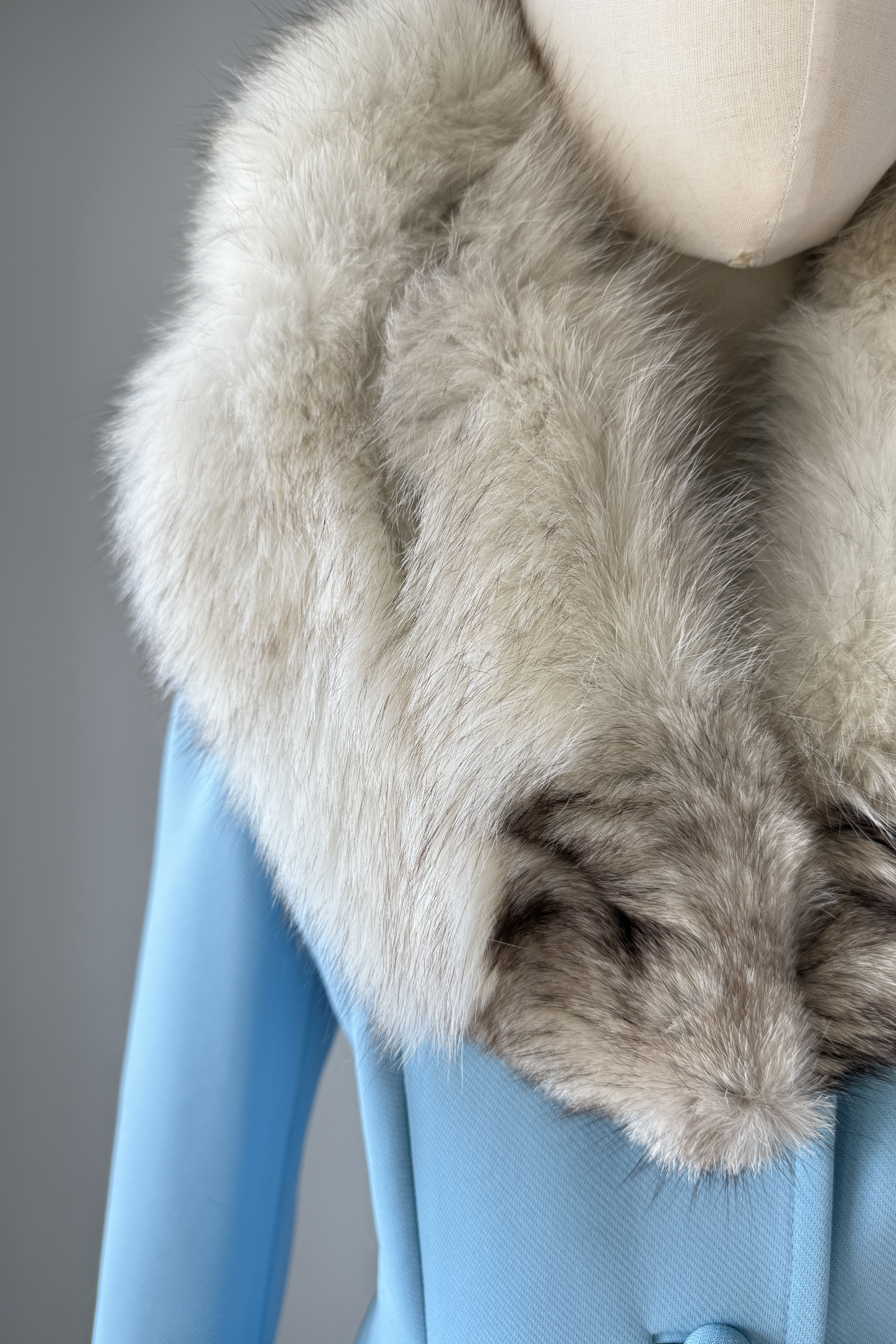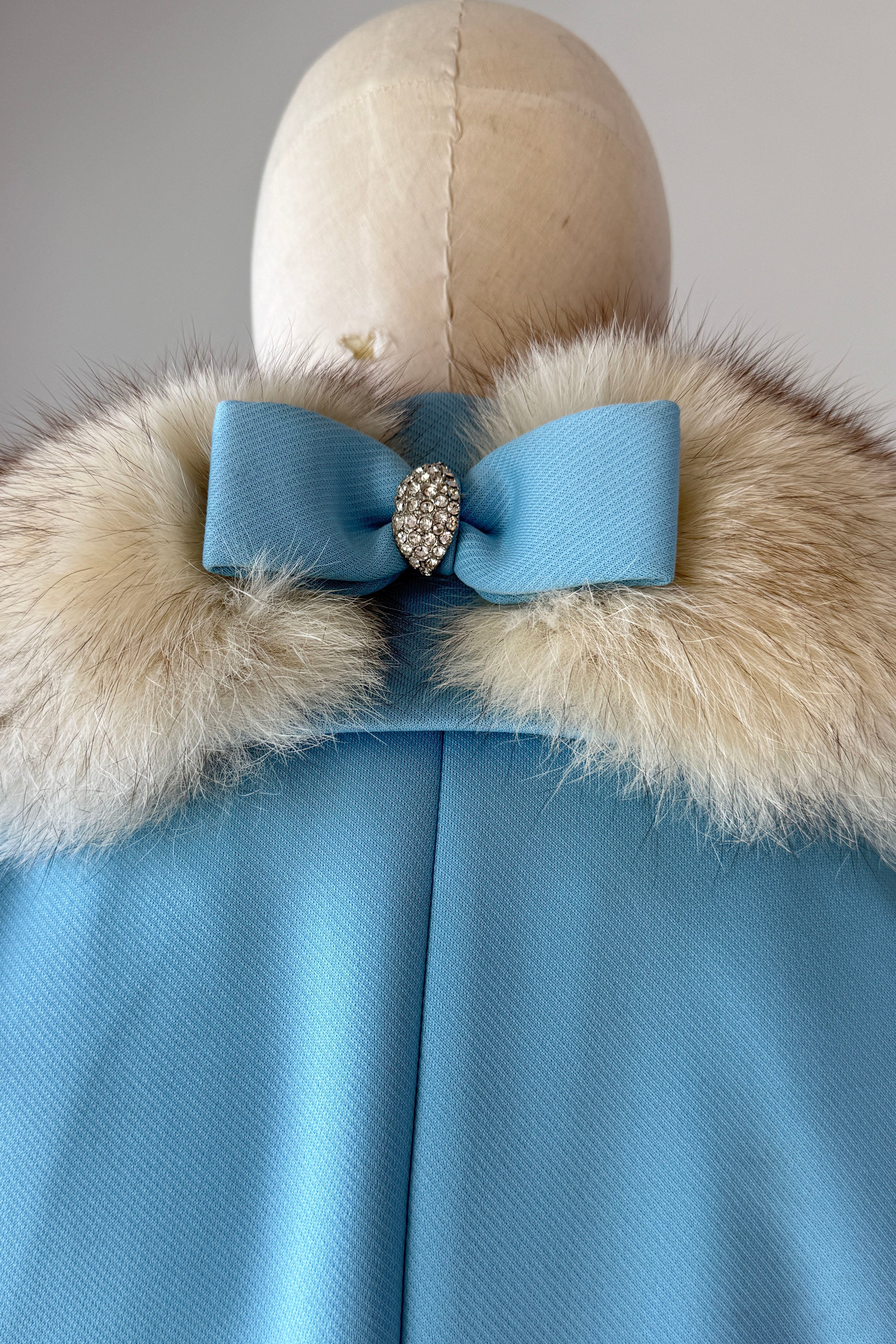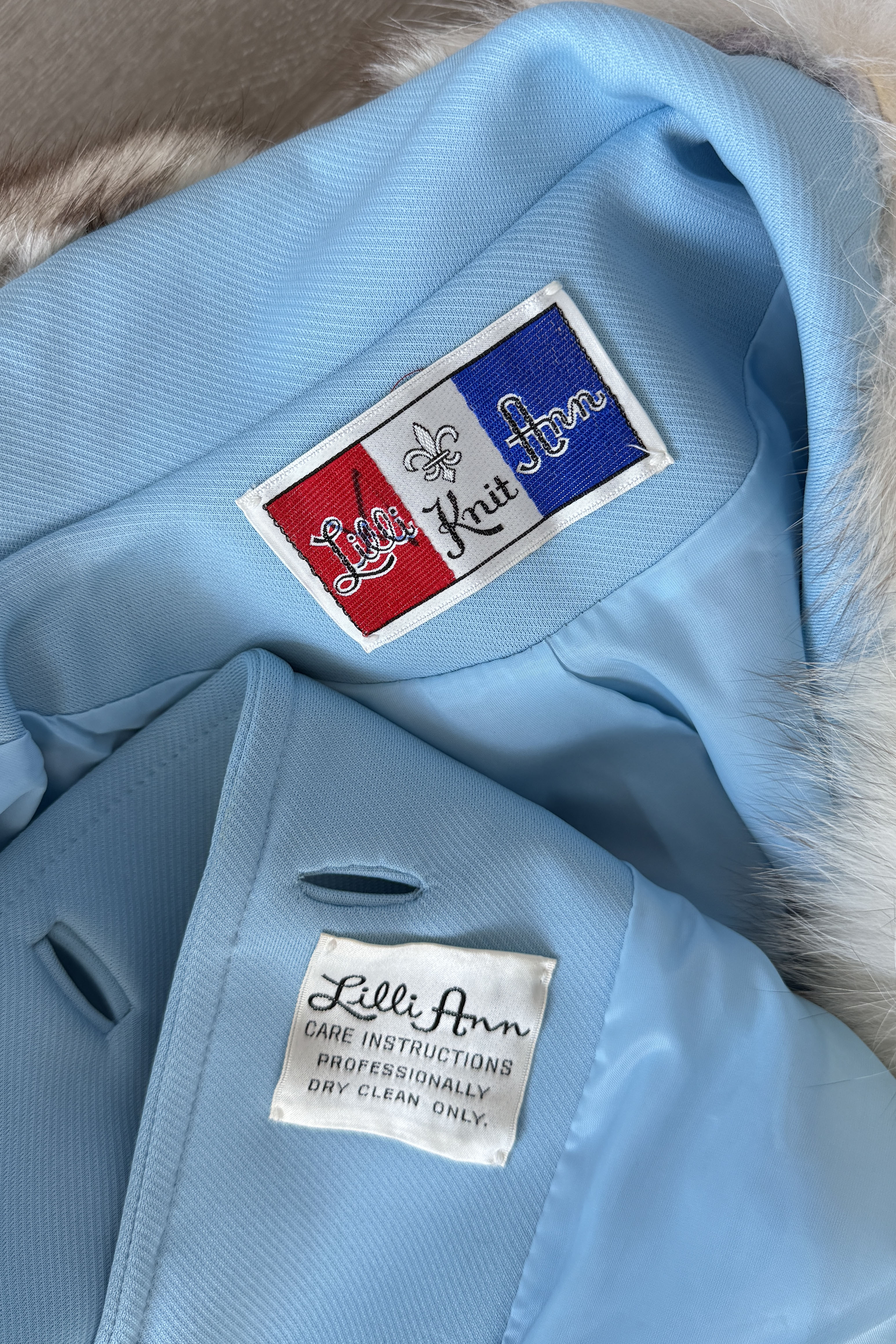 VINTAGE FOX COLLAR JACKET BY LILLI ANN1970s robins egg blue jacket with fox fur collar. Covered buttons, fully lined. Poly/fox/acetate.Excellent condition. Fits like S/M.Length 26Shoulders 16Sleeves 23Bust 38Waist 32As with all vintage, please expect wear consistent with age. All sales are final. No order cancellations.0835 | 2605