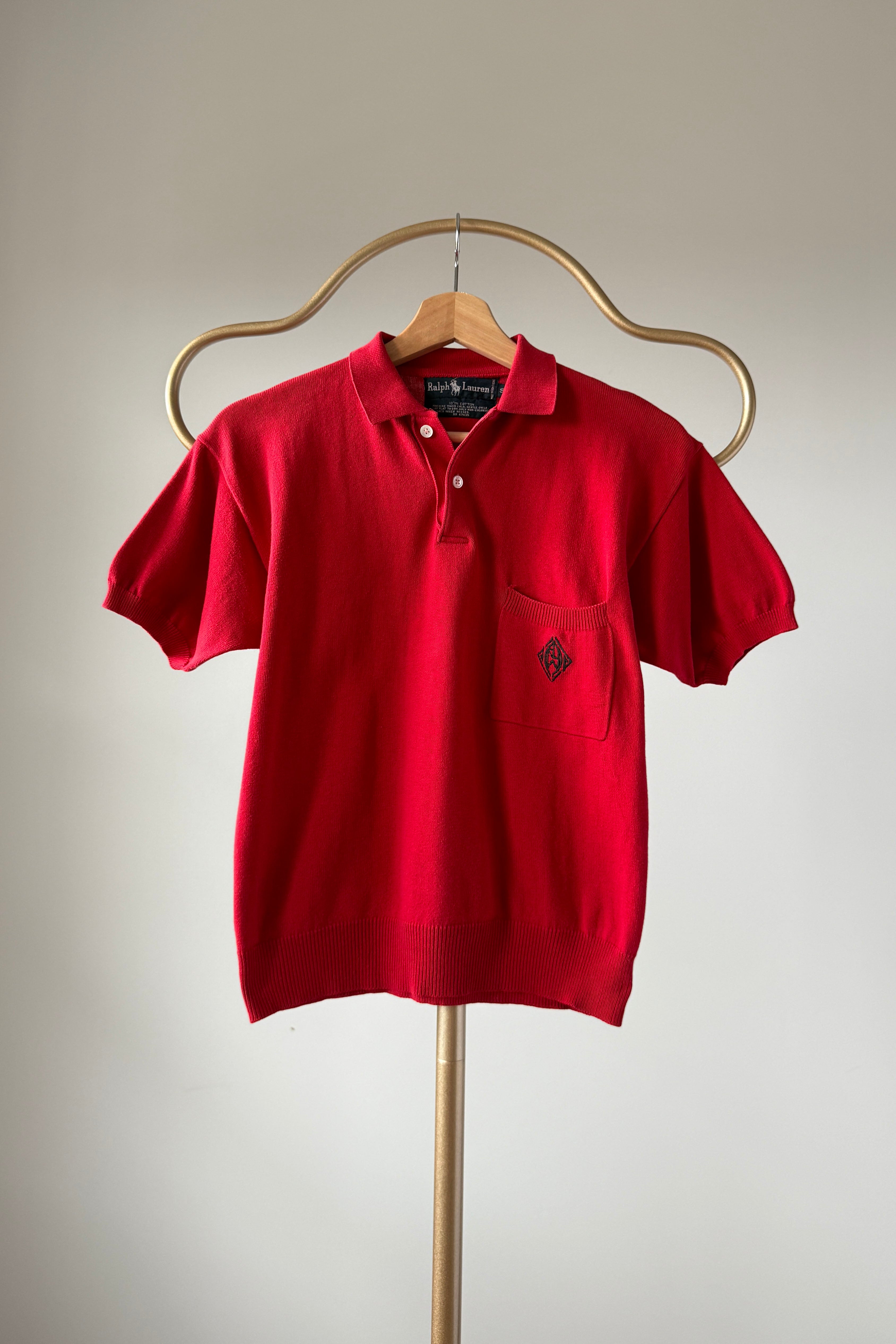 VINTAGE SHIRTVintage red polo shirt. Cotton, monogrammed pocket, buttons at neck. By Ralph Lauren. Excellent condition.Small. Length 21Bust 38As with all vintage, please expect wear consistent with age. All sales are final. No order cancellations.0691 | 2606