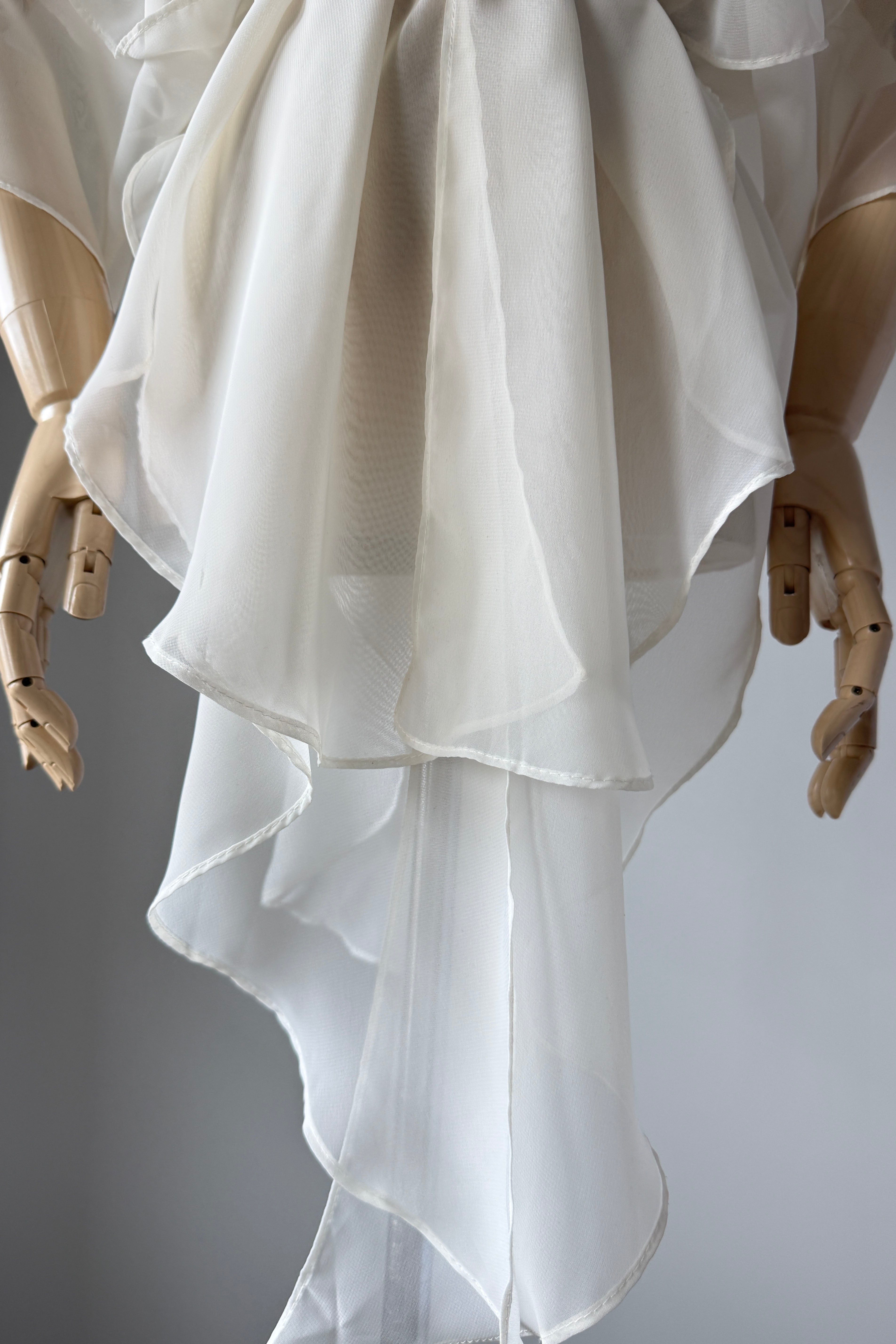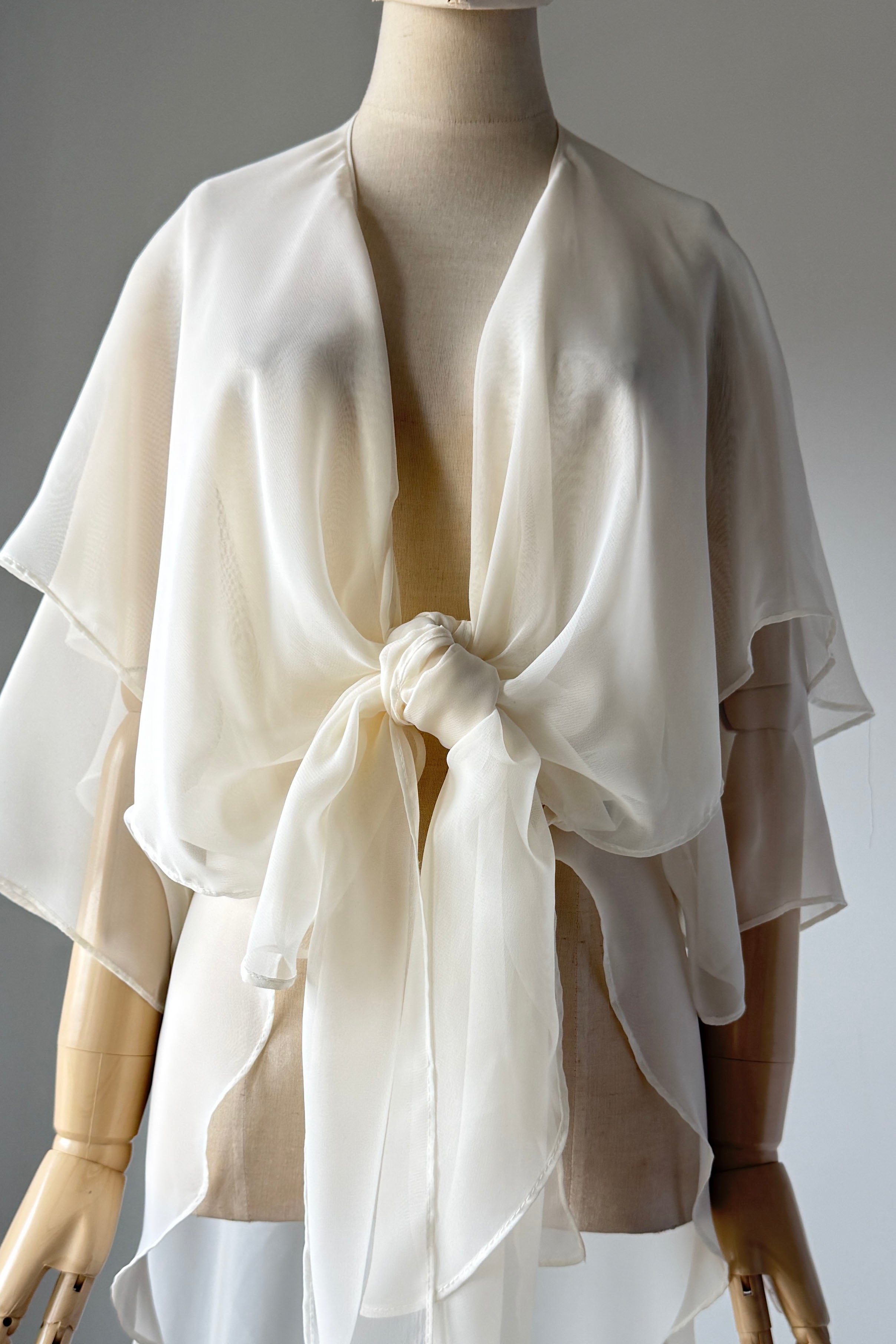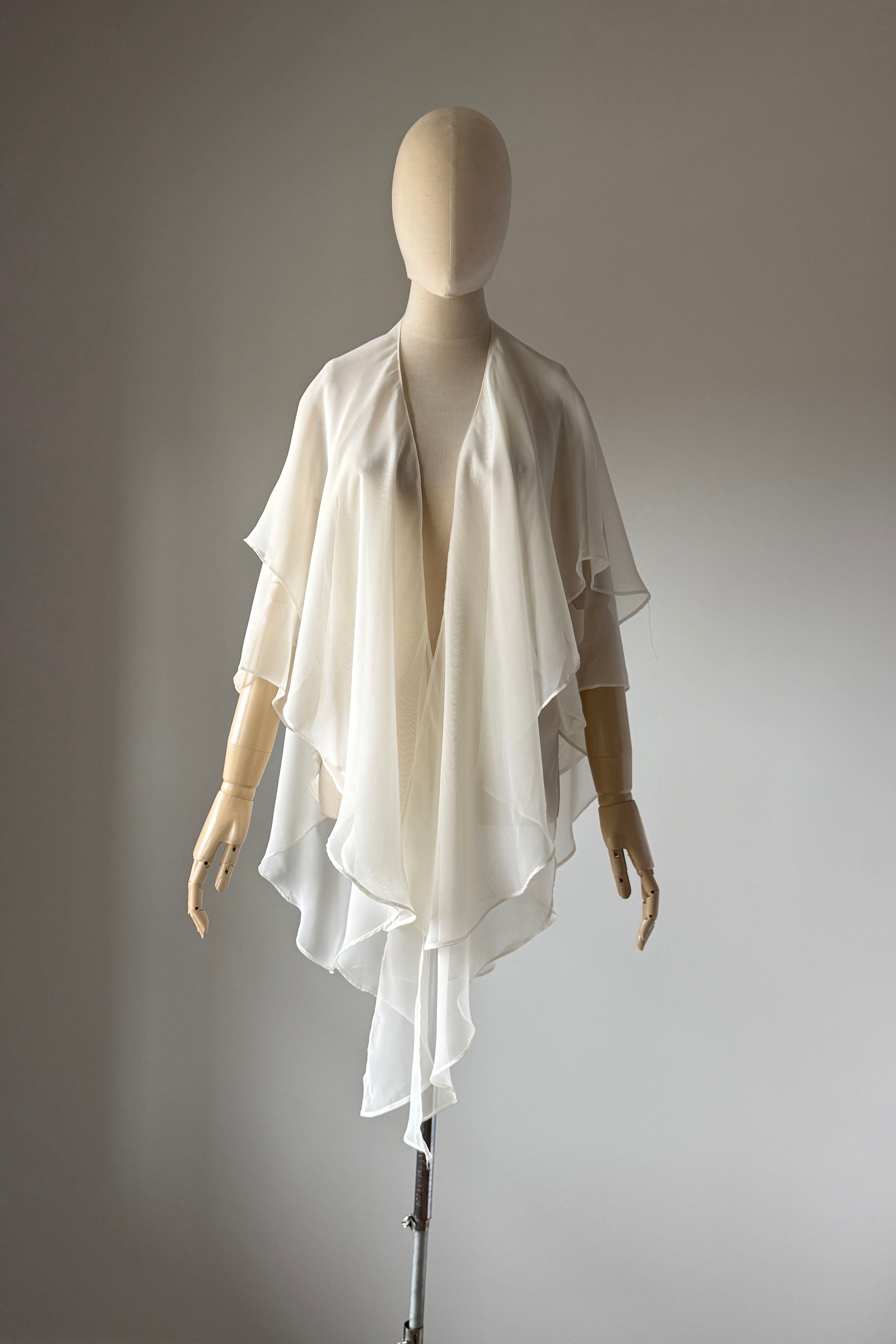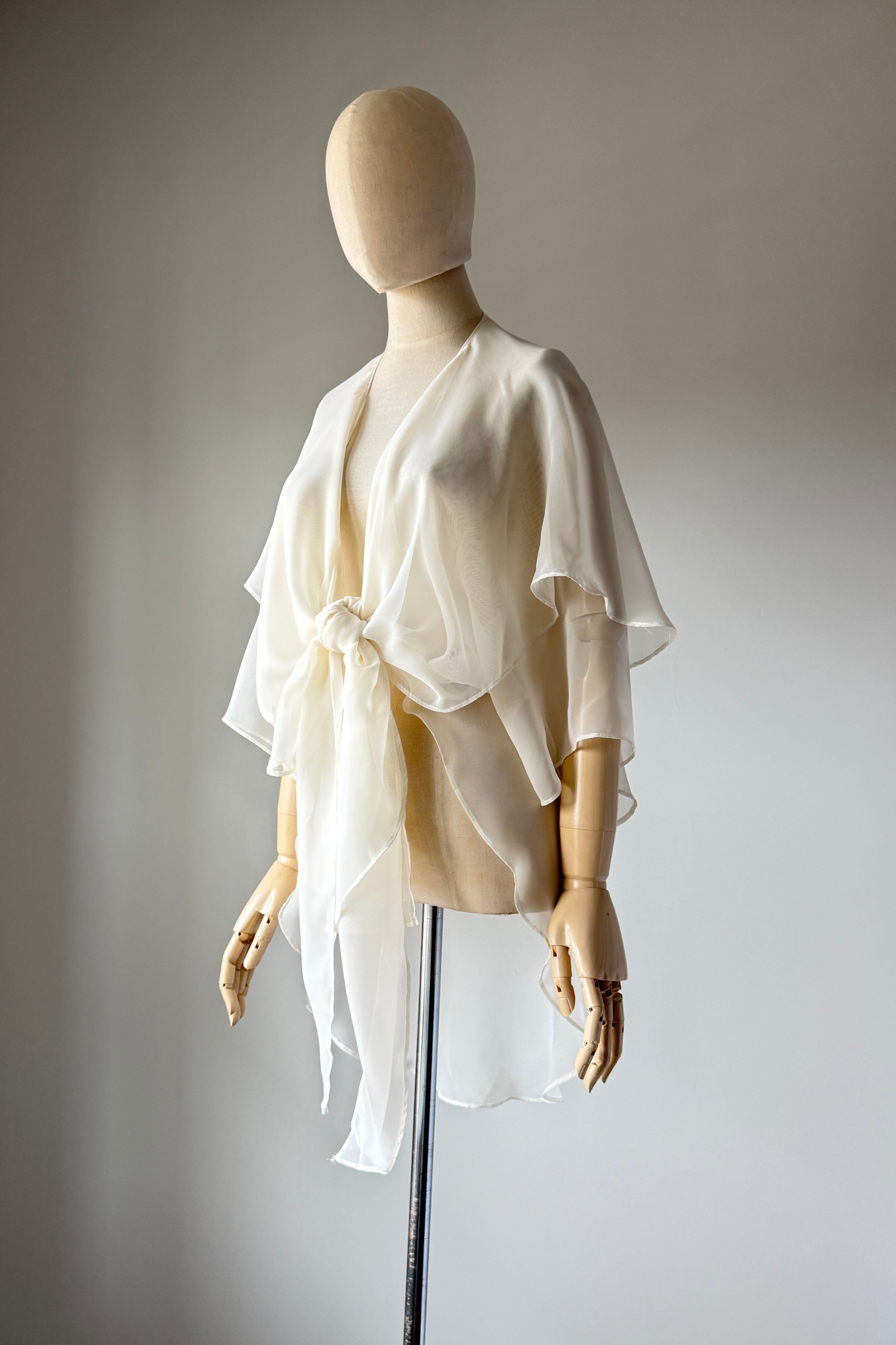 VINTAGE BLOUSEVintage 1980s sheer ivory rayon blouse by Susan Roselli for Vijack. Chiffon. Excellent condition.OSFM.Length 36As with all vintage, please expect wear consistent with age. All sales are final. No order cancellations.0707 | 2605