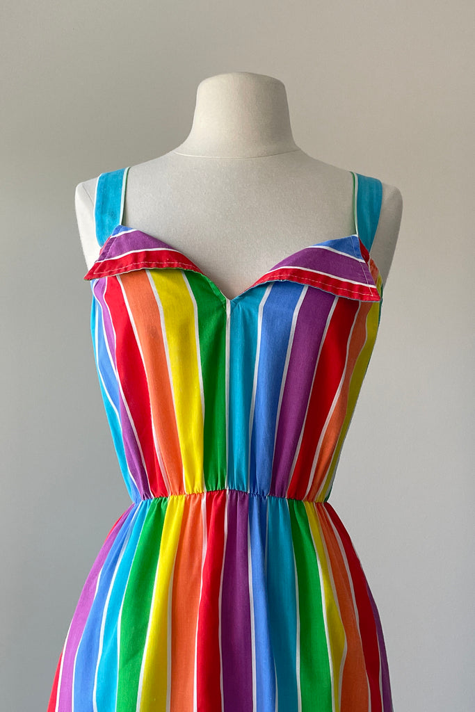 d e t a i l s : darling vivid rainbow stripe pattern, elastic bust + waist