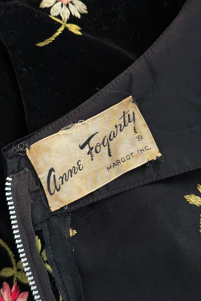 Vintage 1950s Black Velvet Embroidery Dress by Anne Fogarty | XS/S