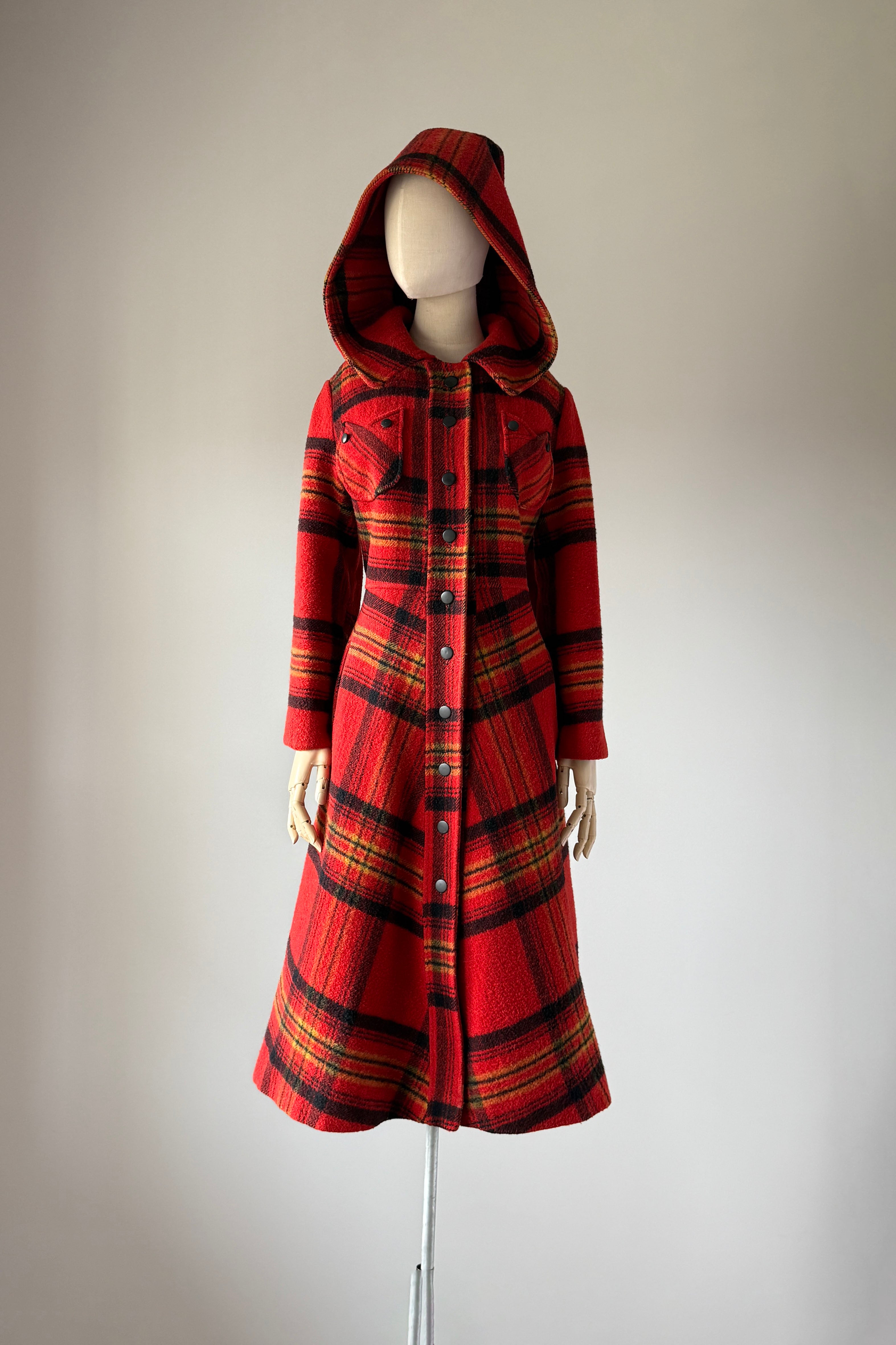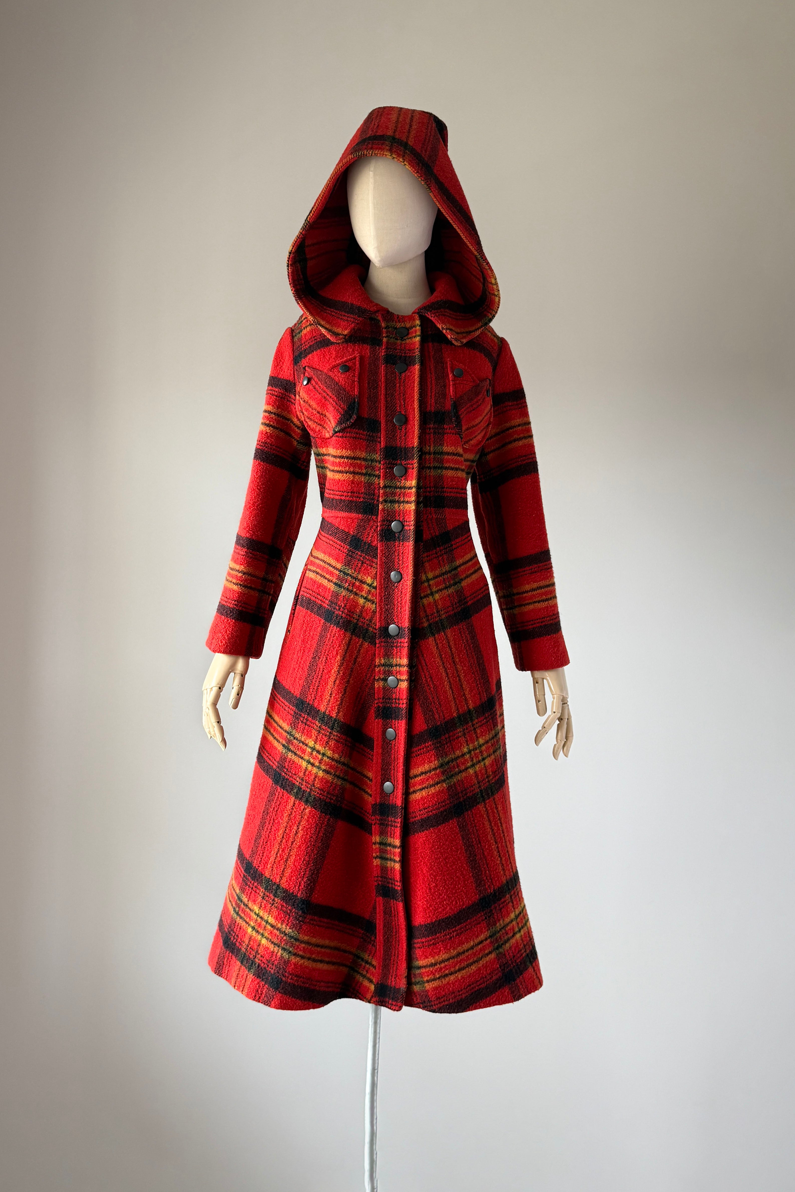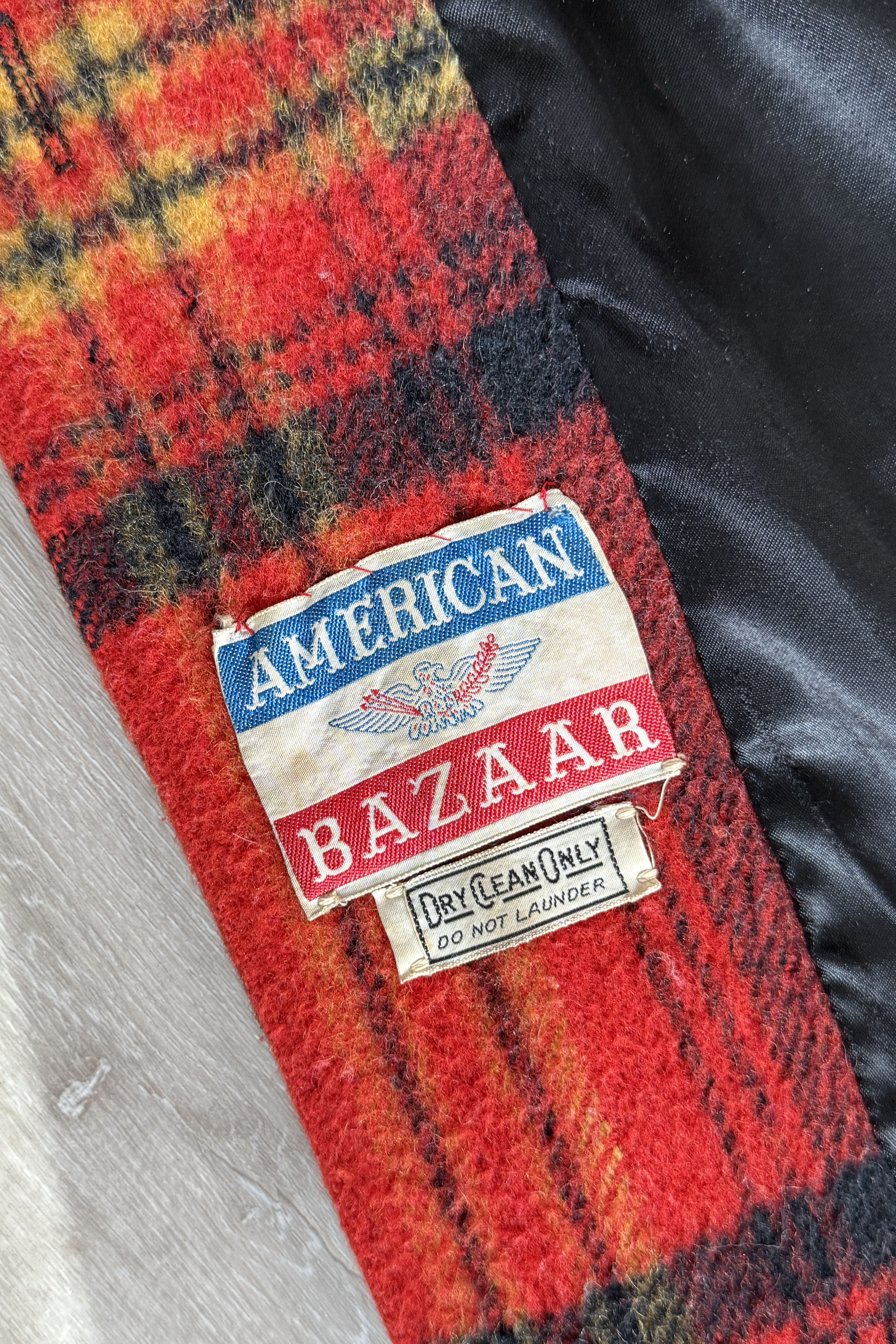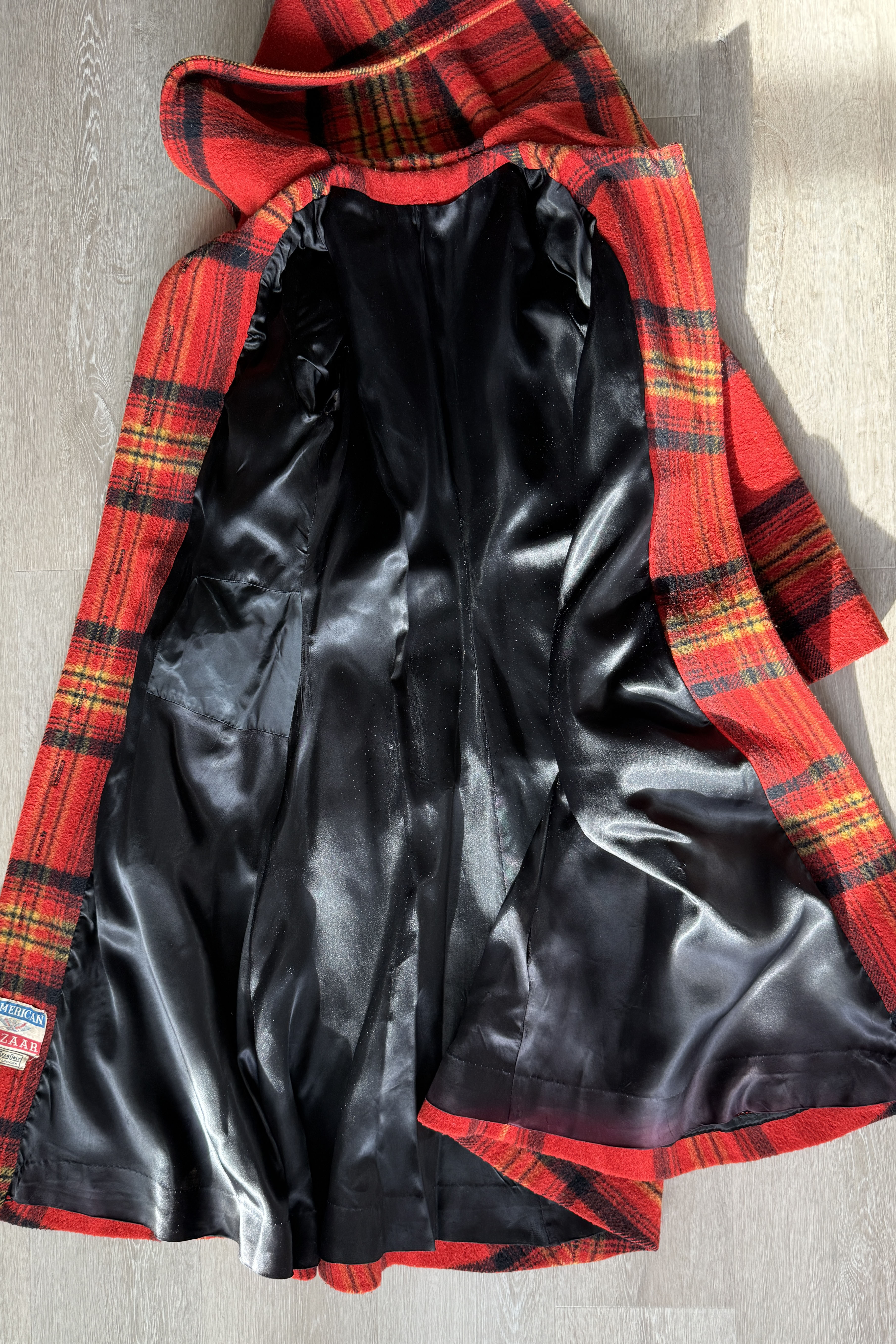 VINTAGE HOODED WOOL COAT1970s red wool coat by American Bazaar. Oversized cozy hood, button front closure, besom pockets and little tulip breast pockets. Acetate lining.Excellent condition. Fits like S/MLength 43.5Bodice 15Shoulders 16Sleeves 21Bust 38-40Waist 32As with all vintage, please expect wear consistent with age. All sales are final. No order cancellations.0739 | 2548